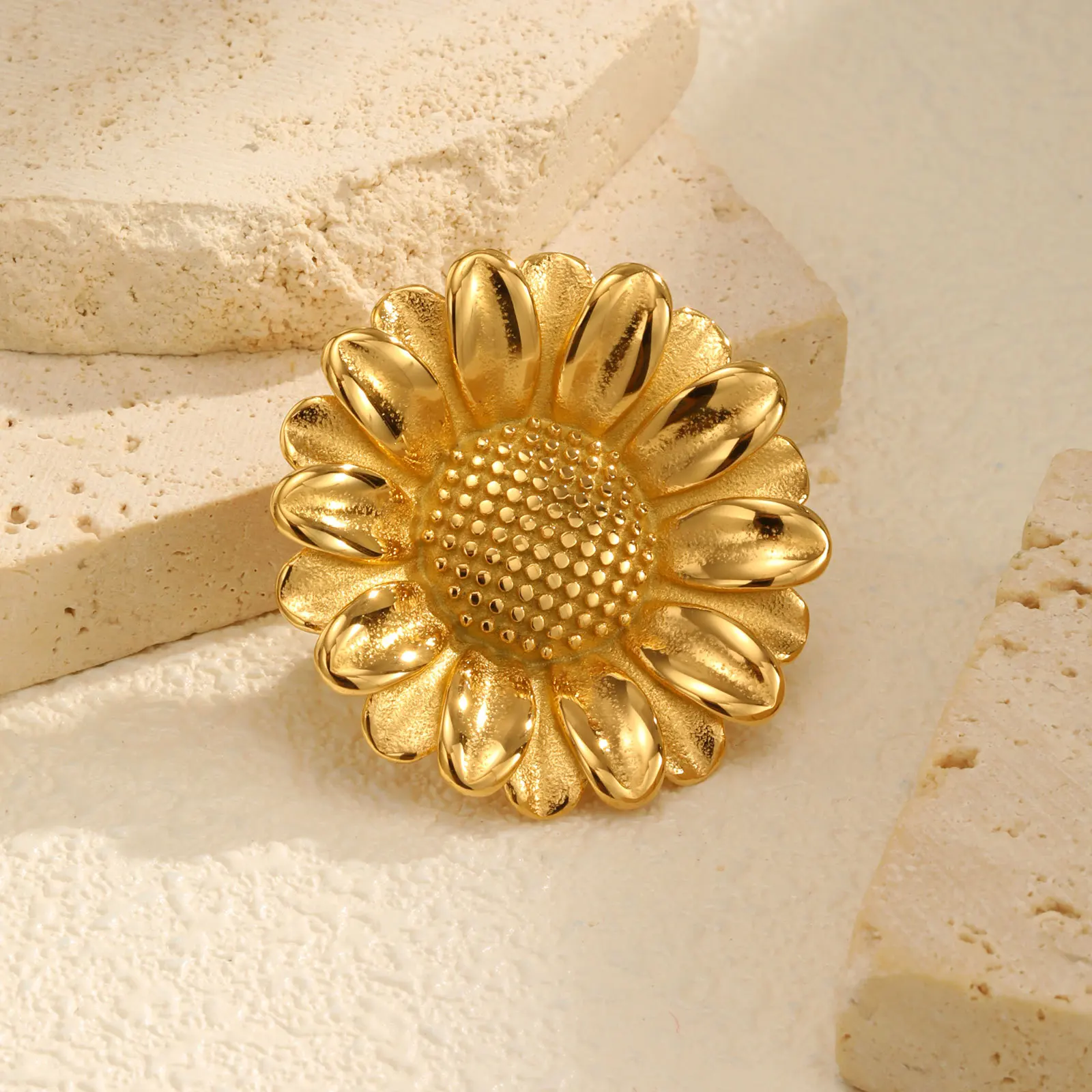 Custom Fashion Brooch Women's Stainless Steel Gold Plated Flower Shape Brooches
