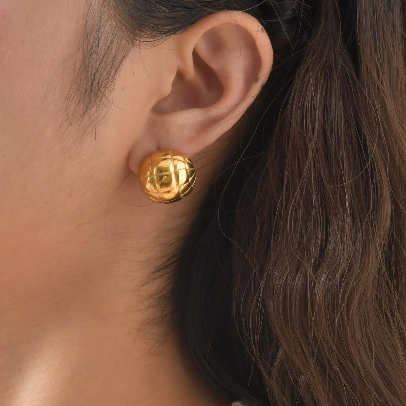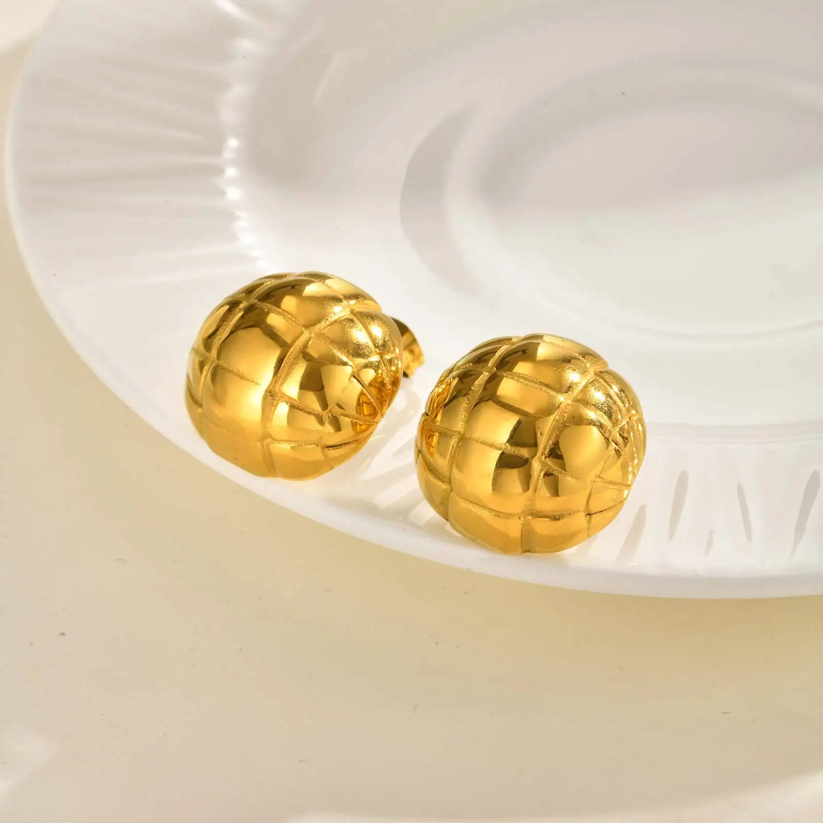 Trendy Simple Geometric Vintage Style Women Stainless Steel Gold-plated Stud Earring Half Ball Braided Stud Earrings
