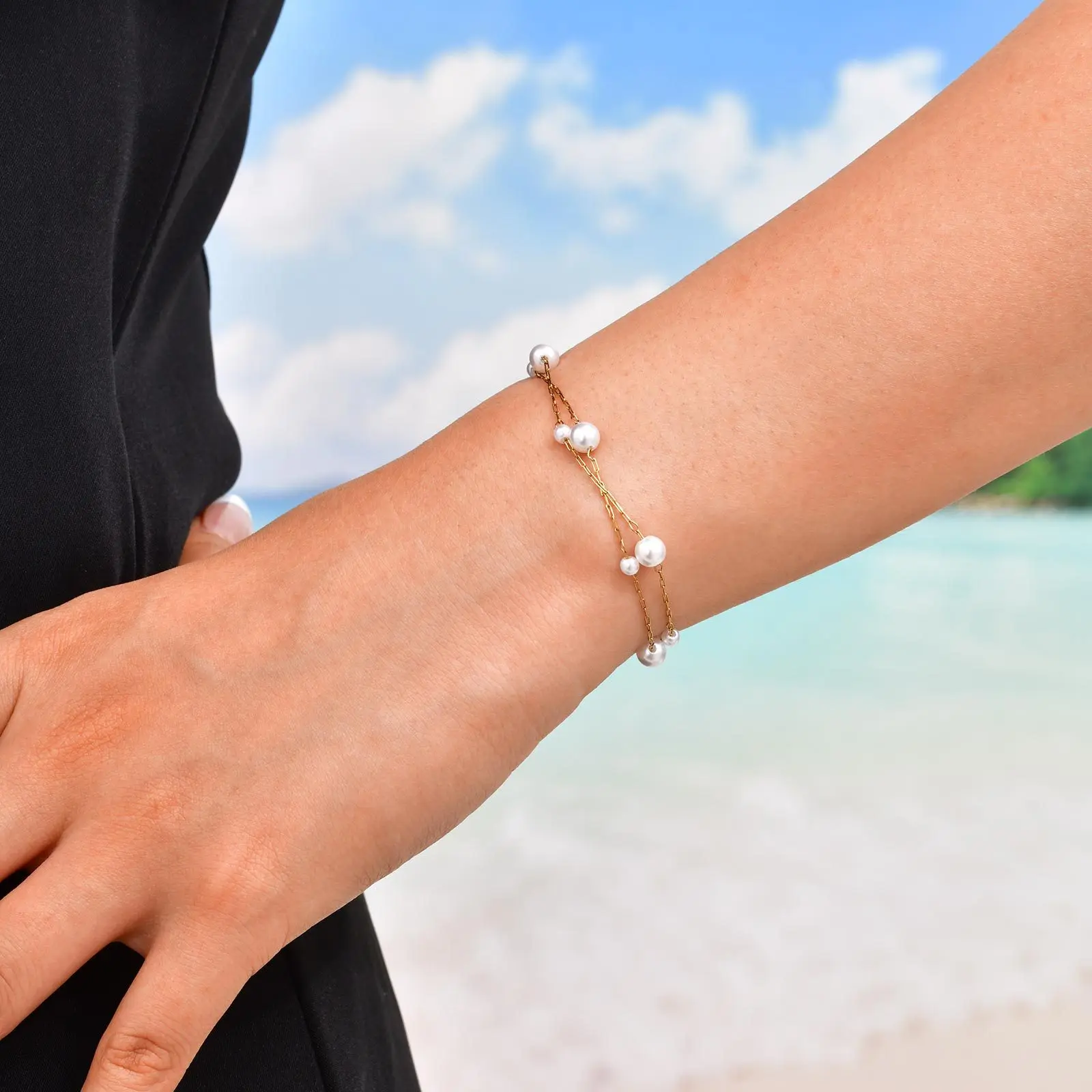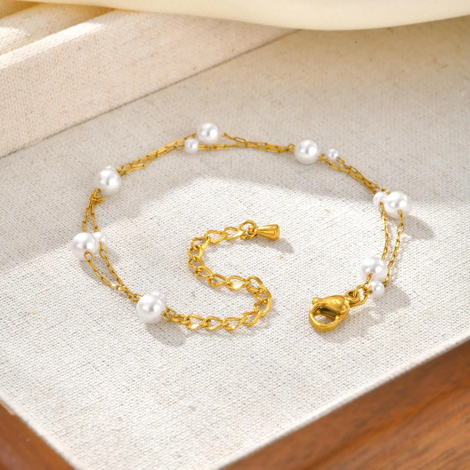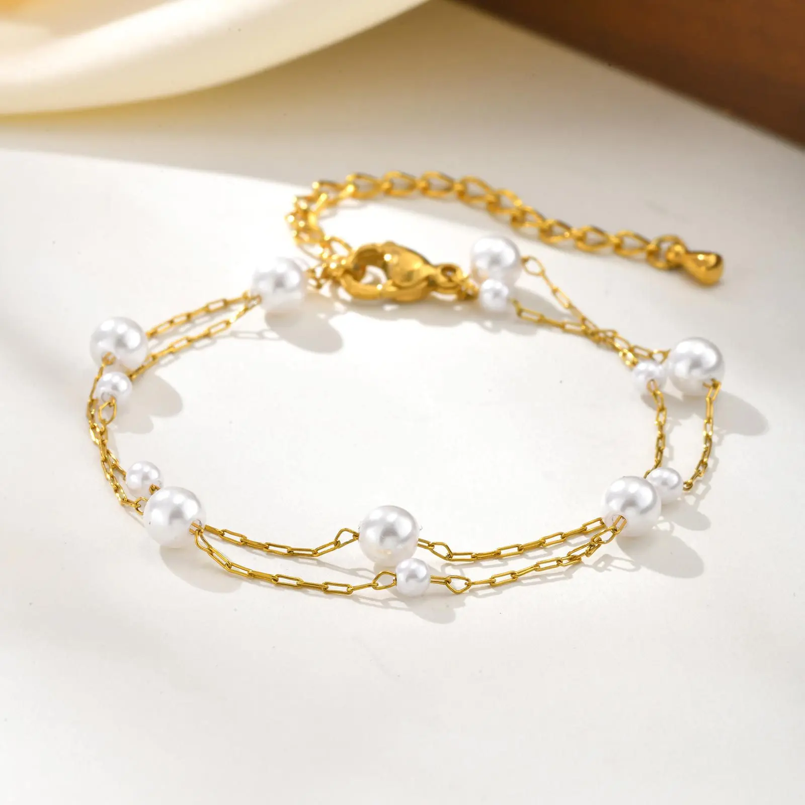New Fashionable and Minimalist Stainless Steel Imitation Pearl Women Bracelets Double-layer Bracelet Jewelry