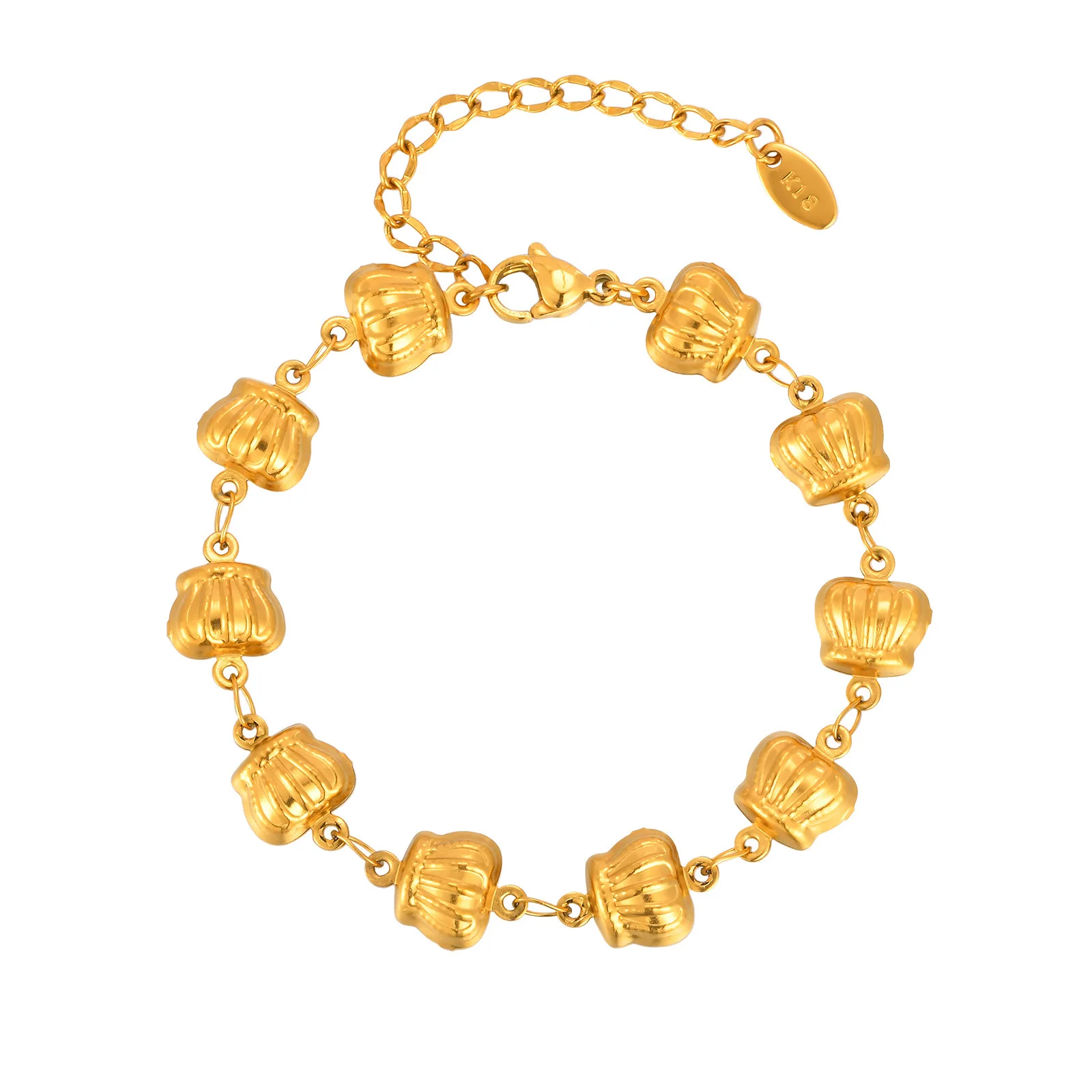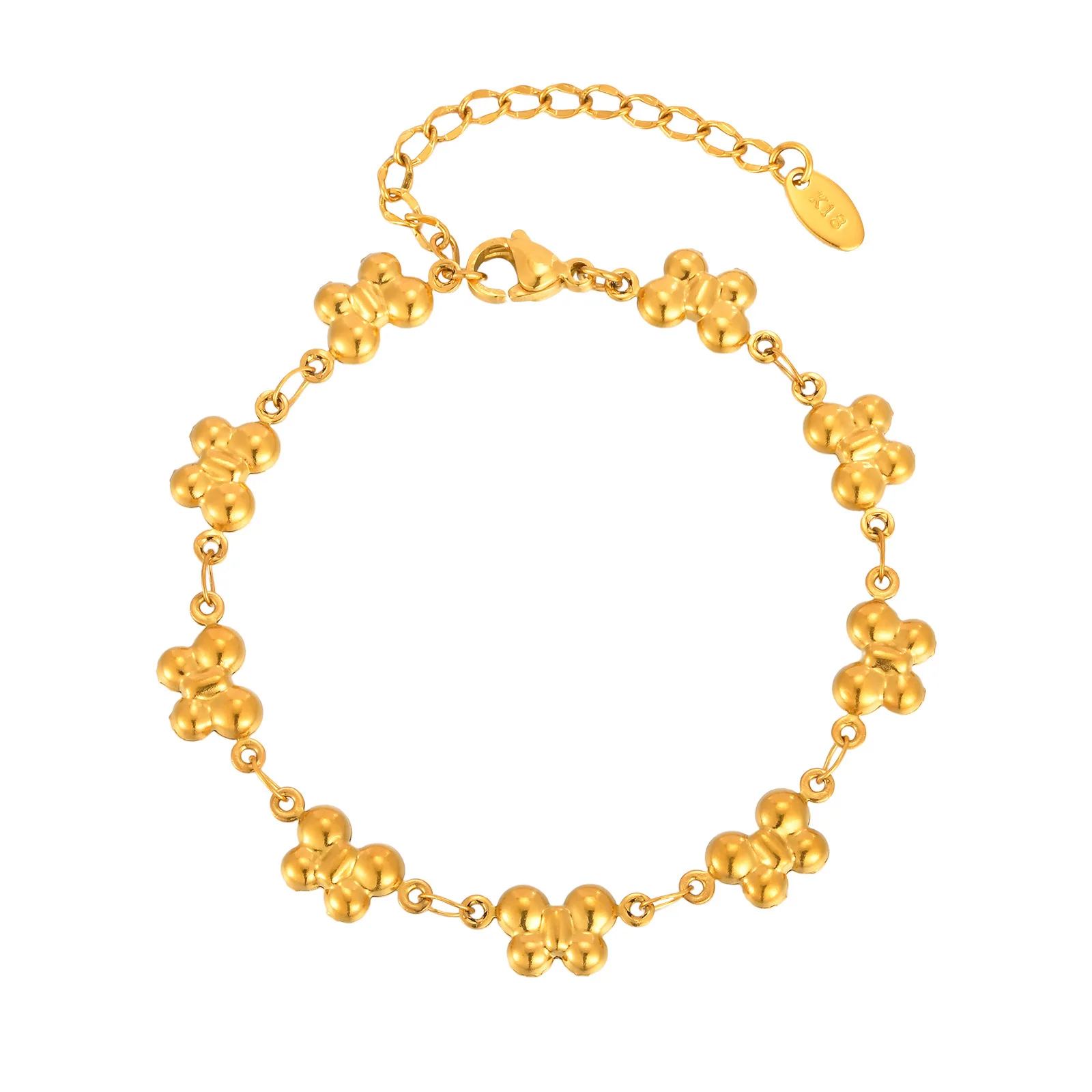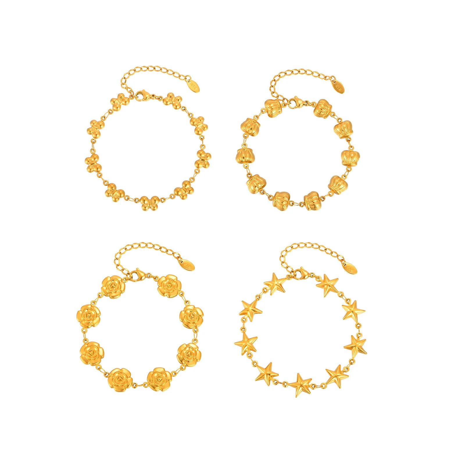 Women's Trendy Ins Style Stainless Steel Gold Plated Chain Bracelets Flower Crown Butterfly Shape Chain Bracelet