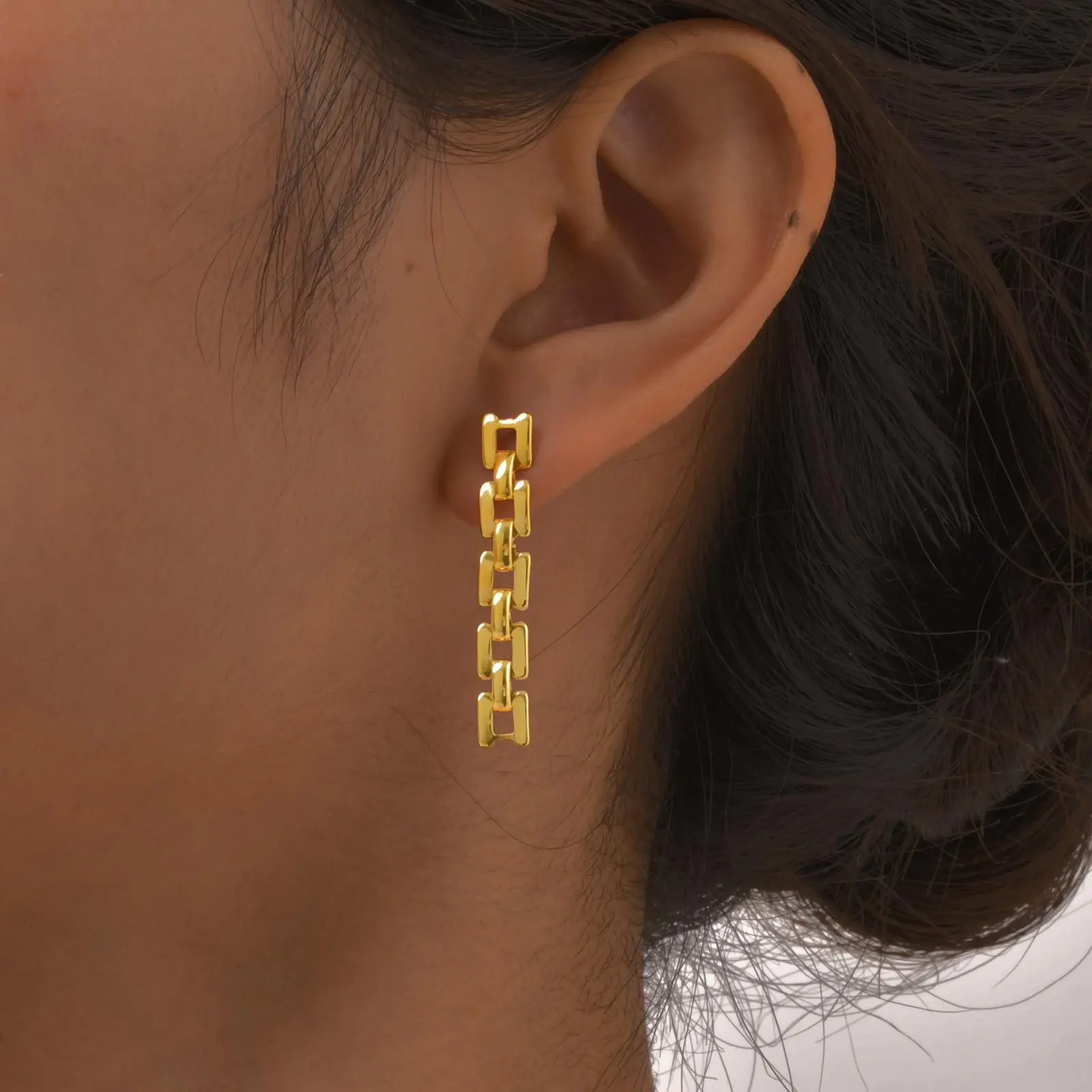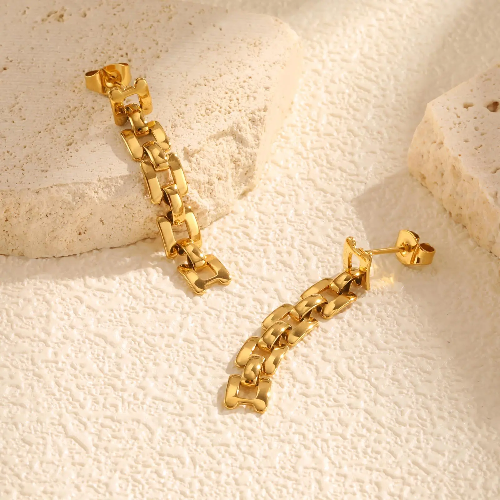 Fashionable Women's Long Dropping Earrings Gold Plated Stainless Steel Watch Chain Drop Earrings
