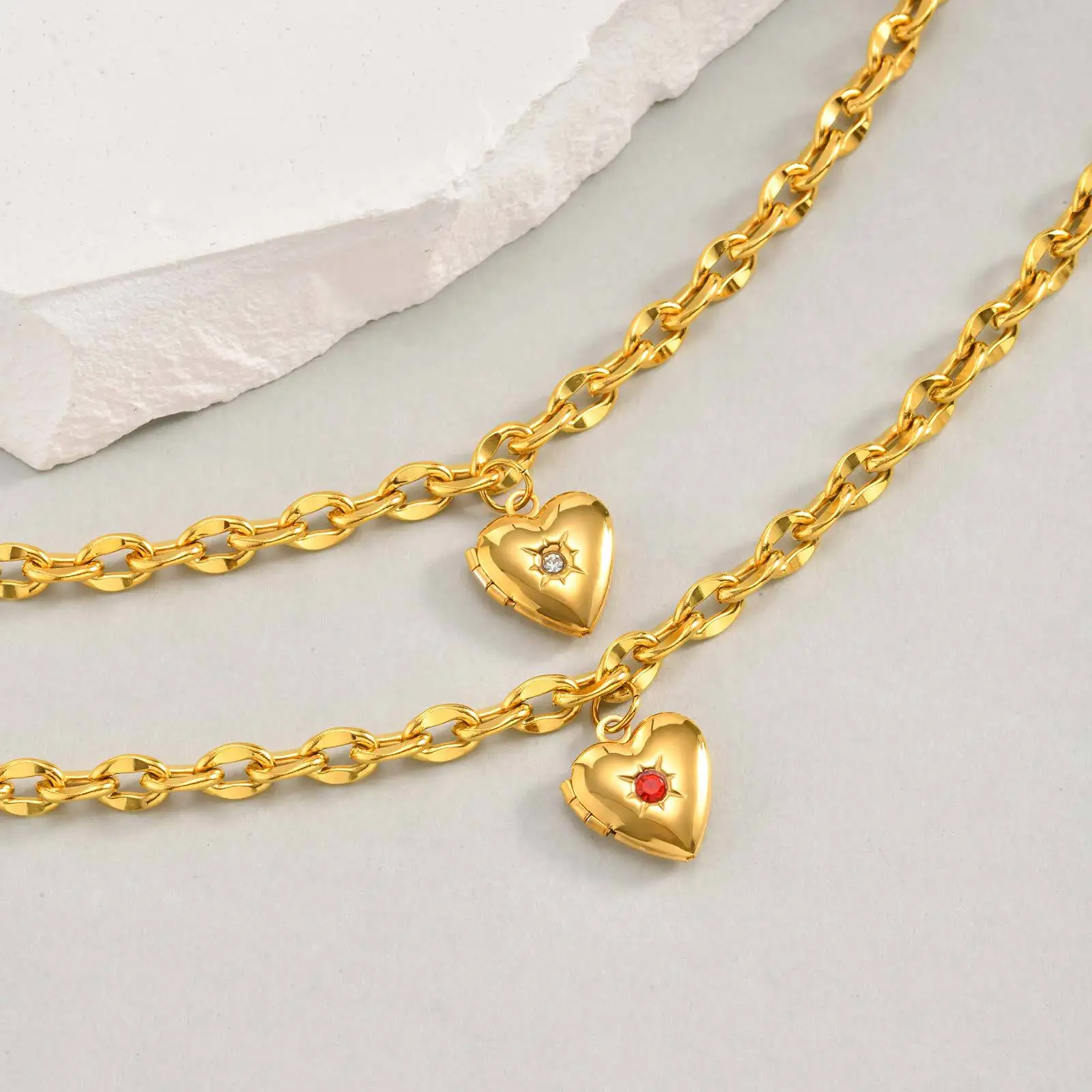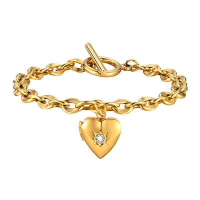 Openable Heart Box Charm Chain Bracelets Stainless Steel Zircon Heart Waterproof Jewelry Bracelet for Women