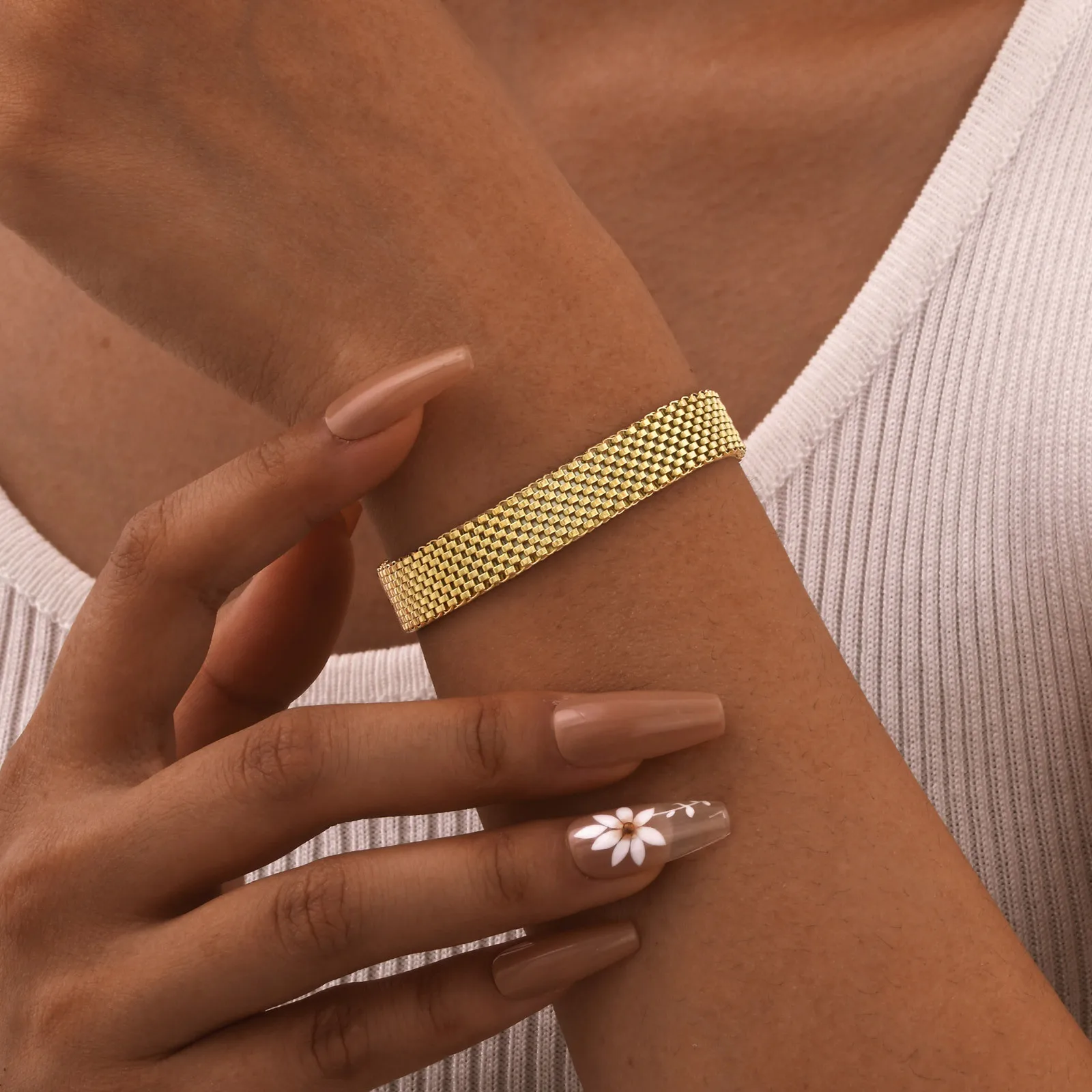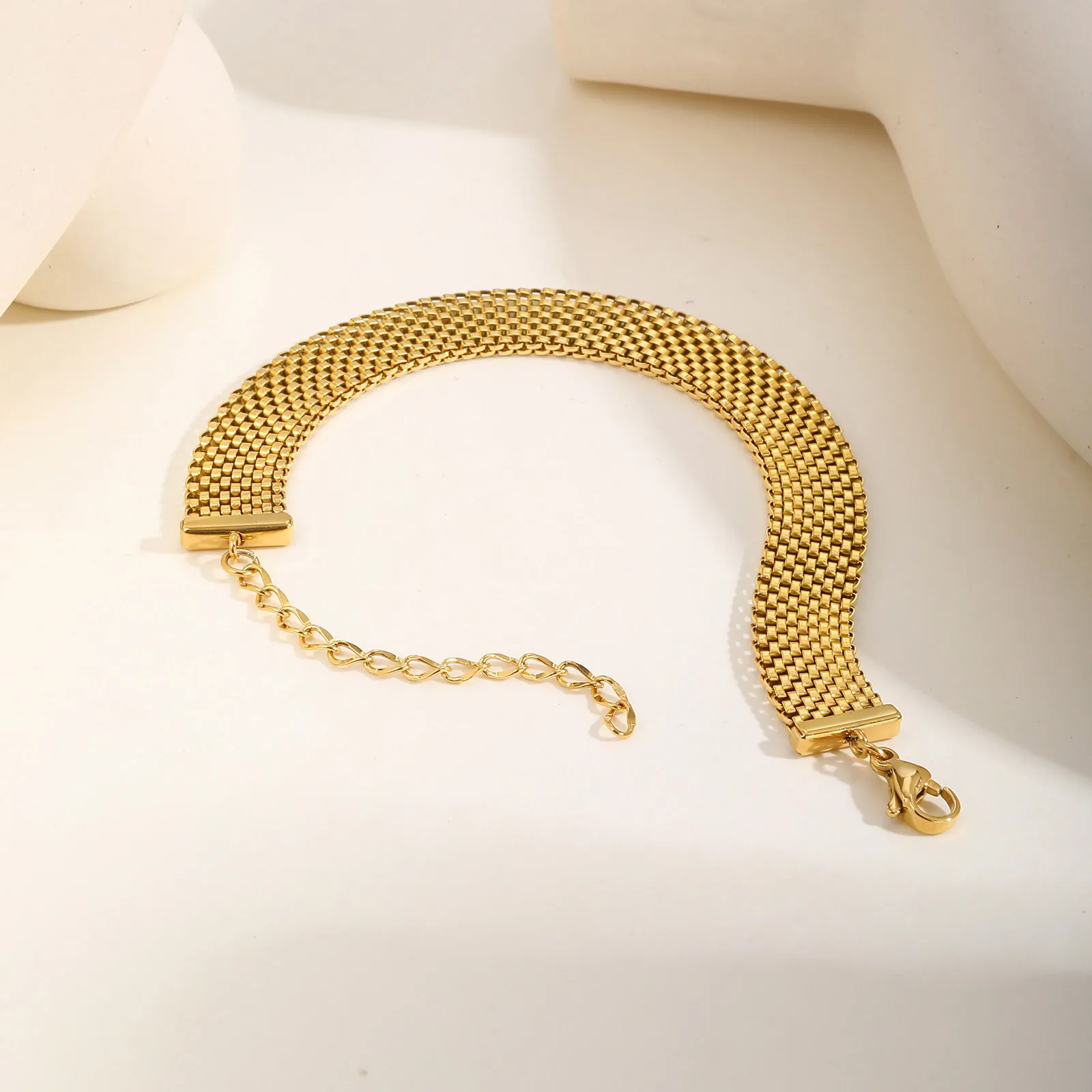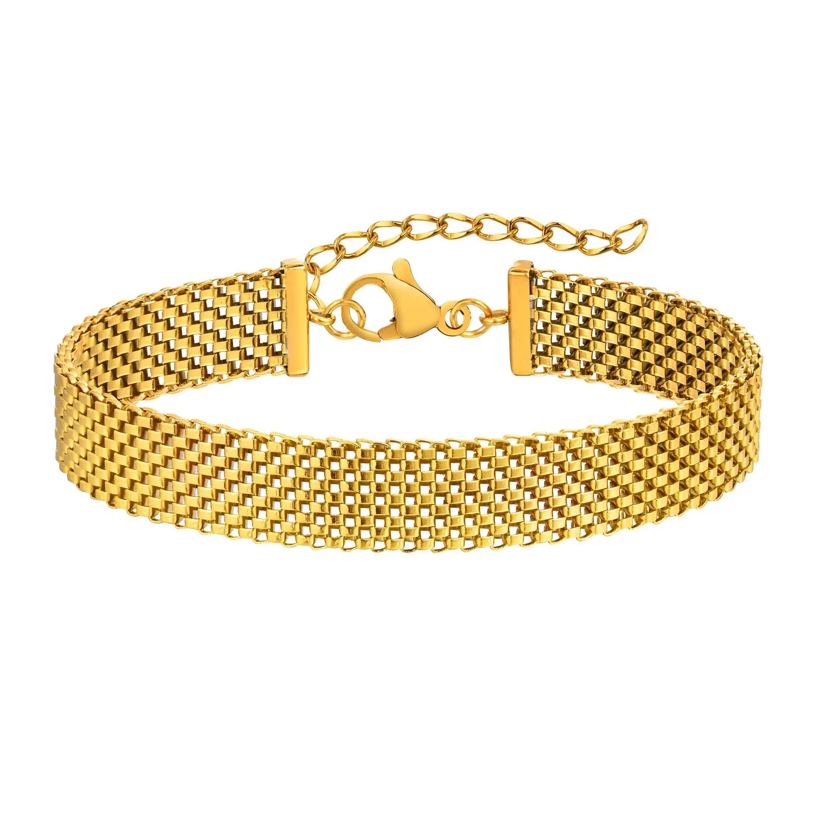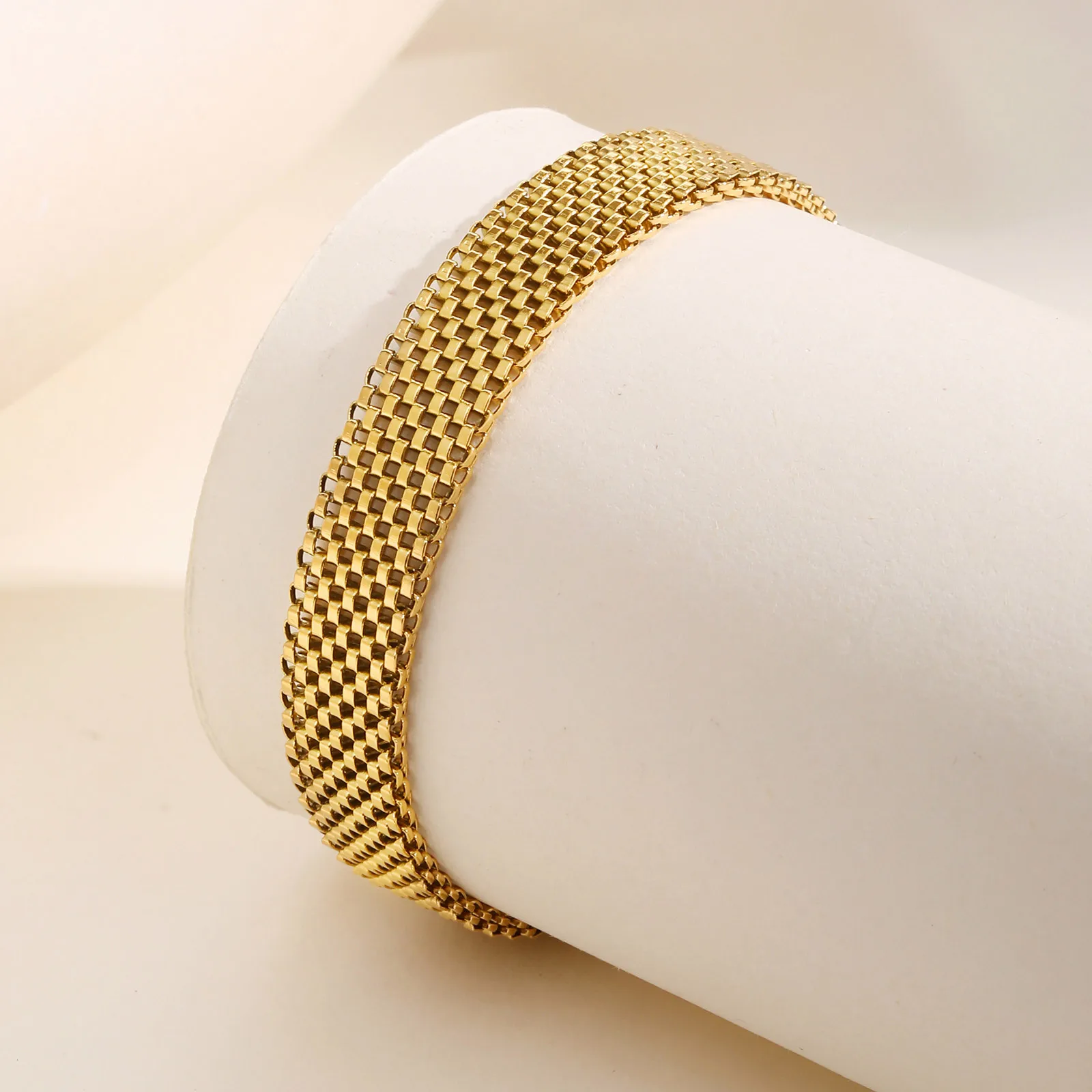High End Gold Plated Stainless Steel 10mm Wide Chunky Chains Bracelet Smooth Mesh Strap Chains Bracelet Jewelry