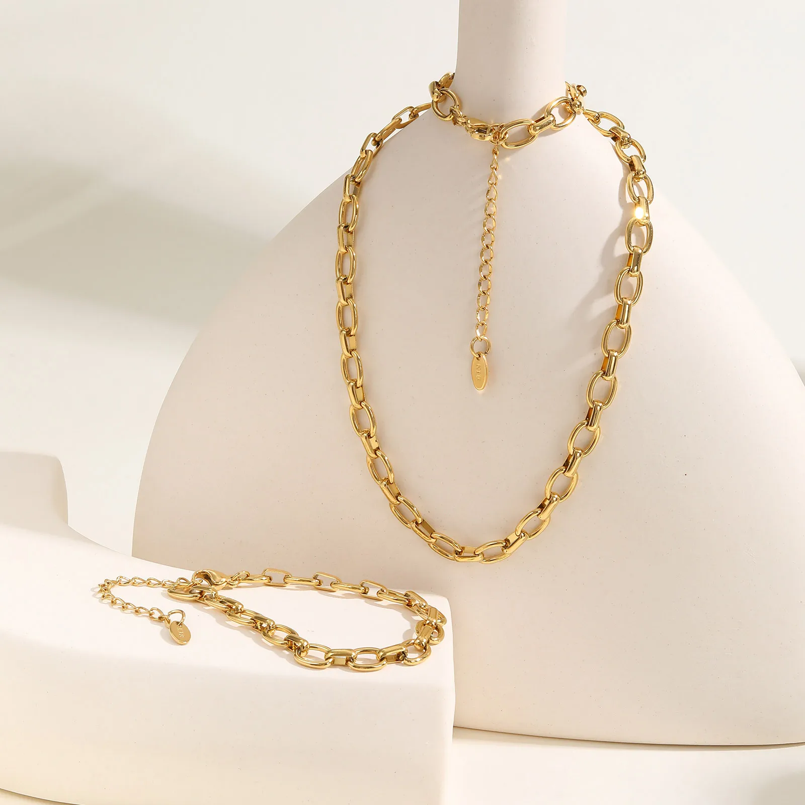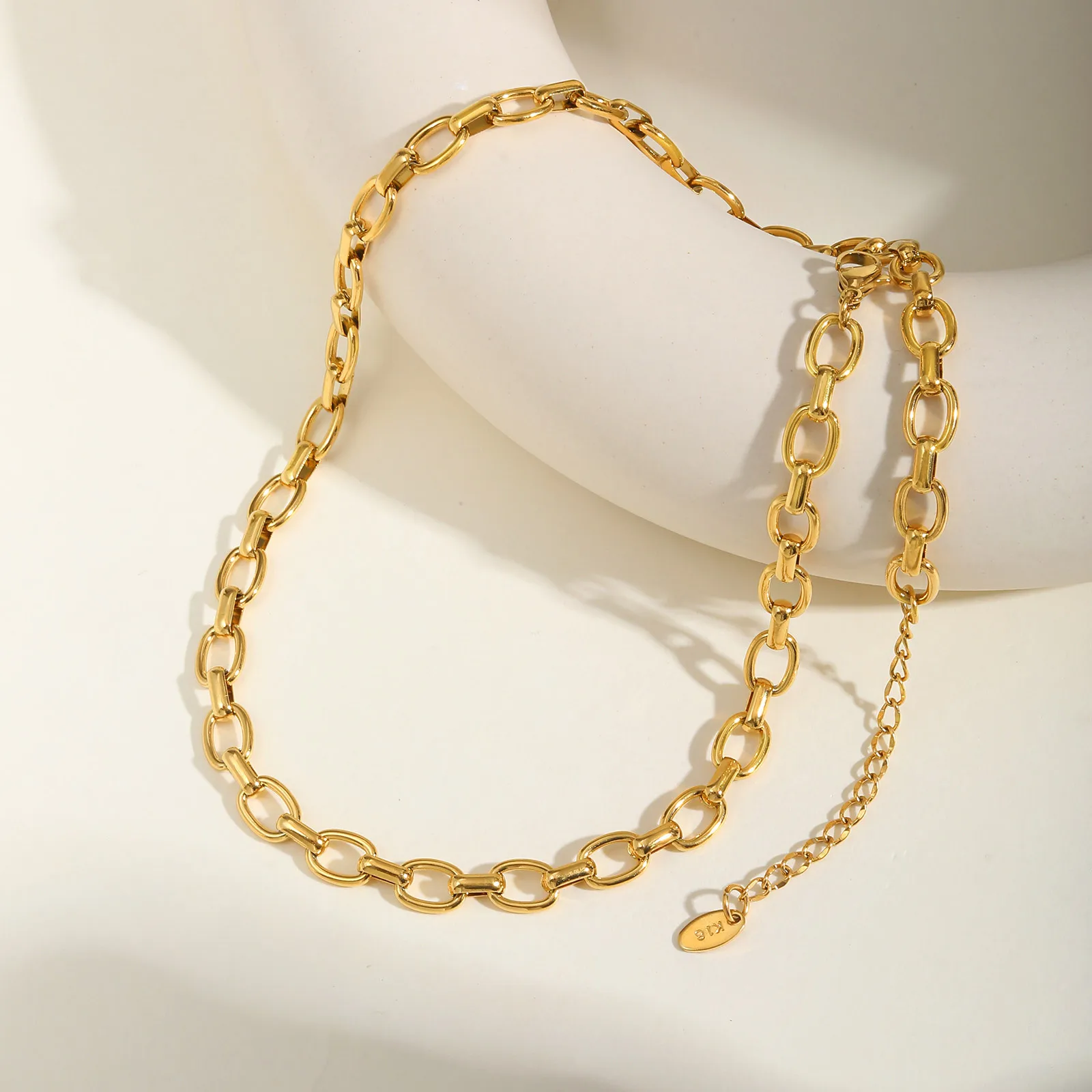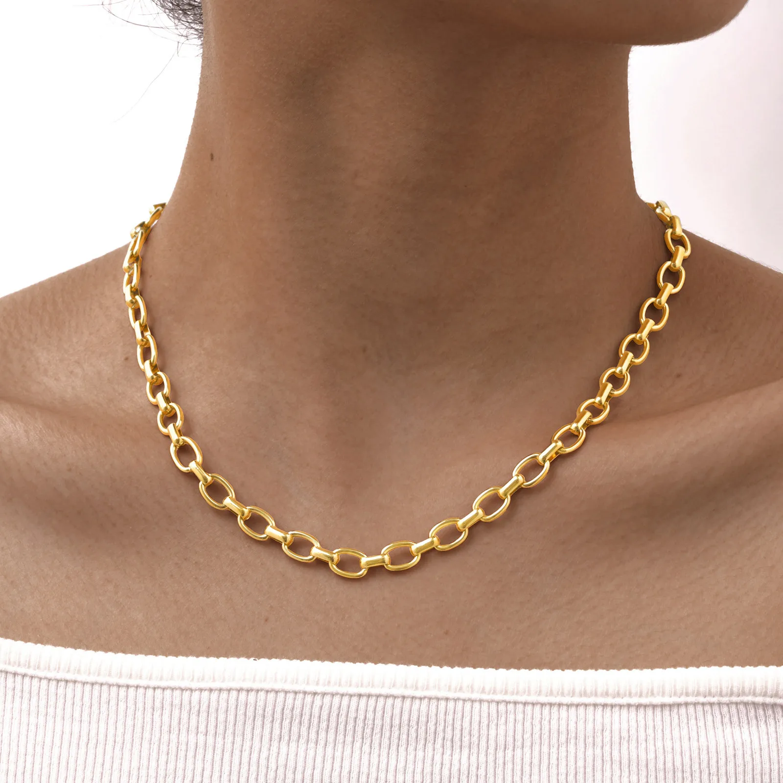 Simple Design Classic Style Stainless Steel 18k Gold Plated Jewelry Necklace Ladies Chunky Chains Necklaces