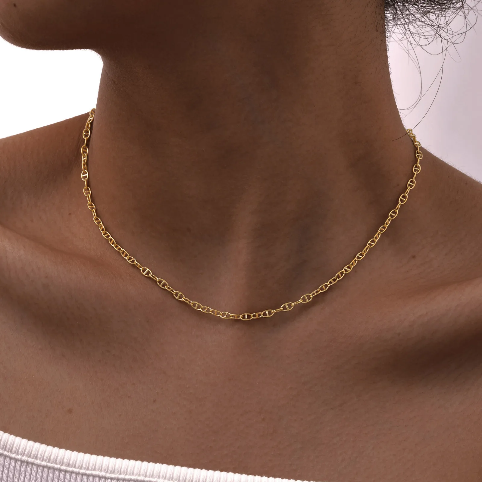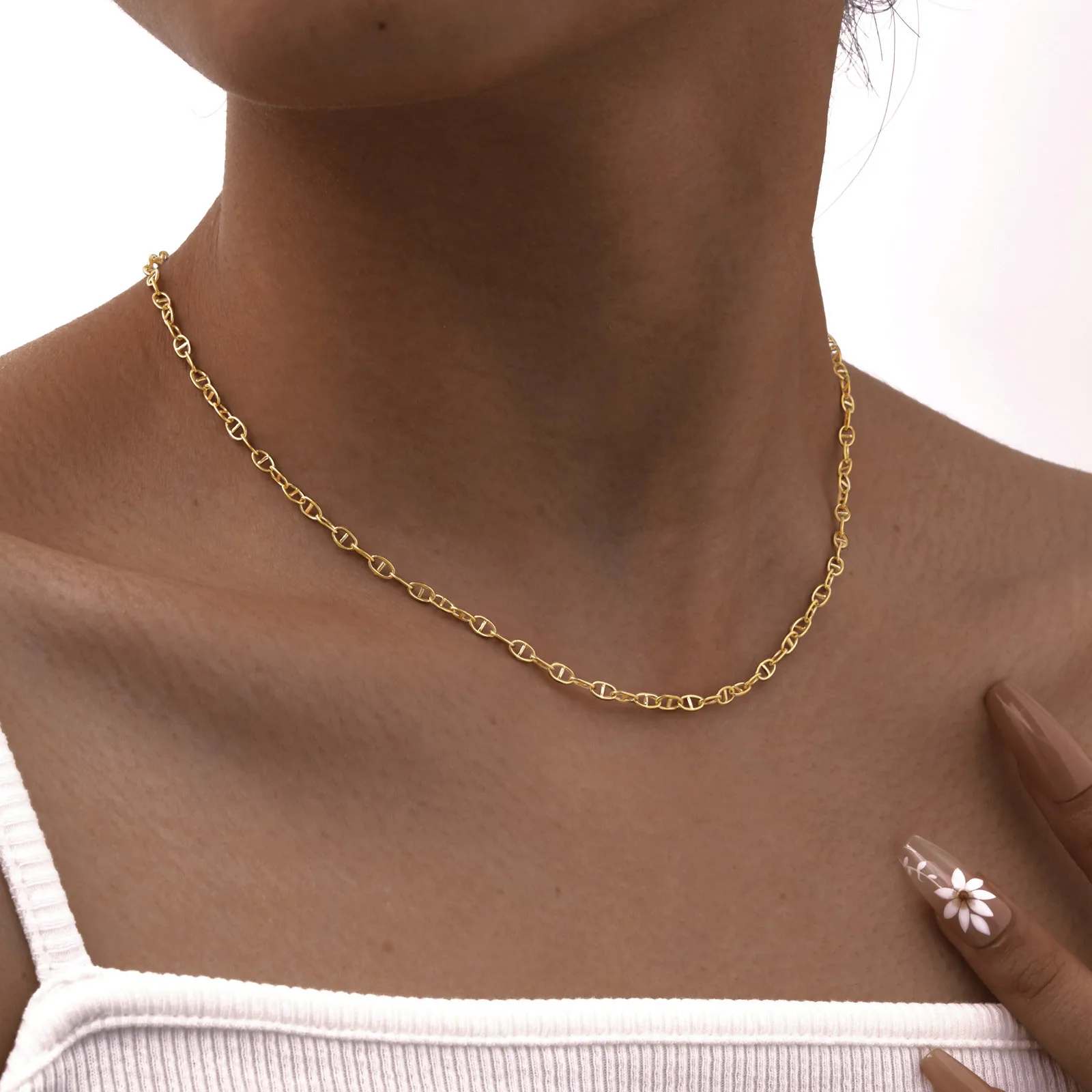 Simple Stainless Steel Women's 18k Gold Plated Necklace Pig Nose Day Necklace Summer Collarbone Chain Simple Style Daily Wear
