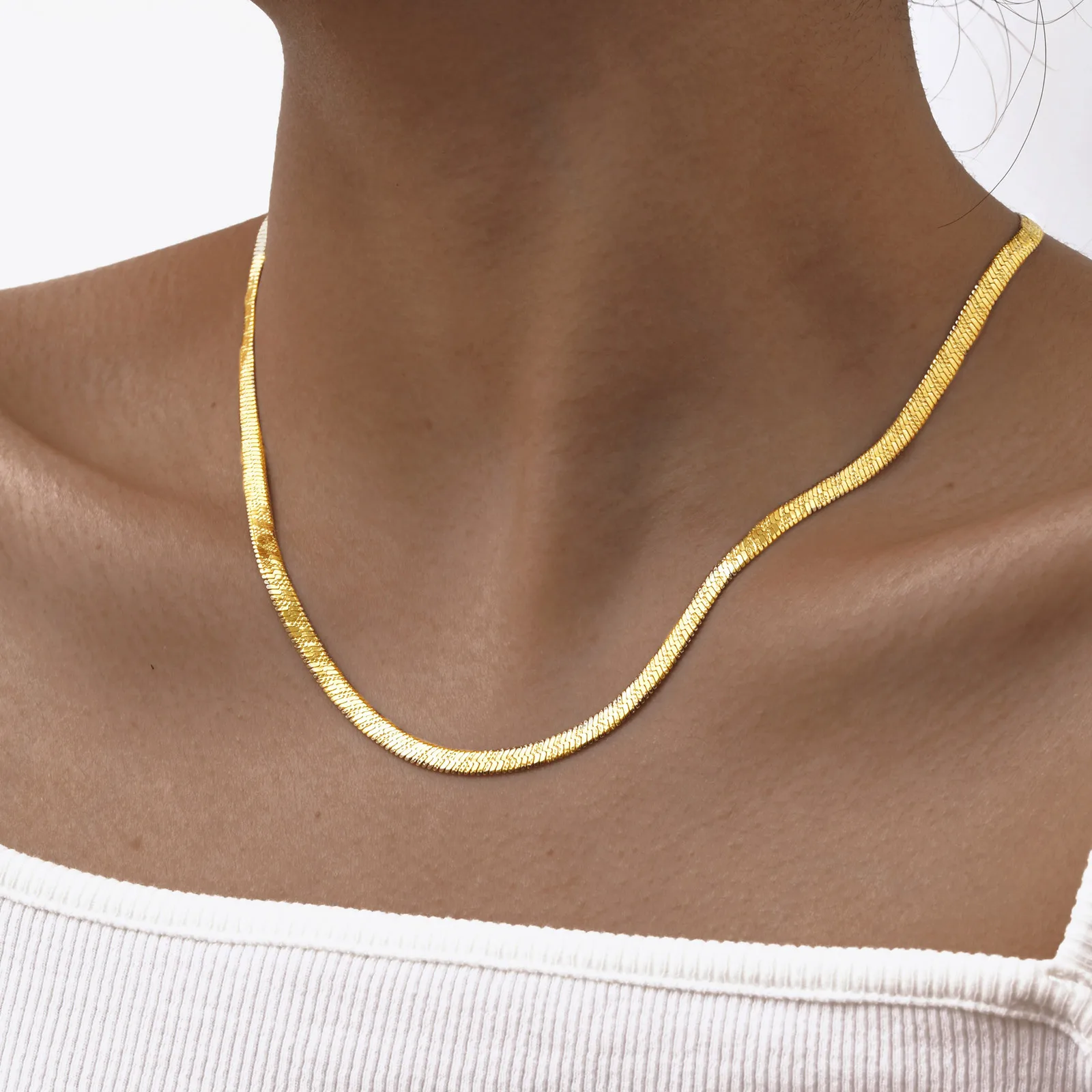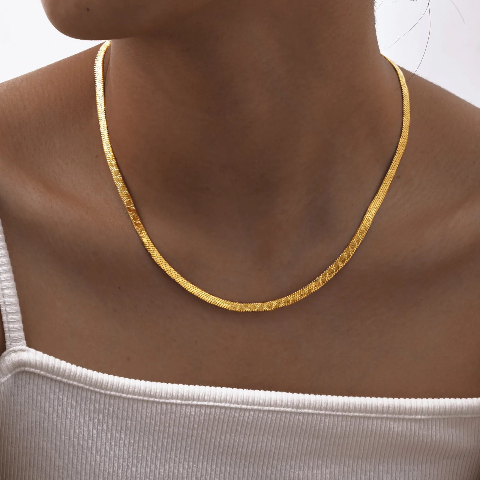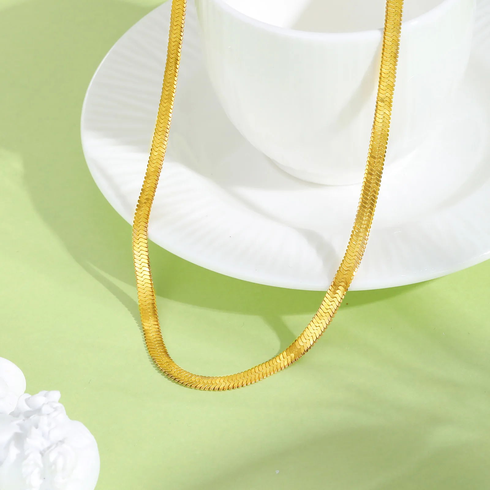 High-Grade Stainless Steel Gold Color Snake Chain Necklace Flat Snake Chain Necklace for Women