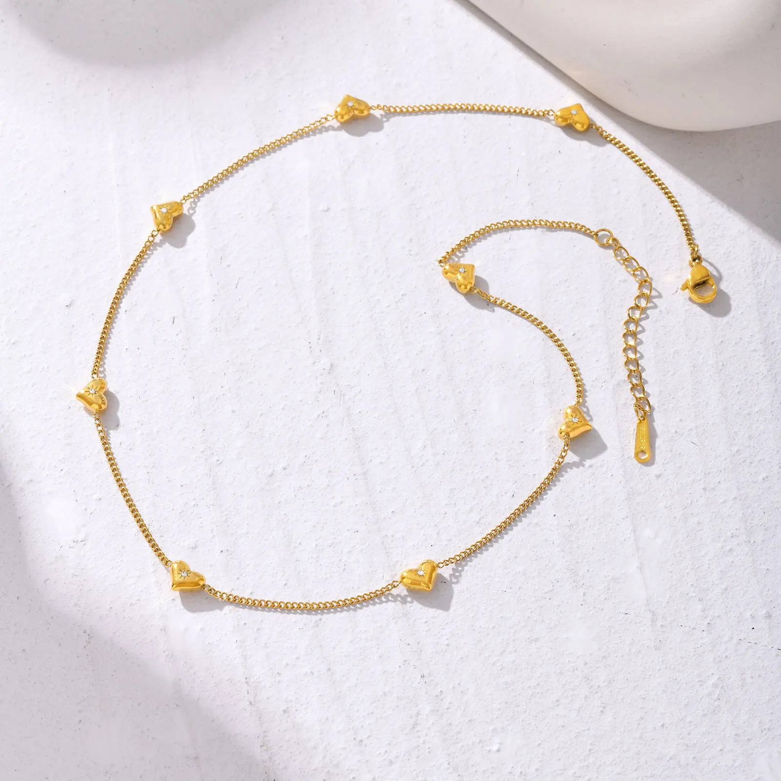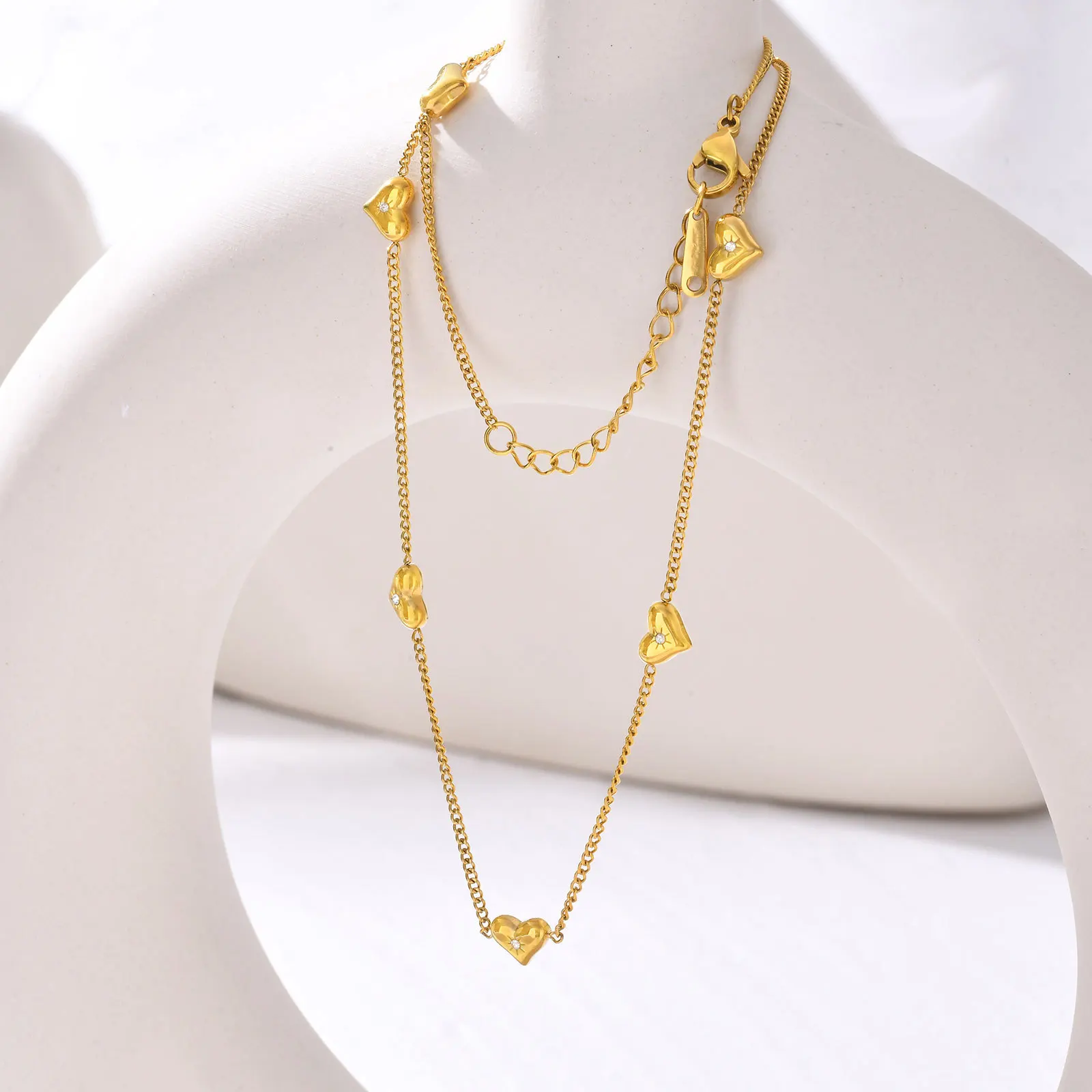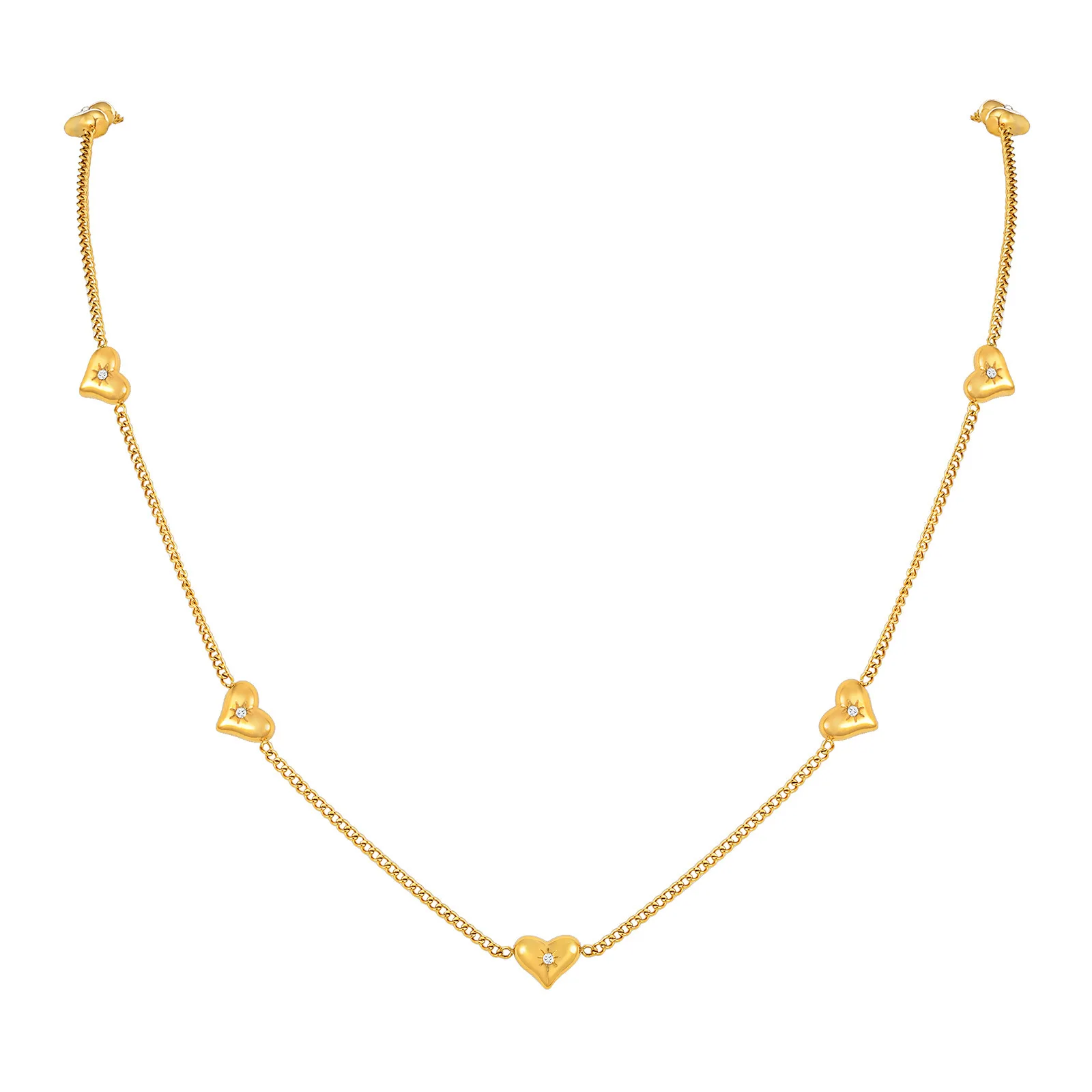 Trendy Women Inlaid Zircon Sweet Heart Chain Necklace Stainless Steel Gold Plated Jewelry Necklace