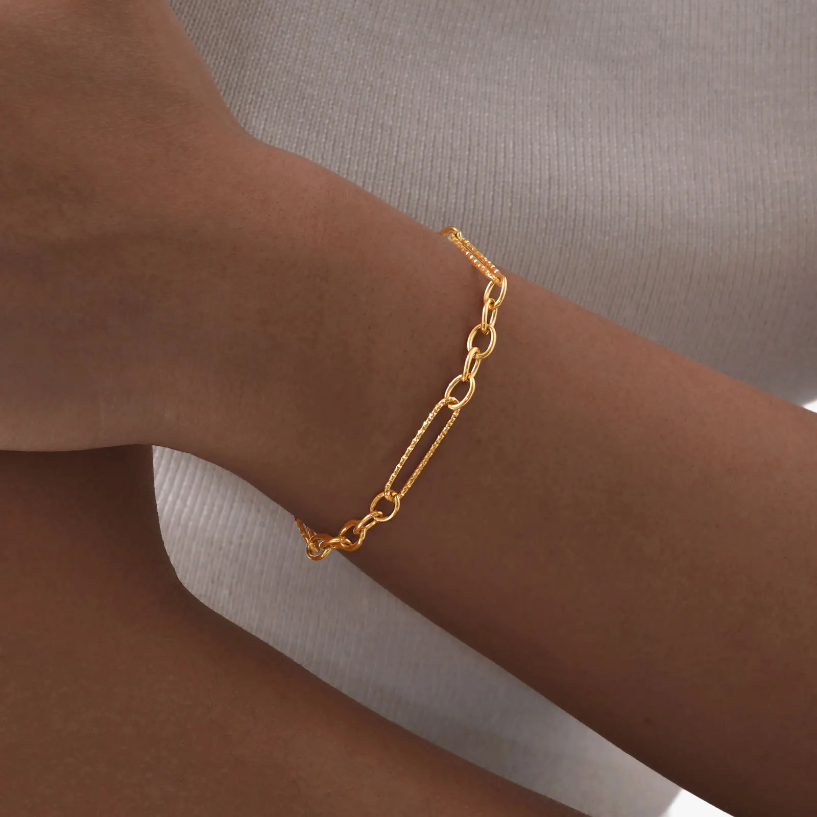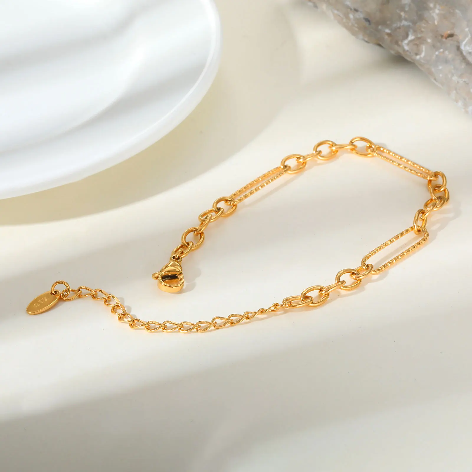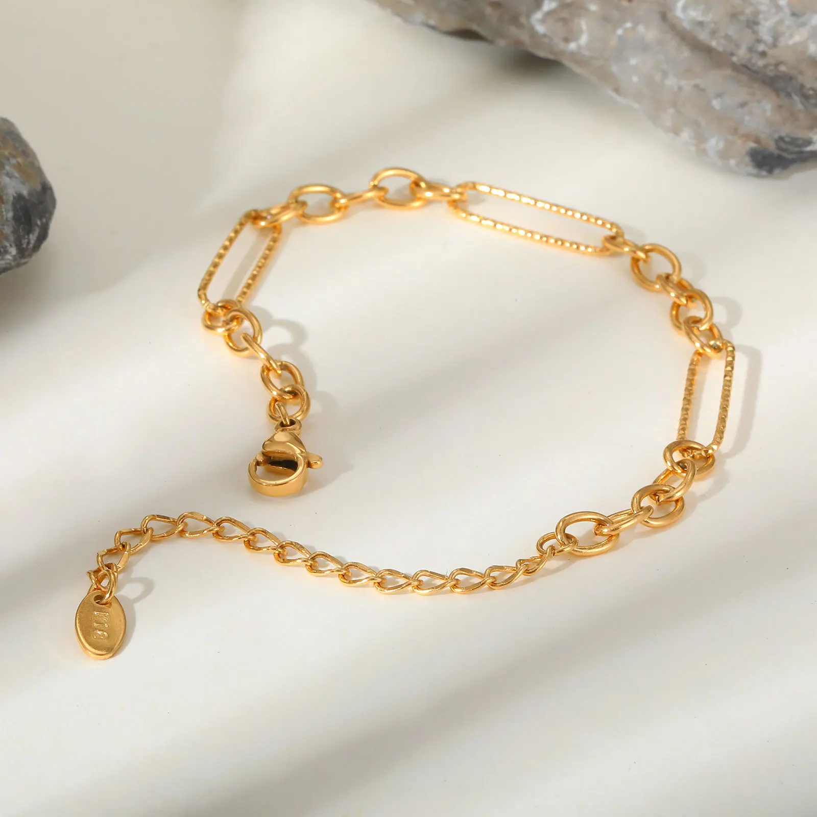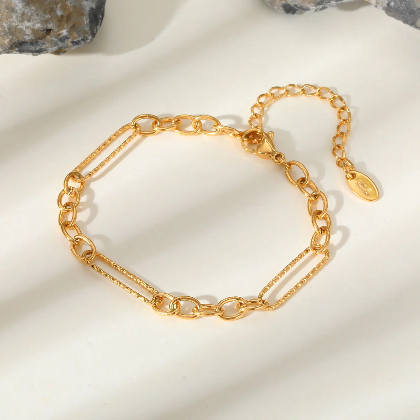 High Quality Anti-faded 18K Gold Plated Stainless Steel Chain Bracelet Fashion Handmade Paper Clip Bracelet for Women