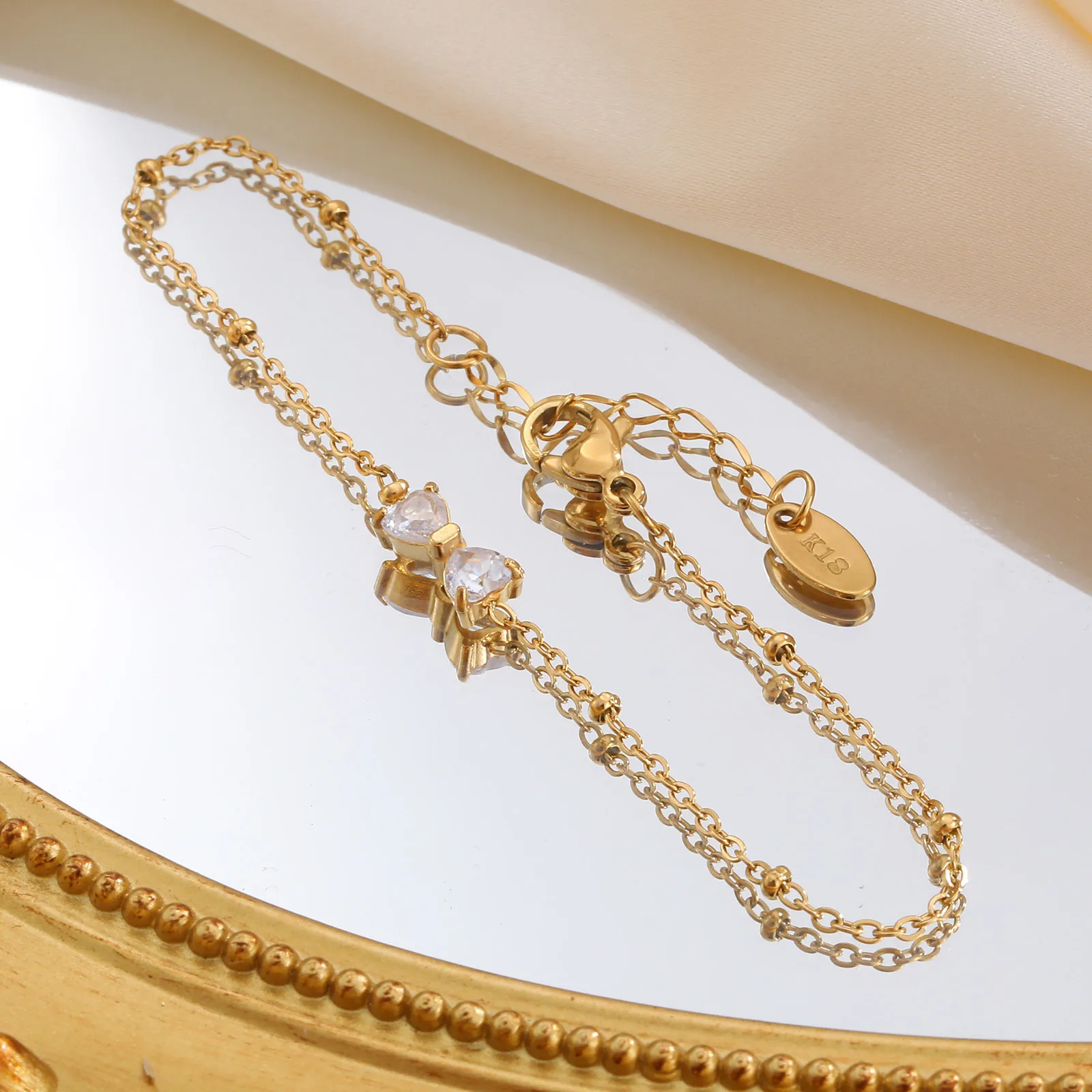 Wholesale High End 18K Gold Plated Stainless Steel Charm Bracelets Hot Sales Zircon Bow Bracelet for Women Daily Wear