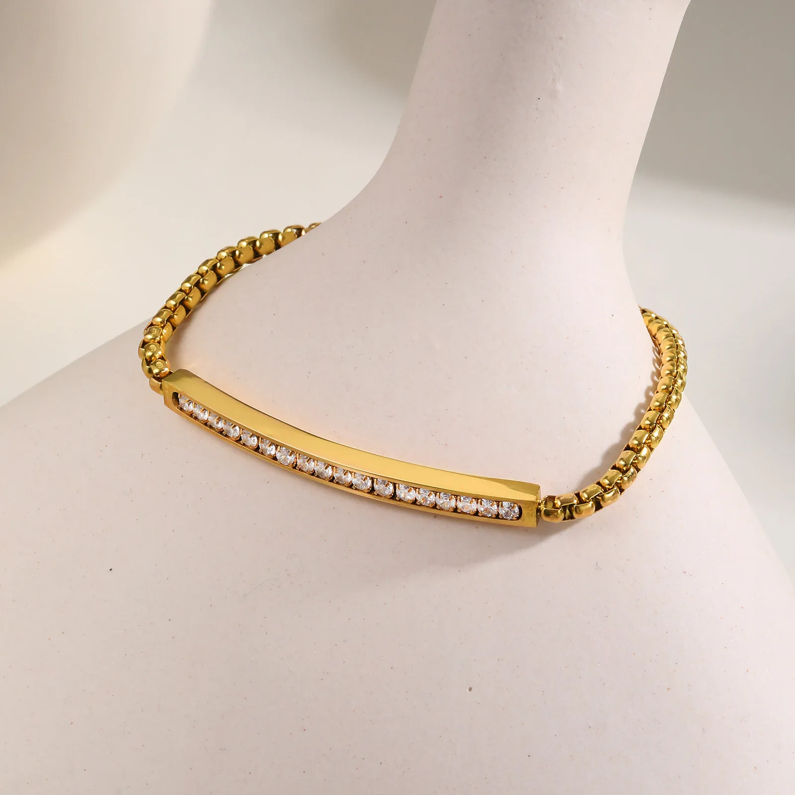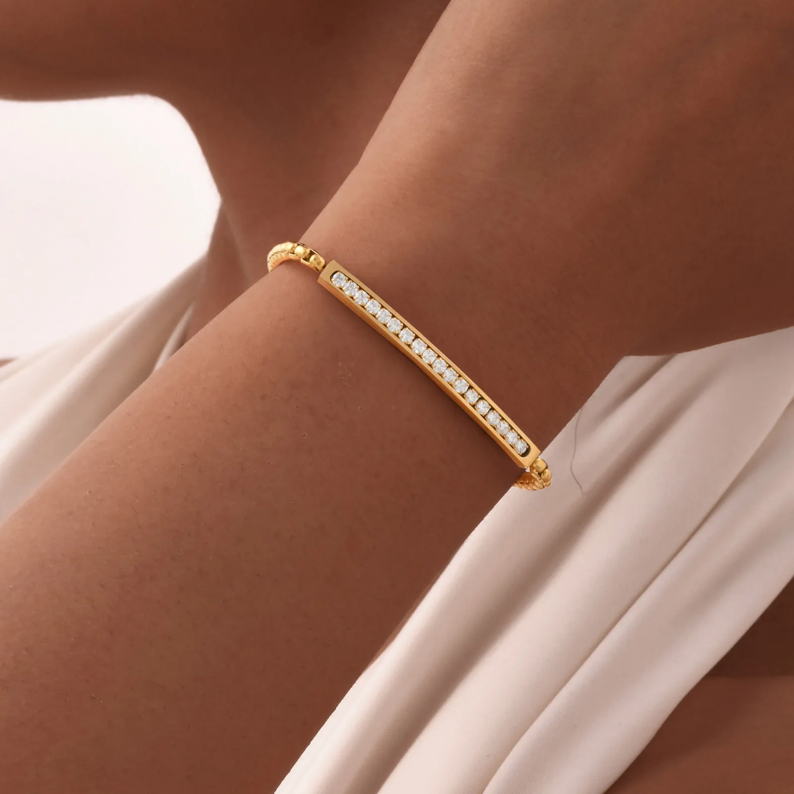Personal Design Luxury Stainless Steel Women Adjustable Chain Bracelets Stainless Steel Gold Plated Square Zircon Bracelet