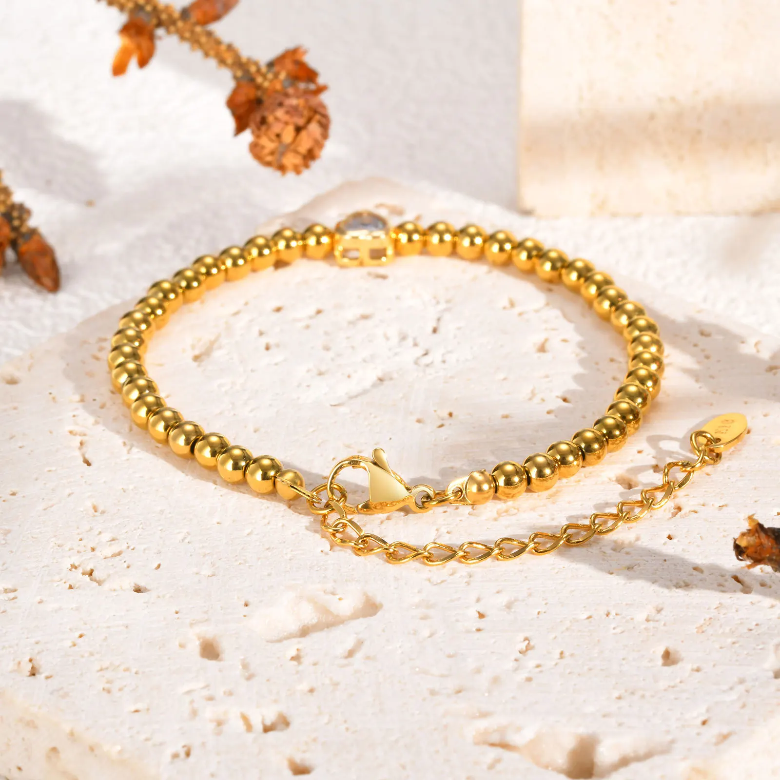 Simple Waterproof Beaded Heart Bracelet Bangles Women 18k Gold Plated Stainless Steel Beads Bracelets