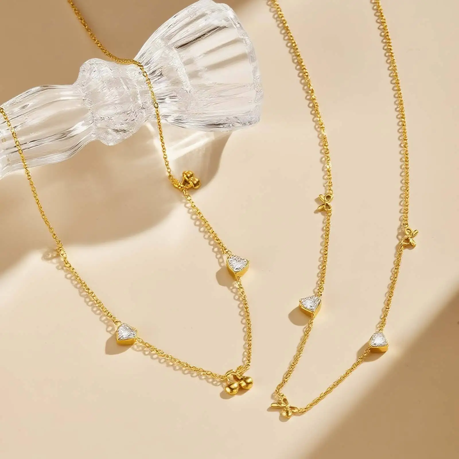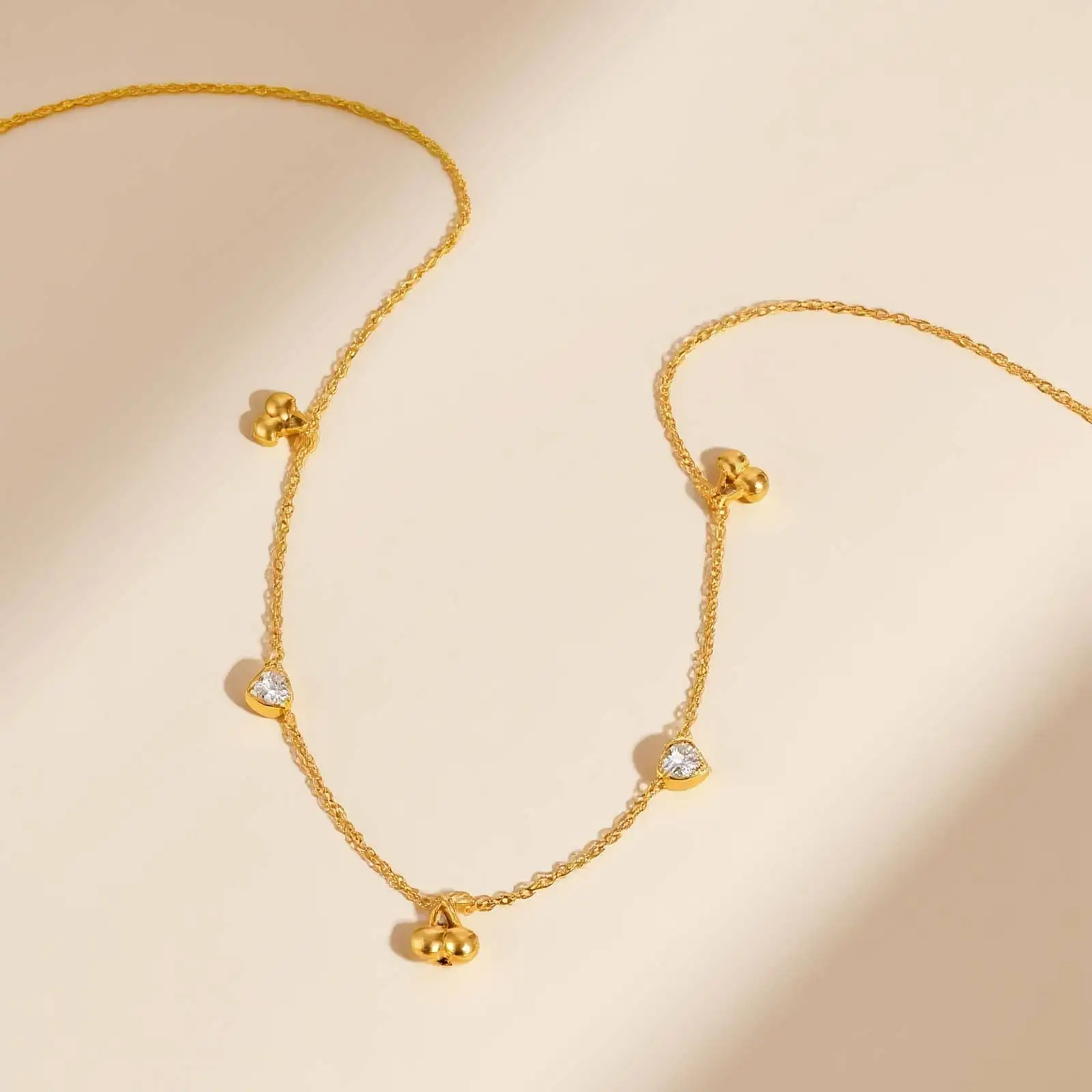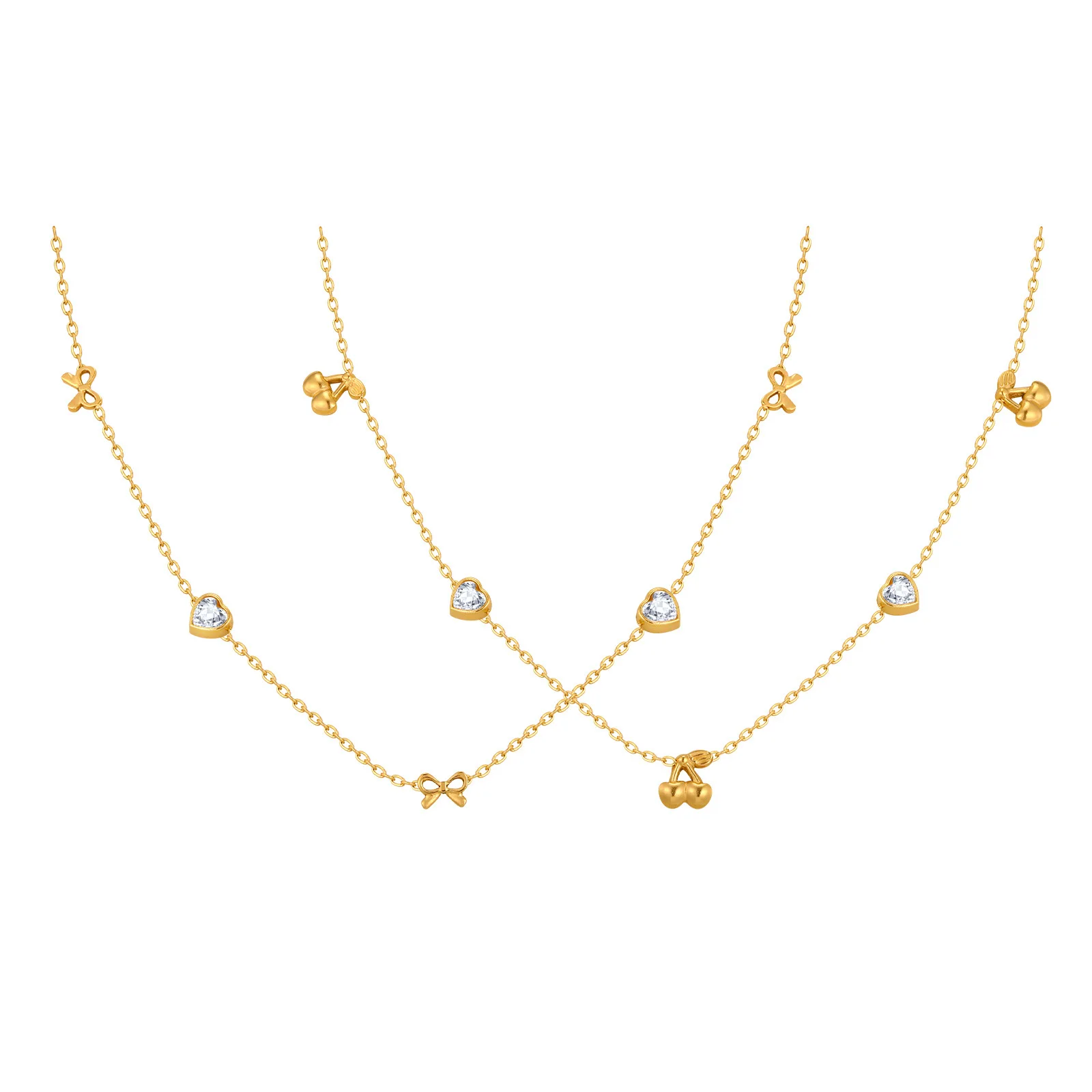 Dainty Cute Stainless Steel Chain Necklace Heart Cherry Zircon Pendant Necklace for Women Girls Gifts