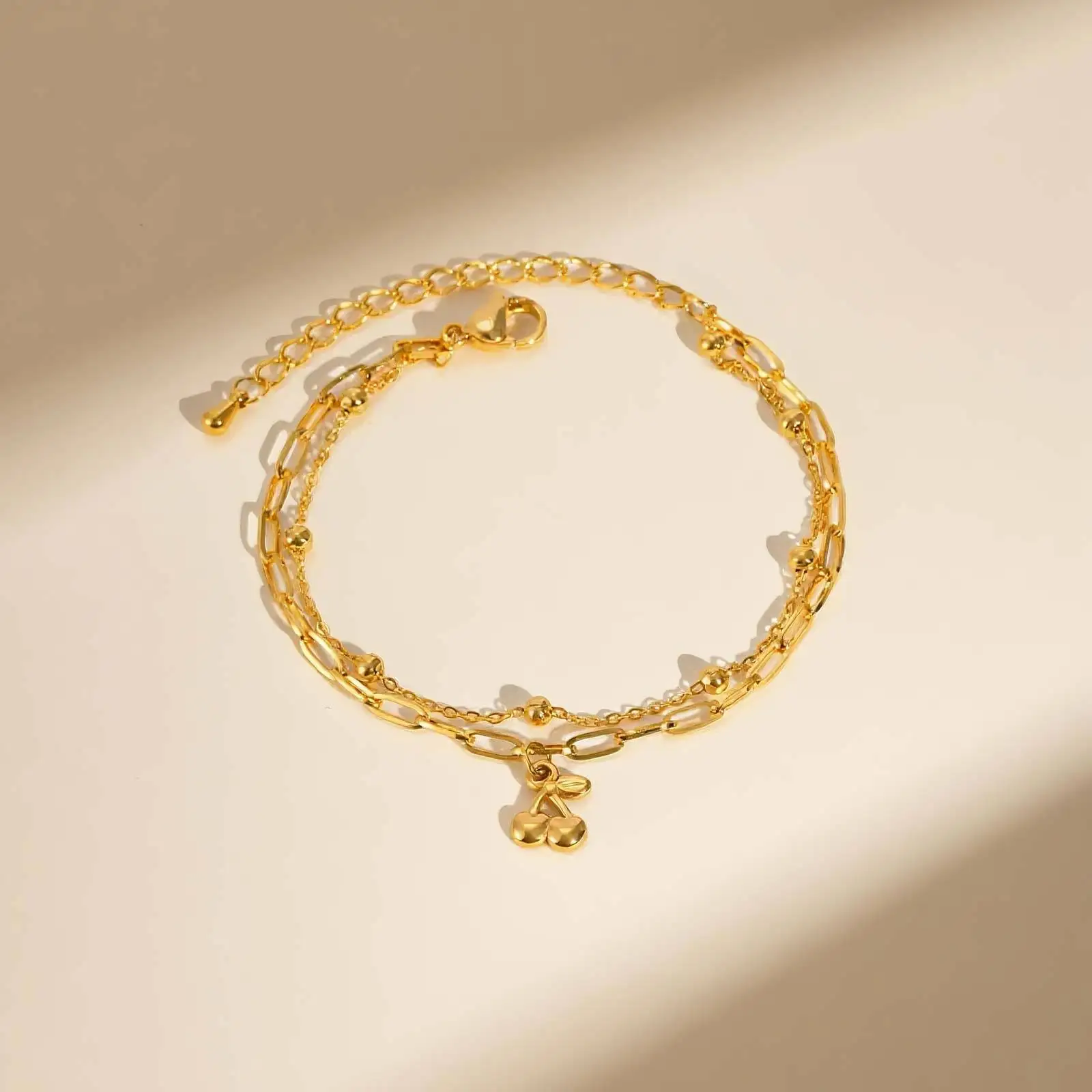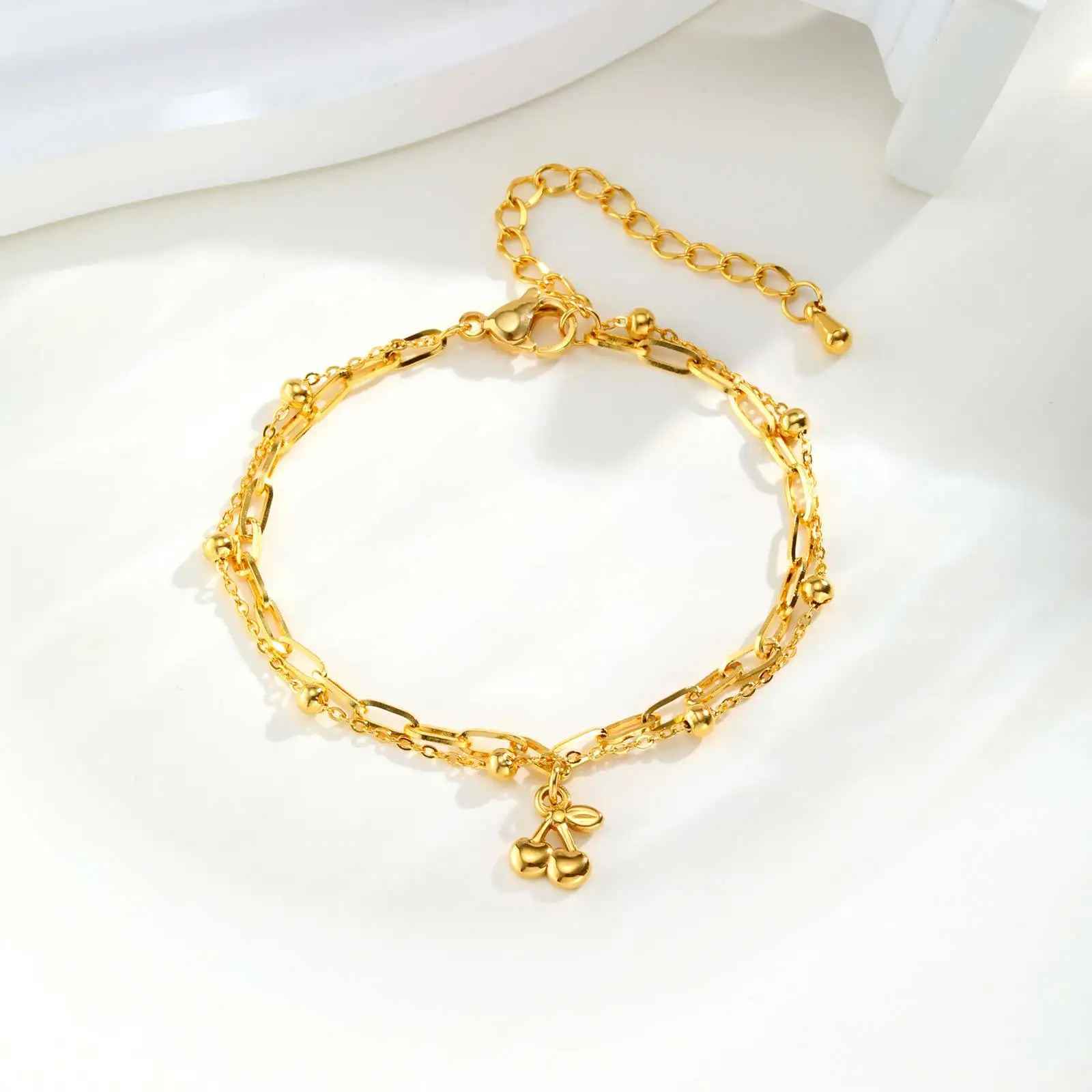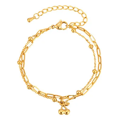 Hot Sale Hypoallergenic Women Girl Double-layer Gold Plated Bracelets Stainless Steel Cherry Charm Jewelry Bracelet