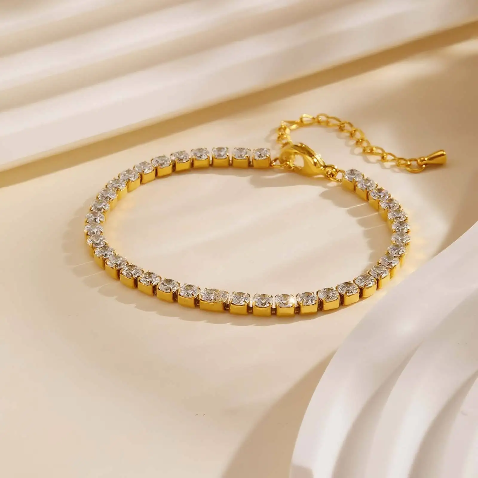 Fine Fashion Women Anti Tarnish Jewelry Bracelets Bangles Stainless Steel Adjustable Zircon Tennis Chain Friendship Bracelets