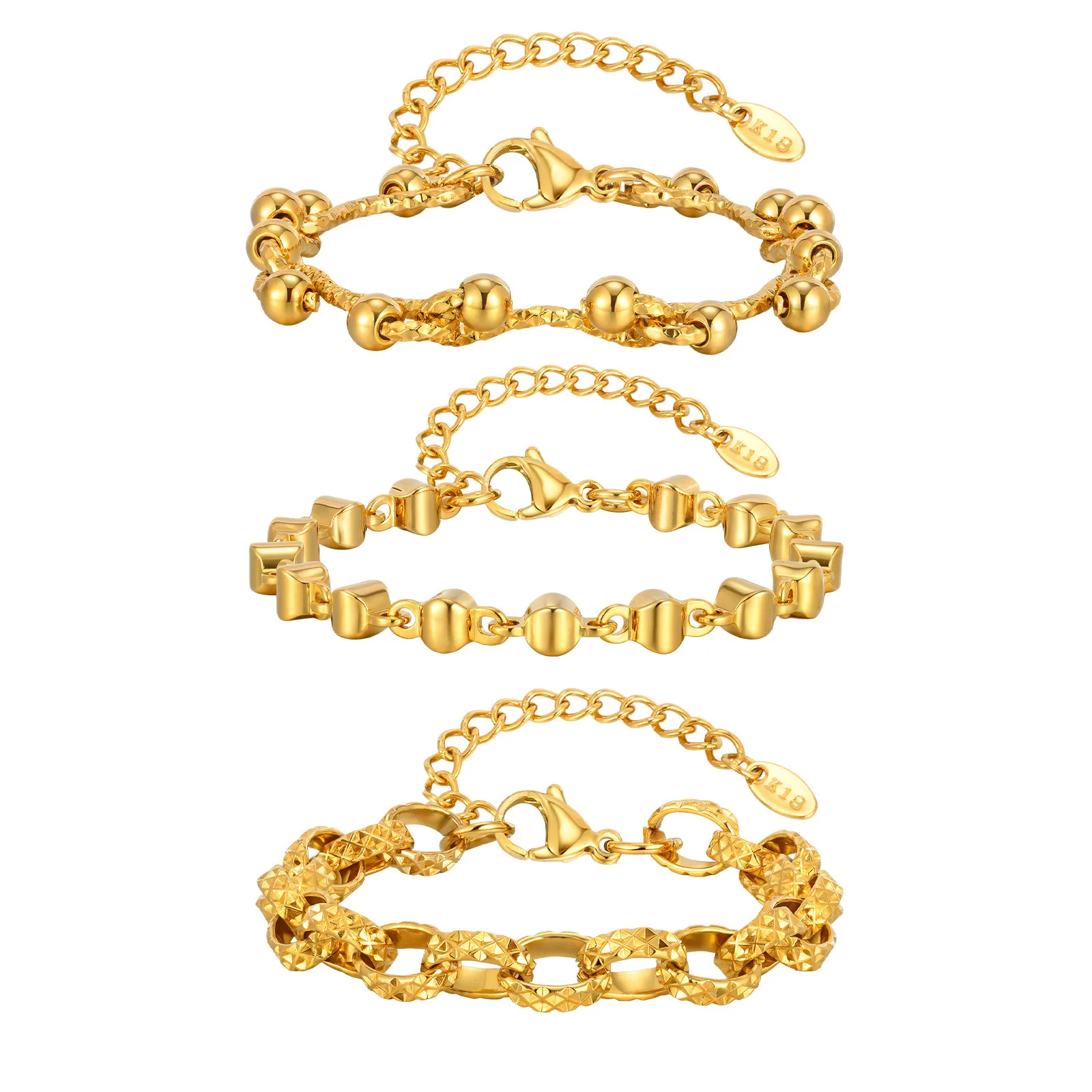 Fashion Jewelry Women's Geometric Pattern Bracelet Adjustable Chunky Cuban Chains Bracelets Waterproof