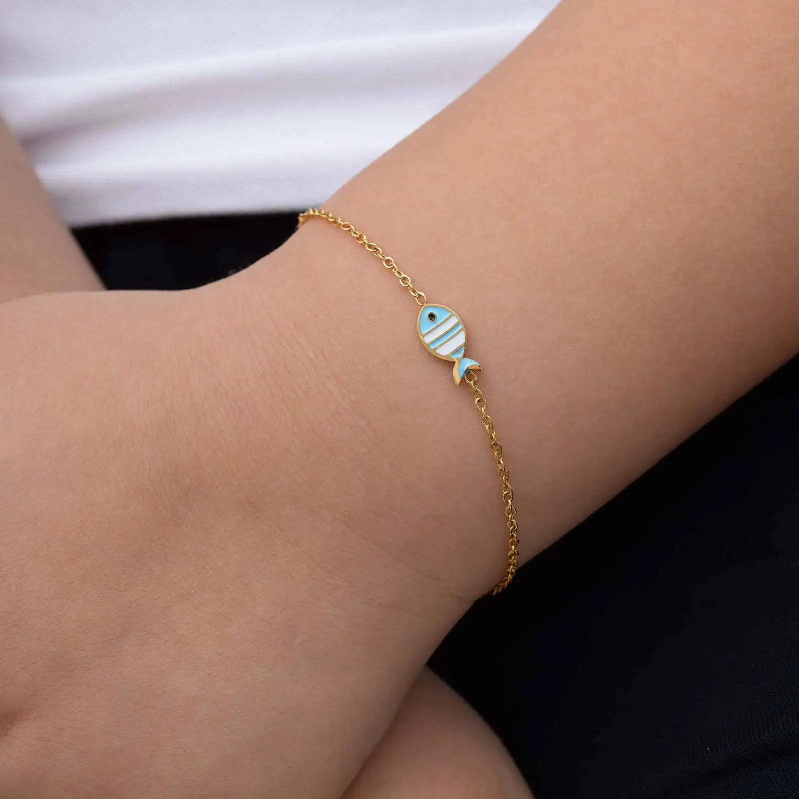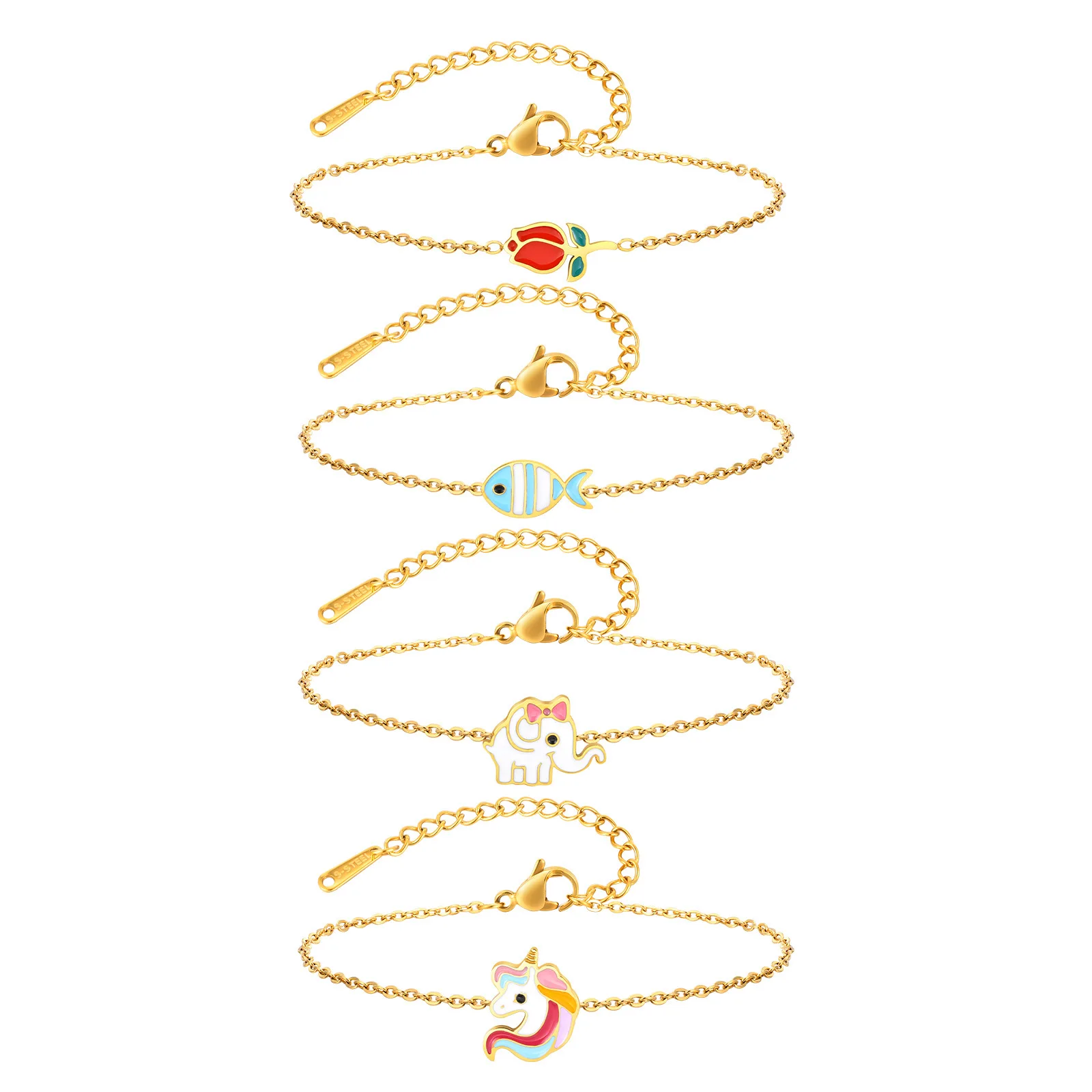 High End Stainless Steel Fish Flower Charm Bracelet Cute Pattern Jewelry Bracelets for Women