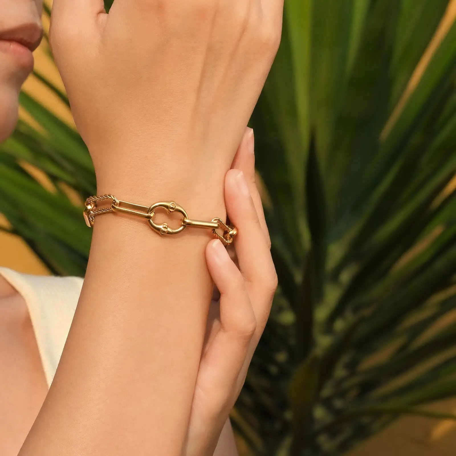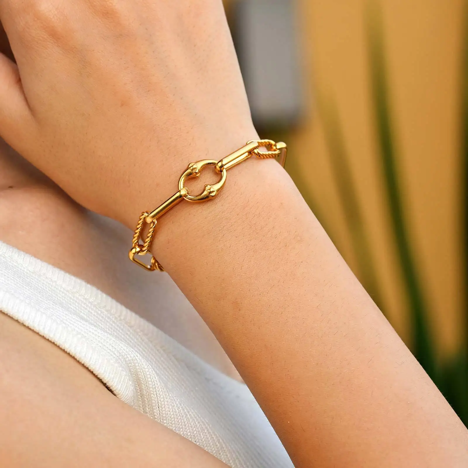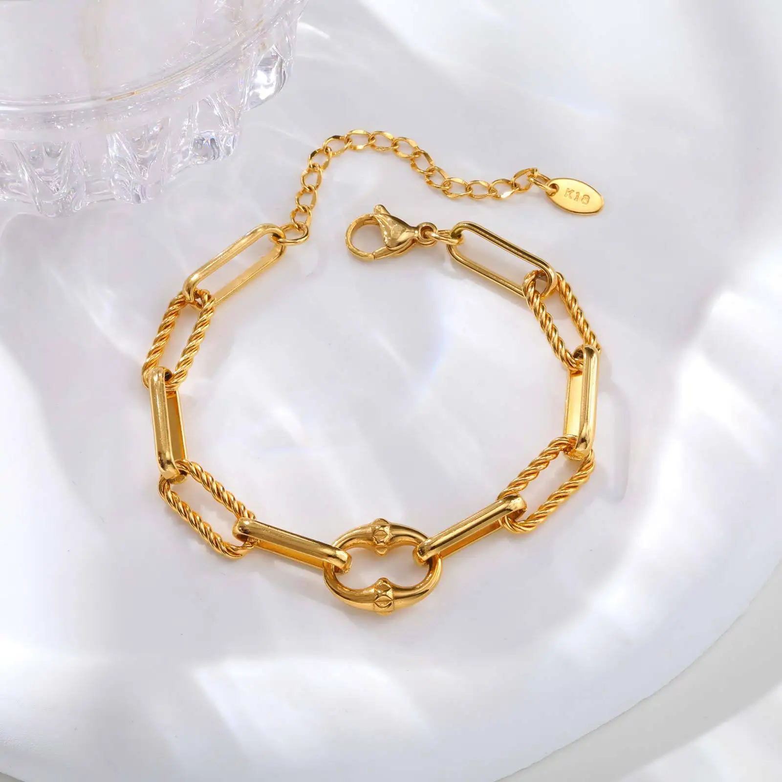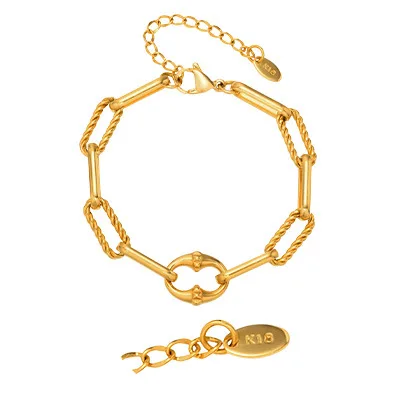 Best Selling Women Waterproof Jewelry Bracelets Gold Plated Stainless Steel Twists Rectangular Chain Bracelet