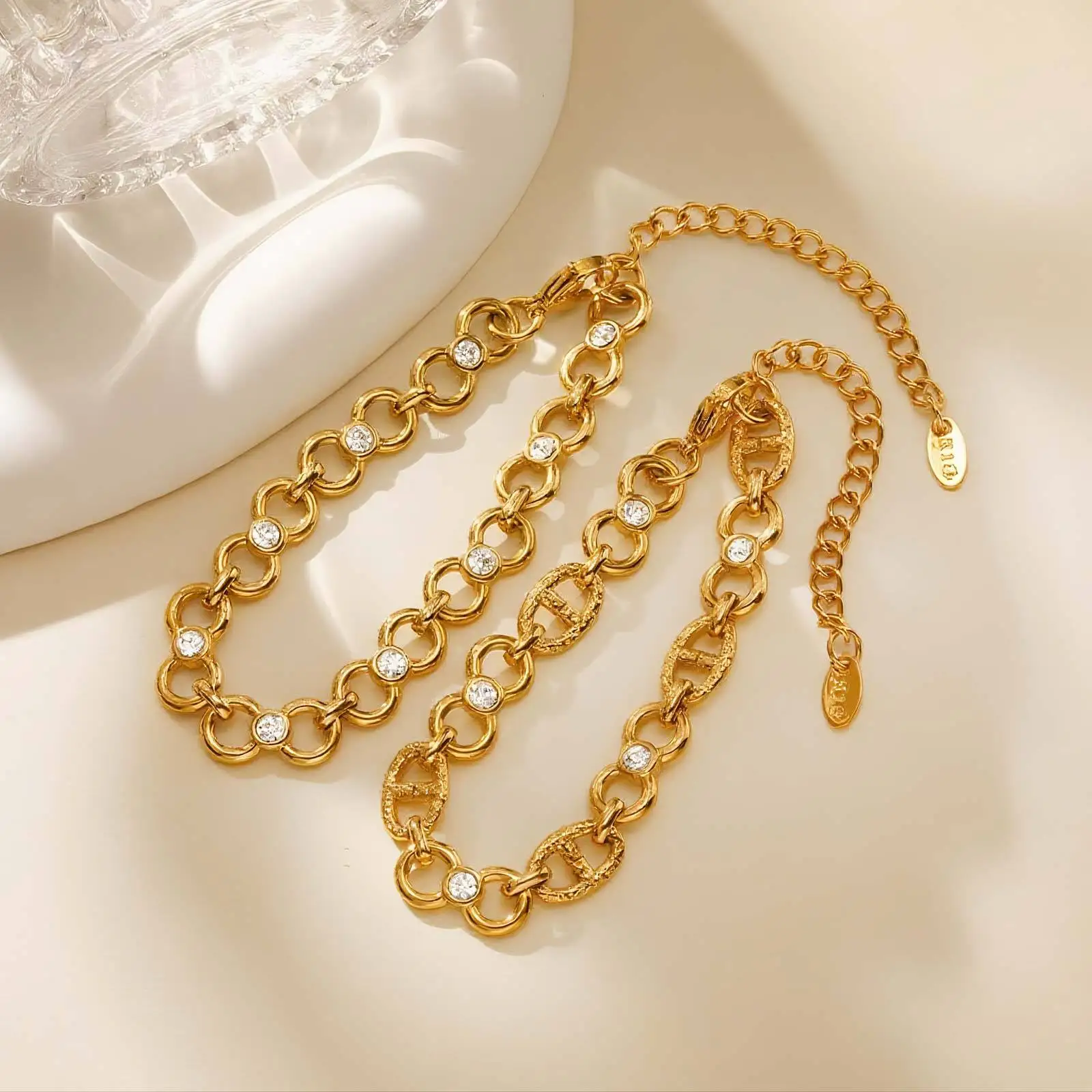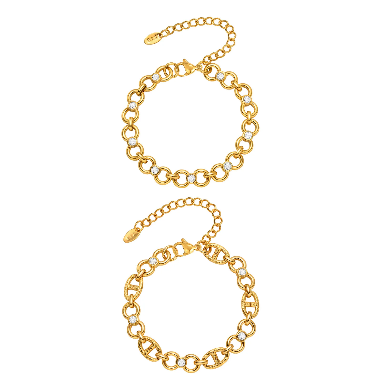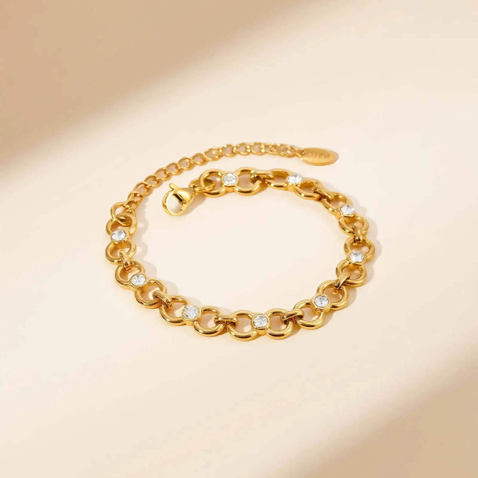 Fine Chain Link Stainless Steel White Zircon Chain Bracelet 18k Gold Plated Oval Sun-Character Chain Bracelets