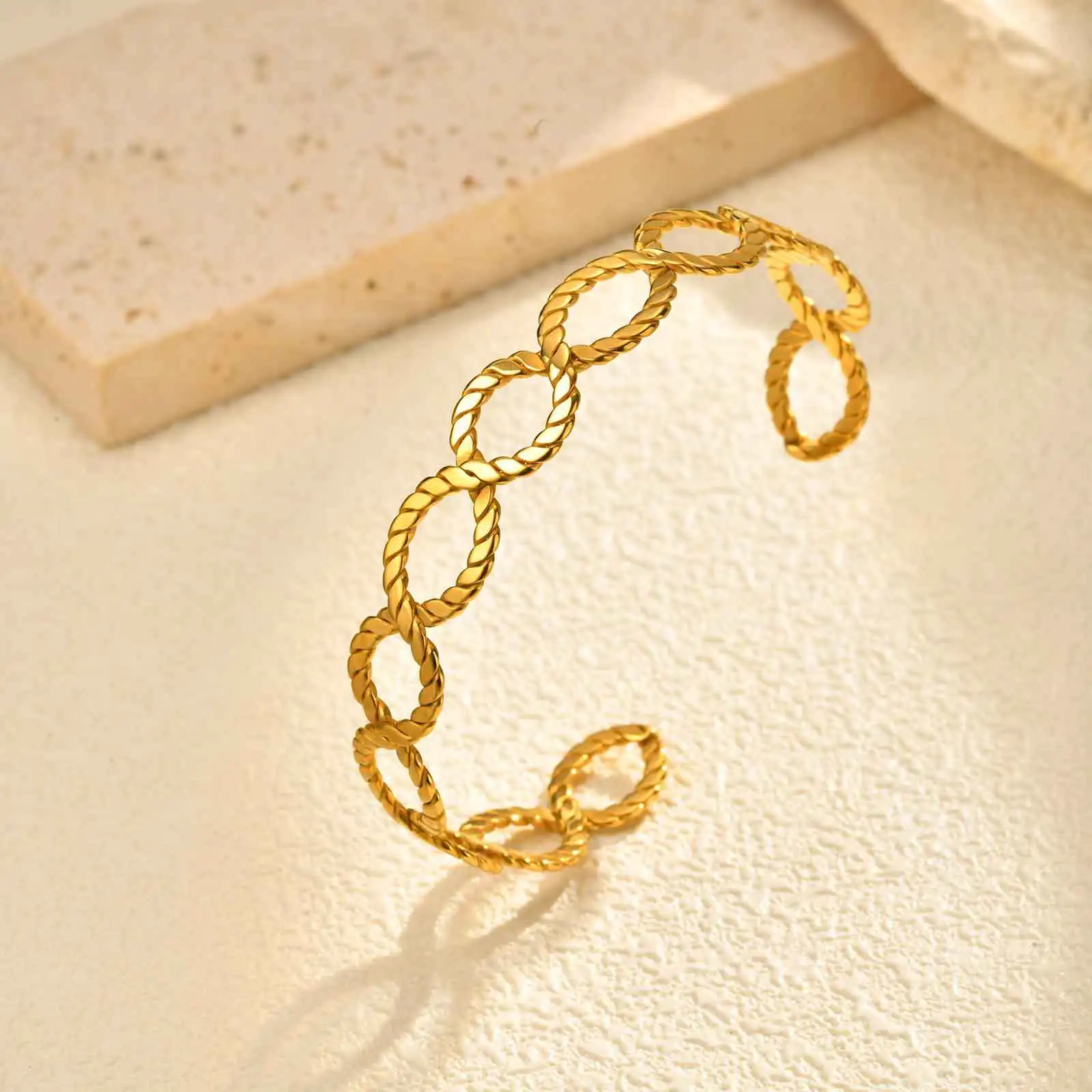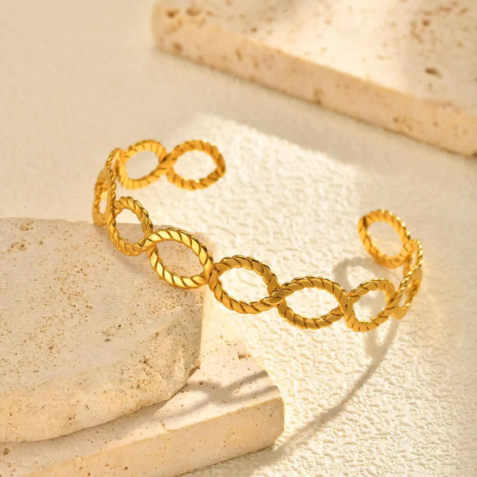 Fashionable Jewelry Exquisite Irregular Hollow Out Opening Cuff Bangle Stainless Steel Twists Pattern Bangle Bracelet for Women