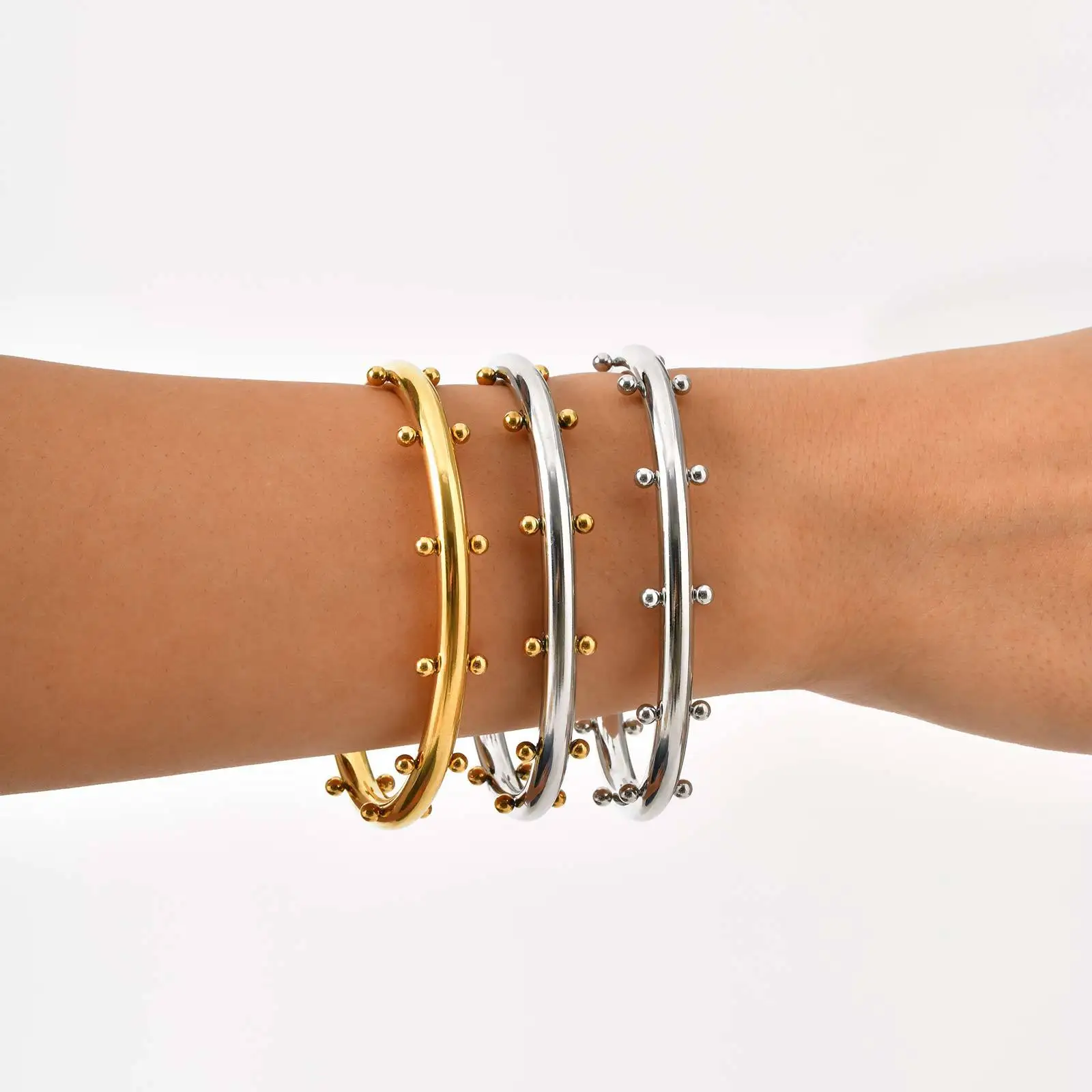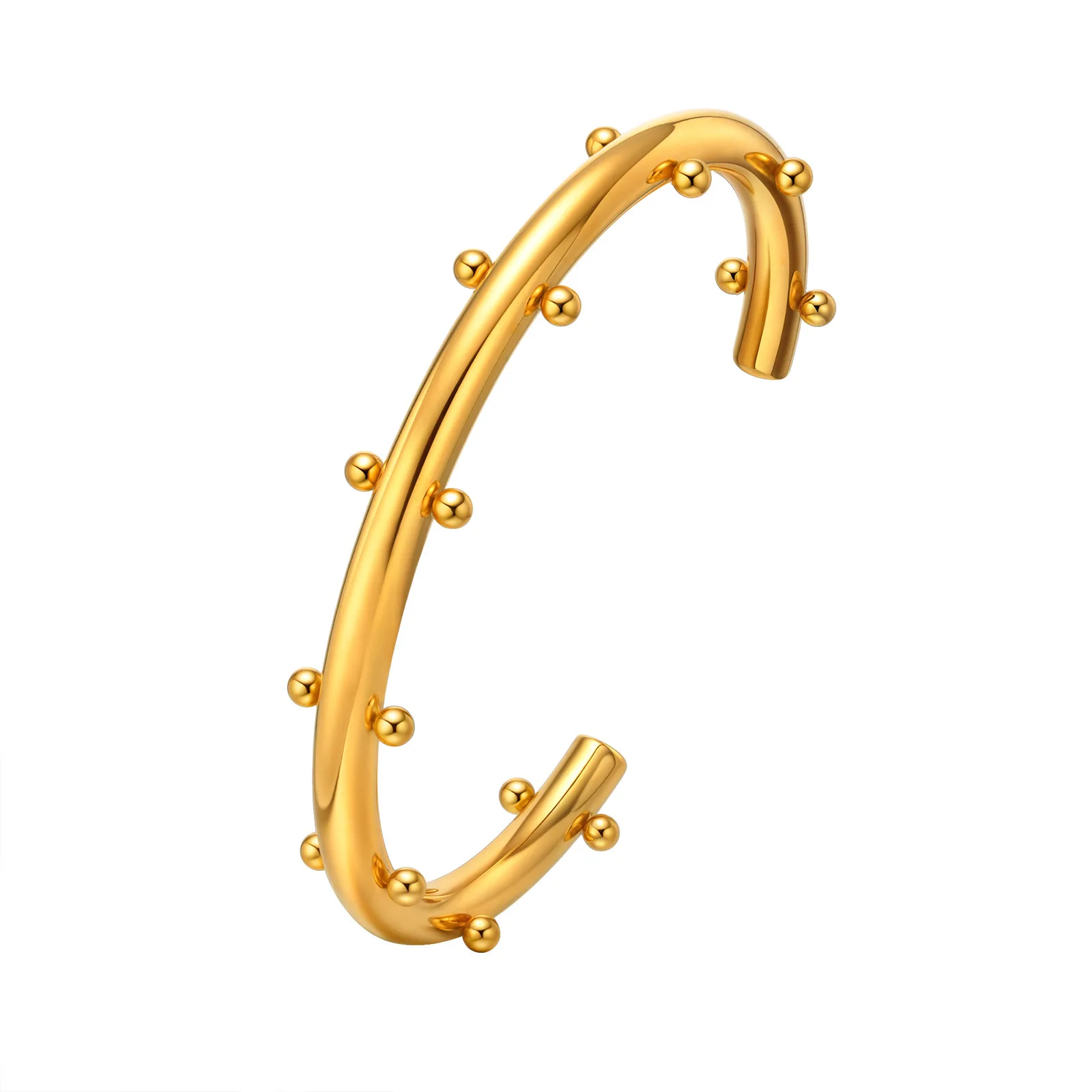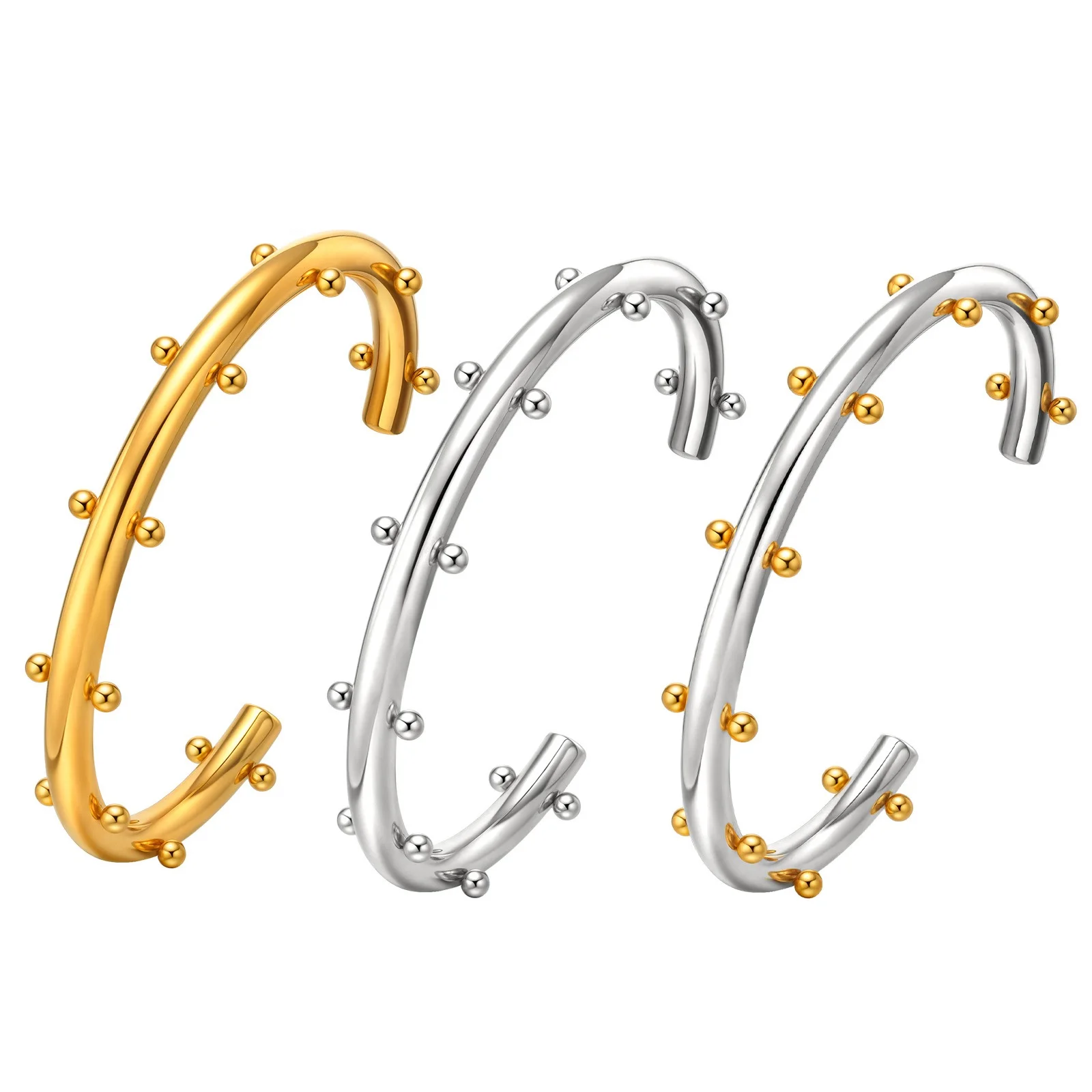 Double Color Personality Stylish Design Women Steel Ball Cuff Open Bangles Stainless Steel Gold Plated Jewelry Bangles