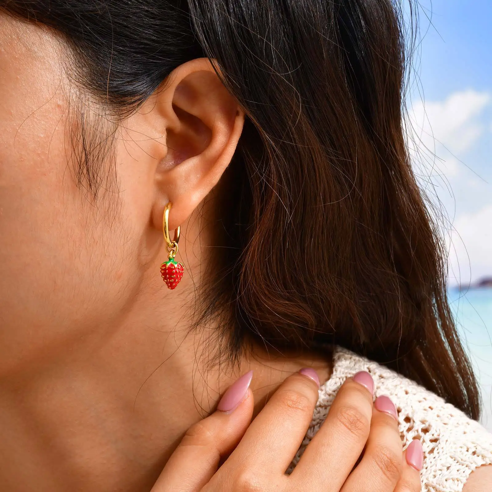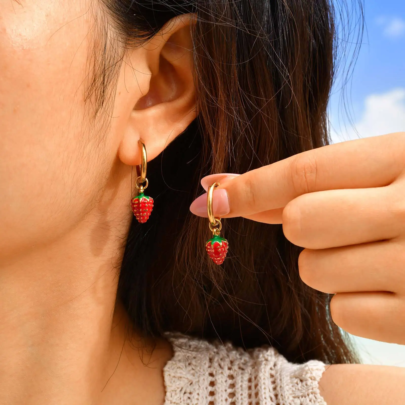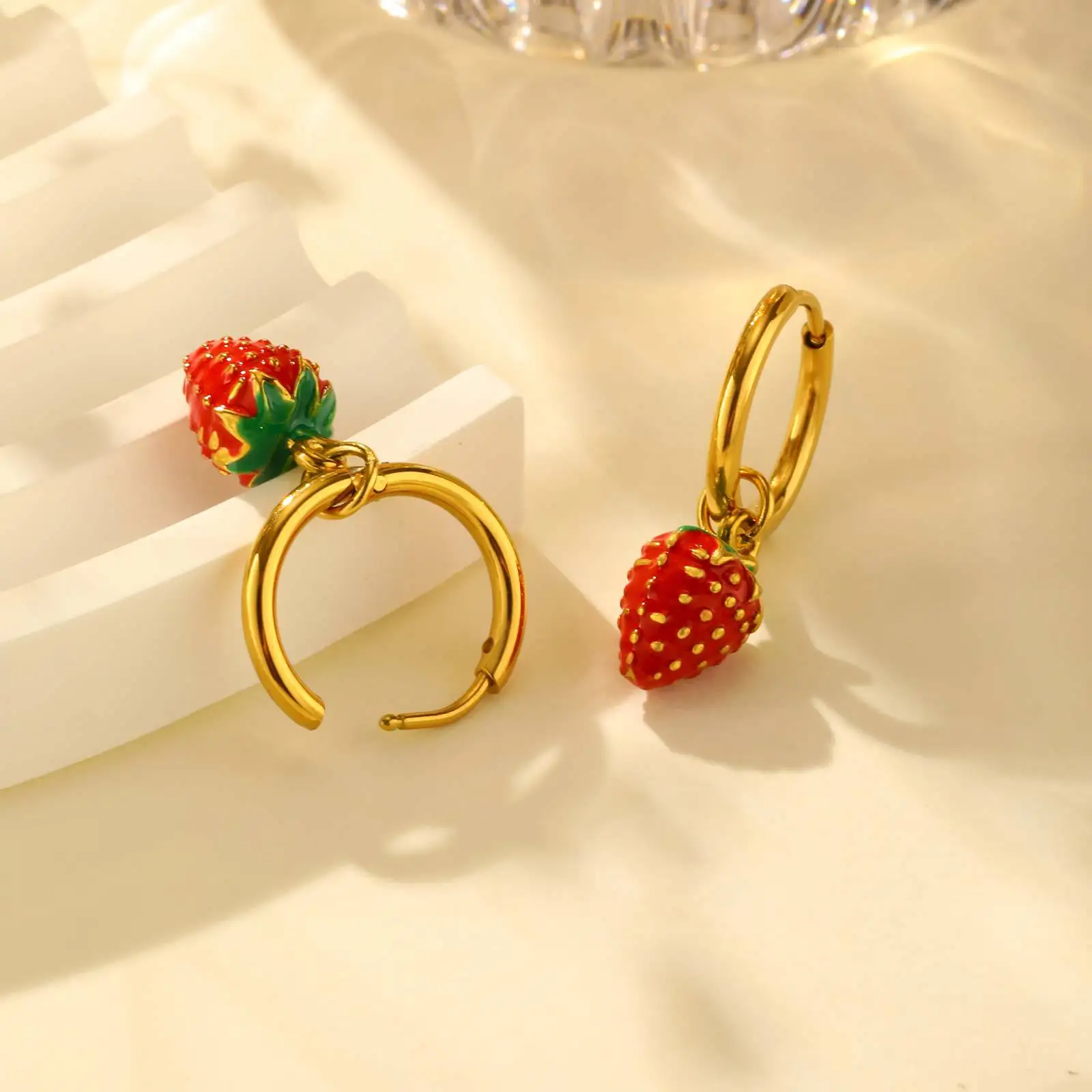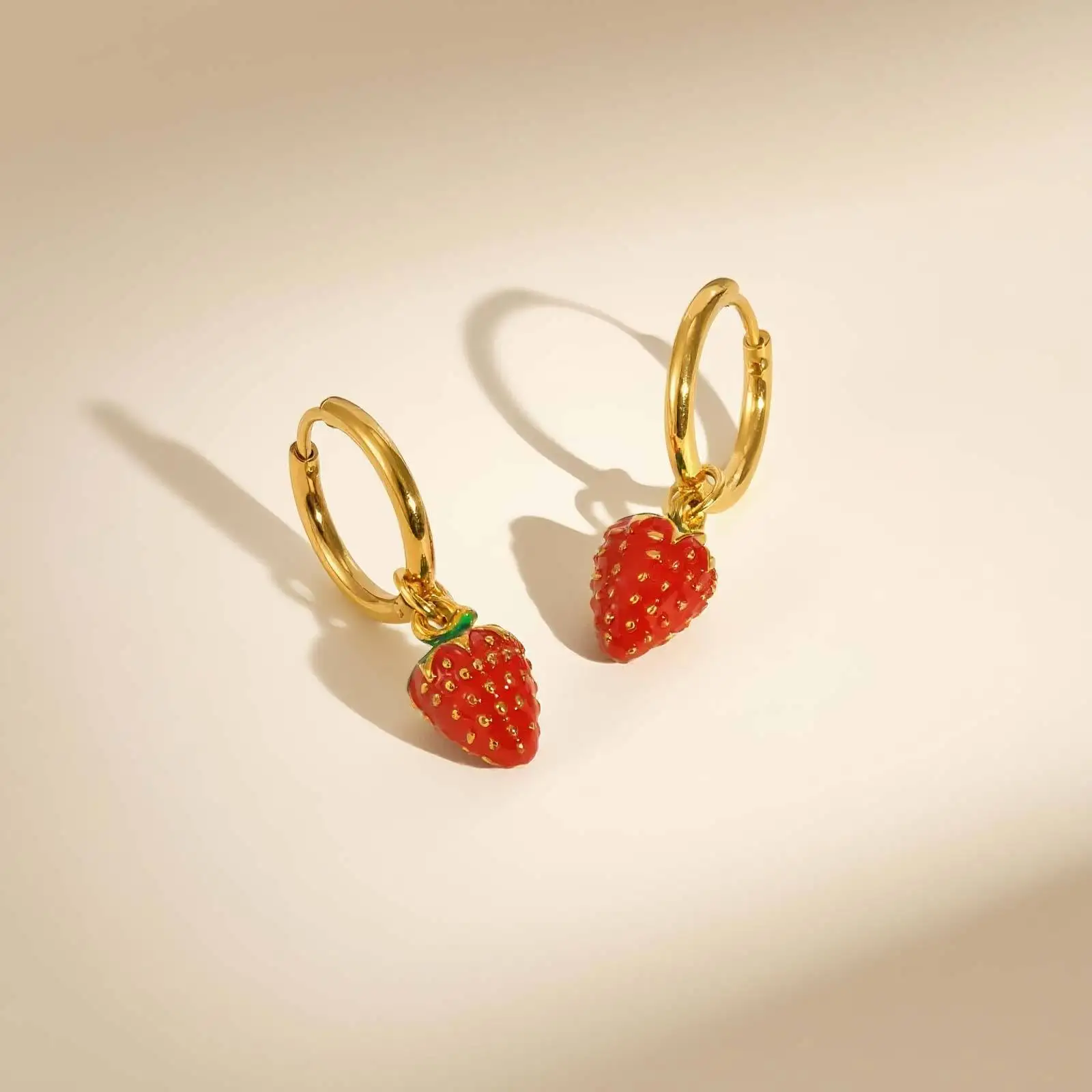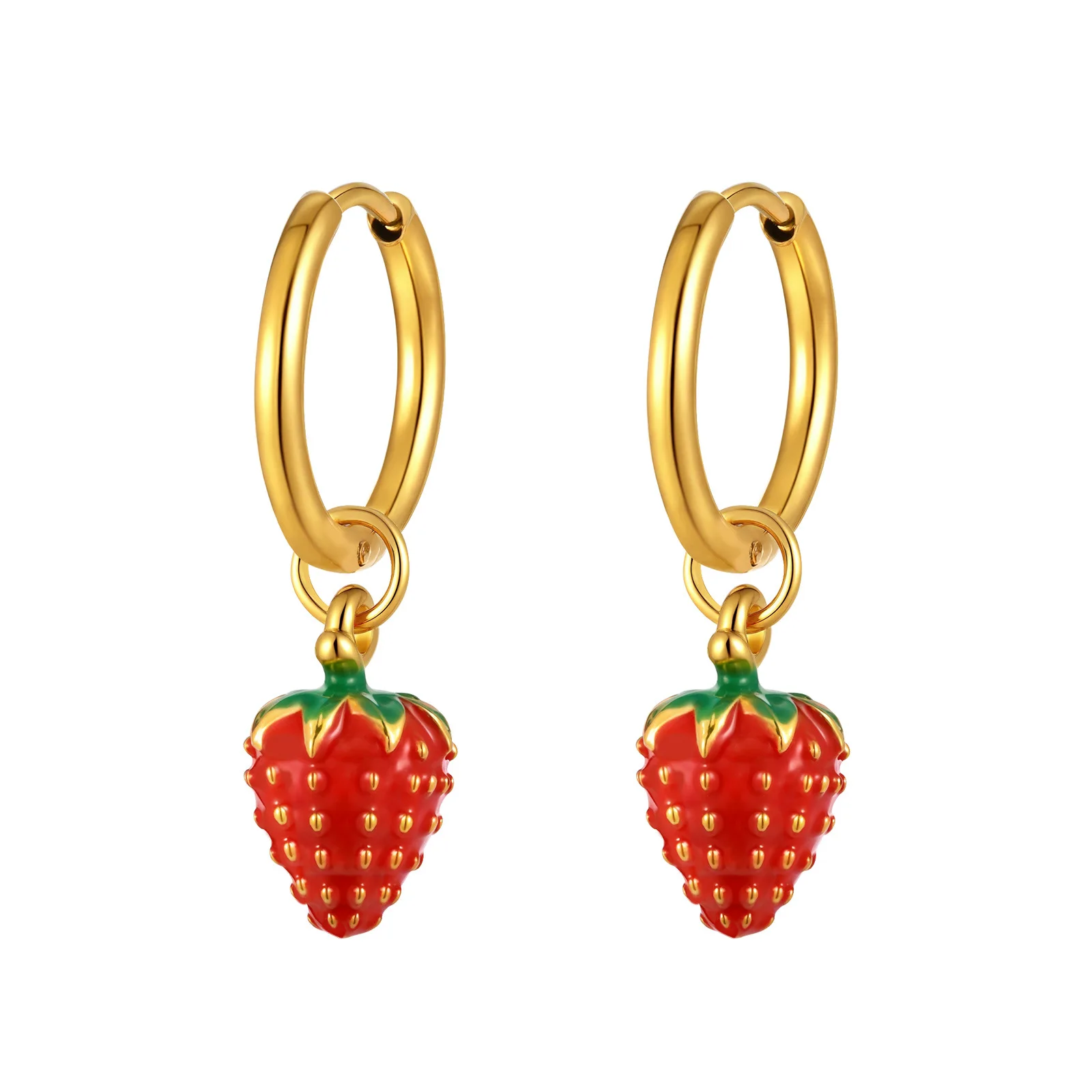 New Trendy Gold Plated Drop Earring Stainless Steel Cute Sweet Strawberry Pendant Earrings for Girls