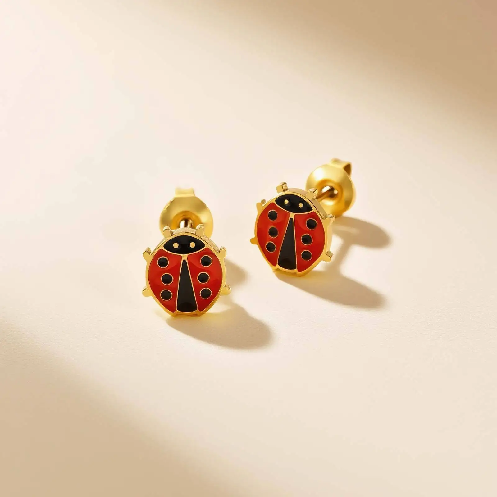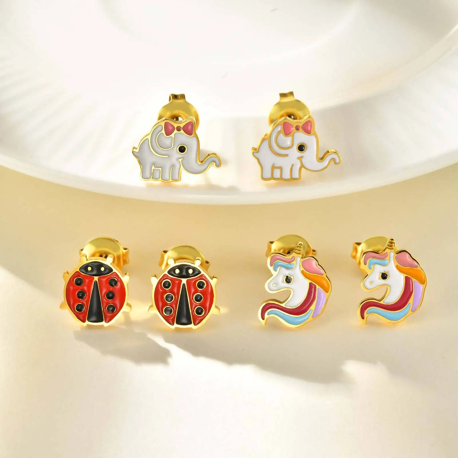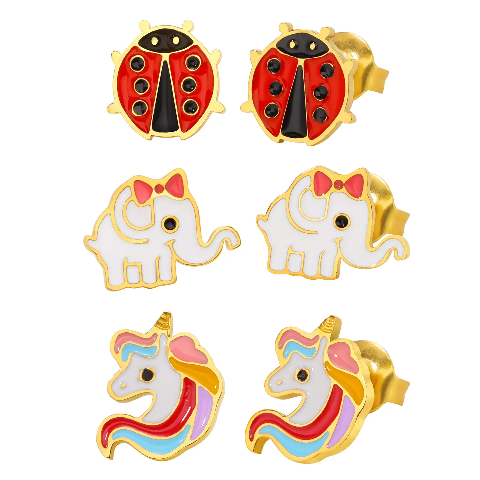 Personalized Design Colorful Cartoon Ladybug Elephant Earrings Women's Gold Plated Stainless Steel Stud Earring Jewelry
