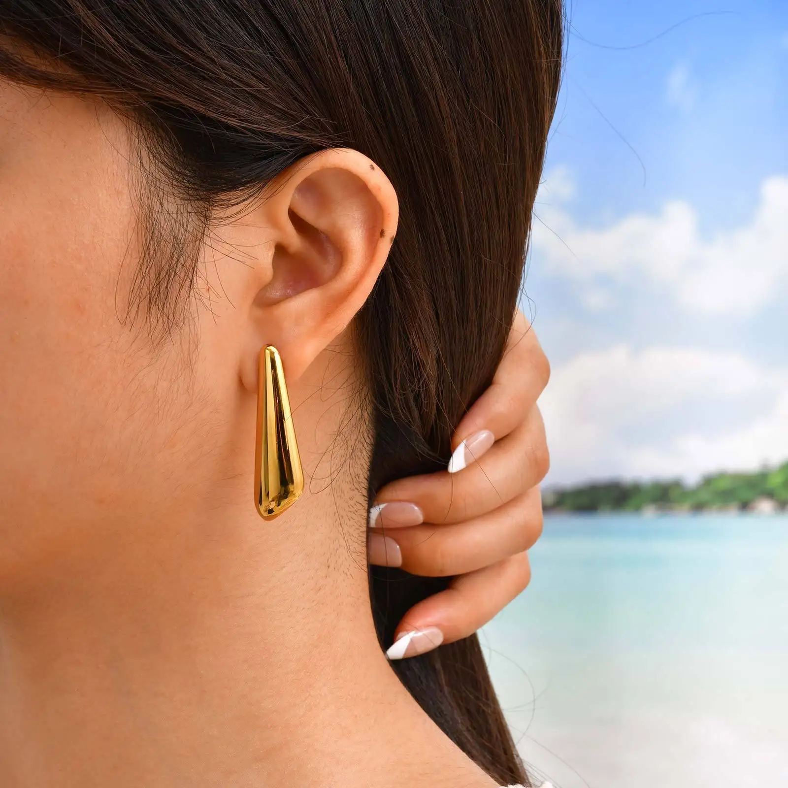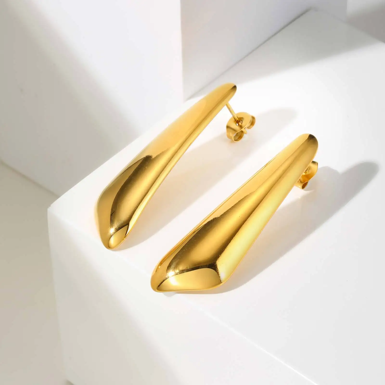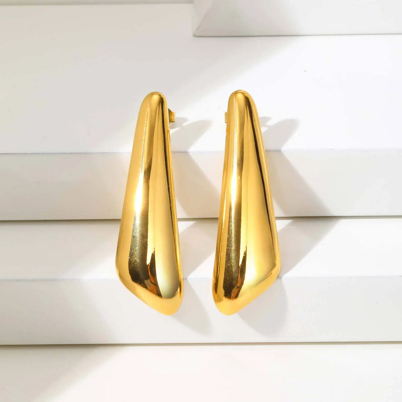 Vintage Non Tarnish Jewelry Geometric Pattern Smooth Surface Ear Stud Women's Gold Plated Stainless Steel Stud Earrings