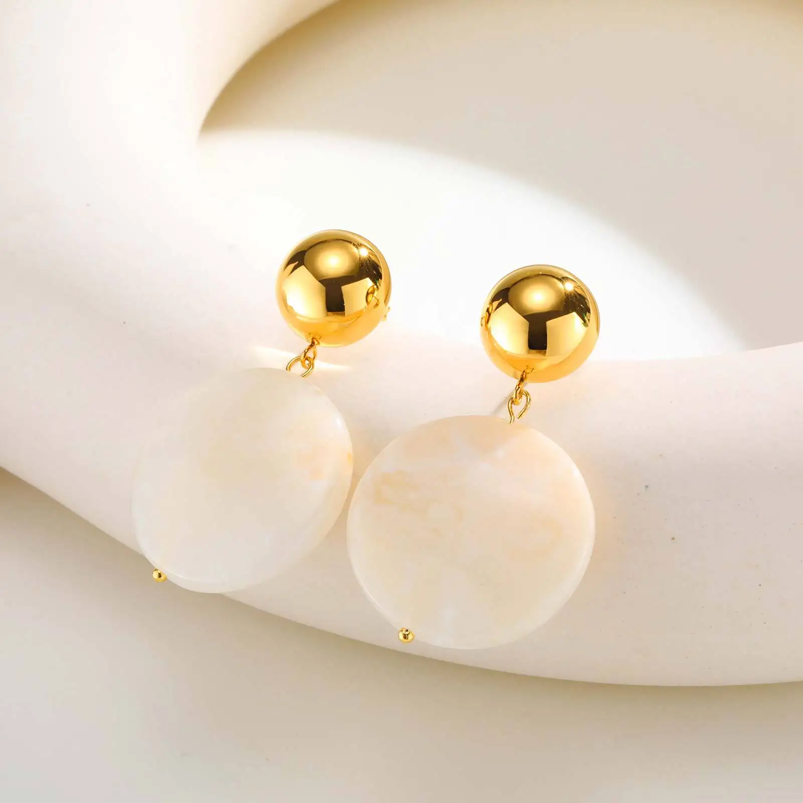 Ins Hot Selling Chunky Geometric Round Resin Drop Earring Stainless Steel Stud Earring for Girls Women