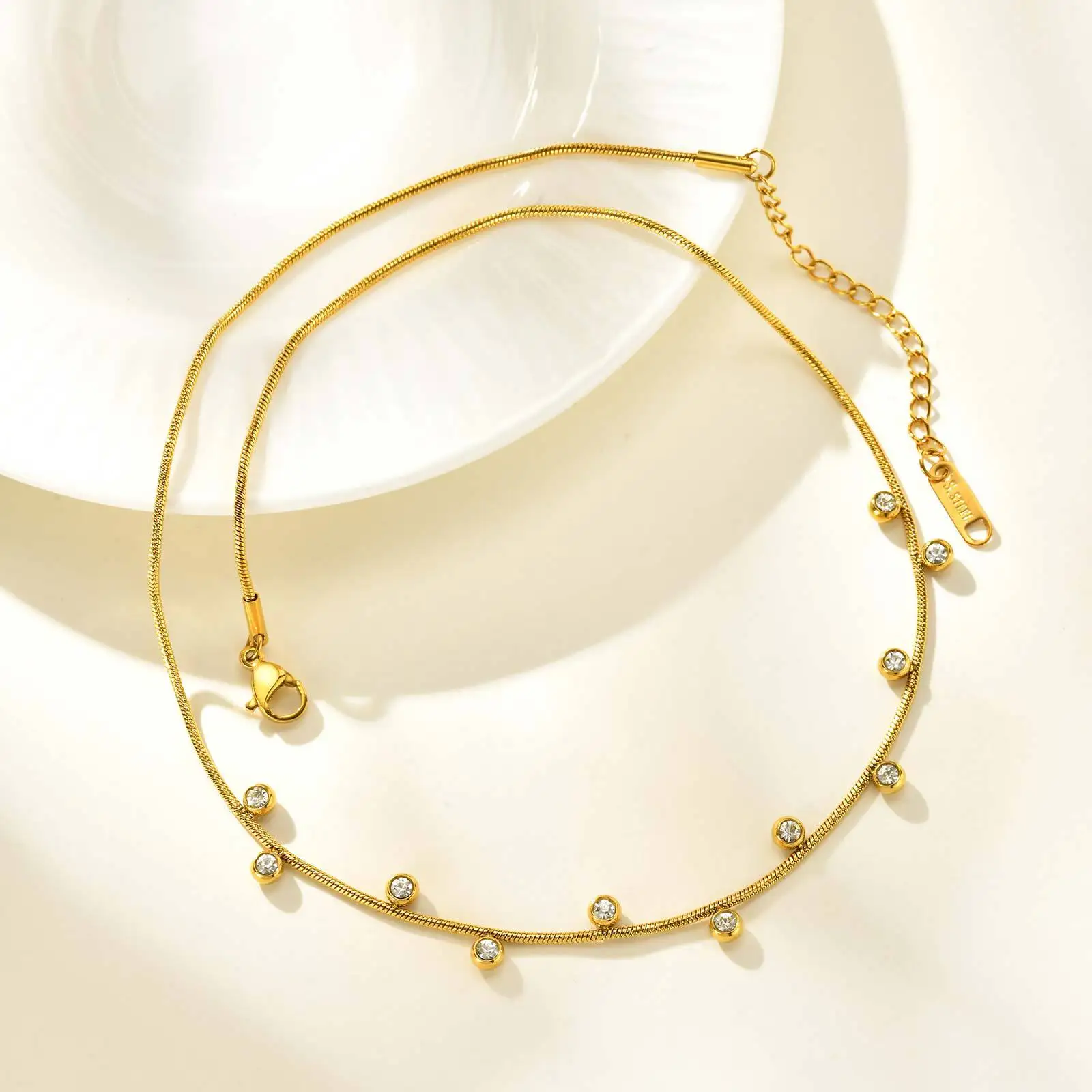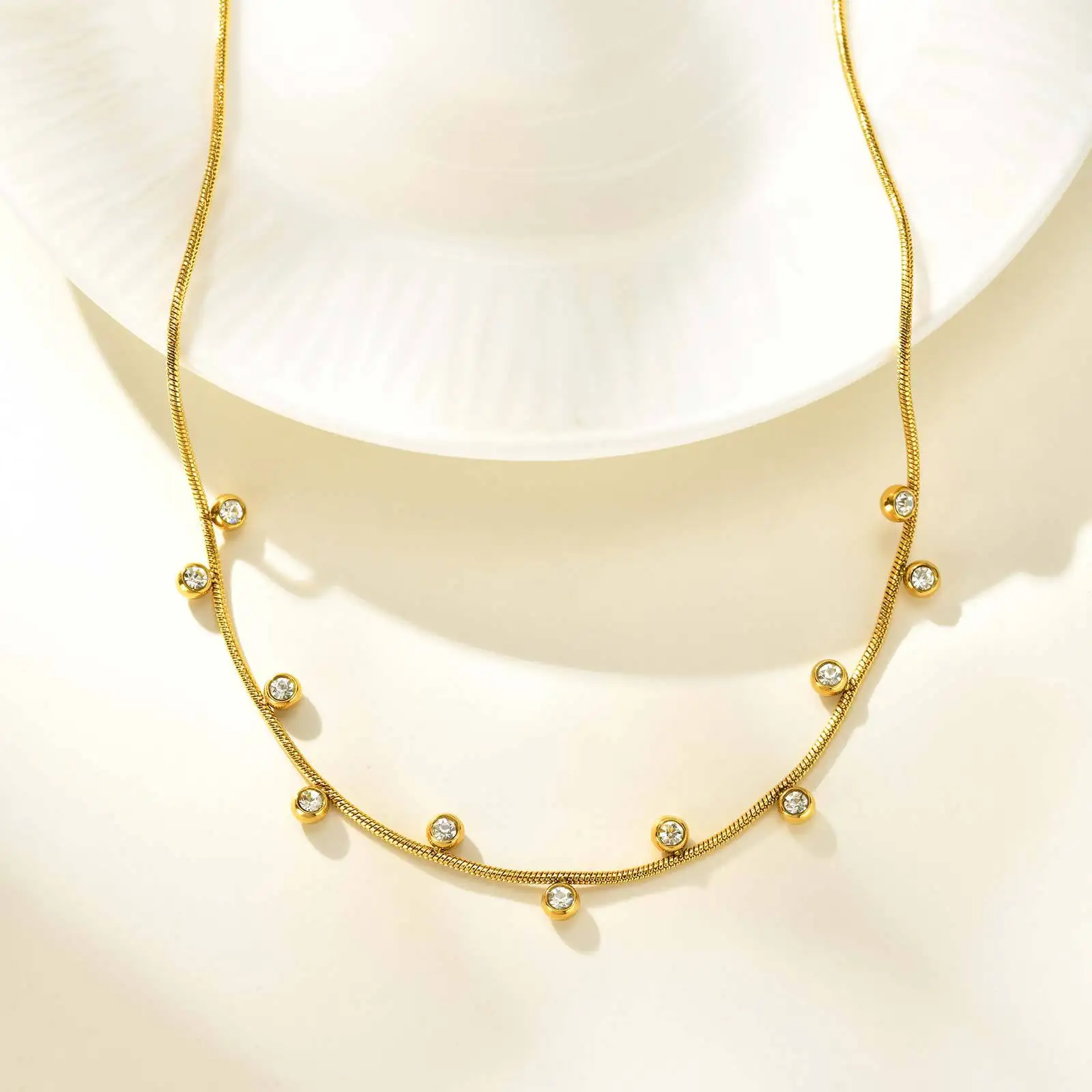 Round White Zircon Inlaid Pendant Necklace Minimalist Gold Plated Round Snake Chain Charm Jewelry Necklaces