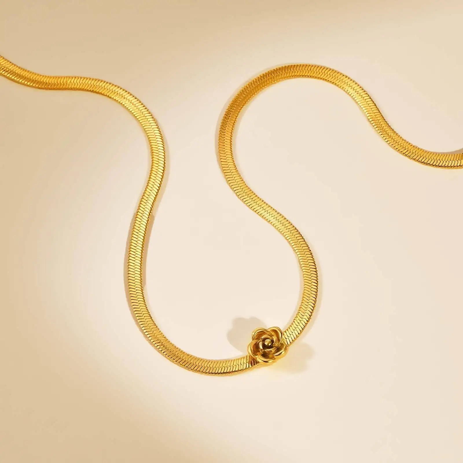Stainless Steel Small Rose Flowers Pendant Necklace 18K Gold Plated Snake Chain Choker Pendant Necklace Jewelry