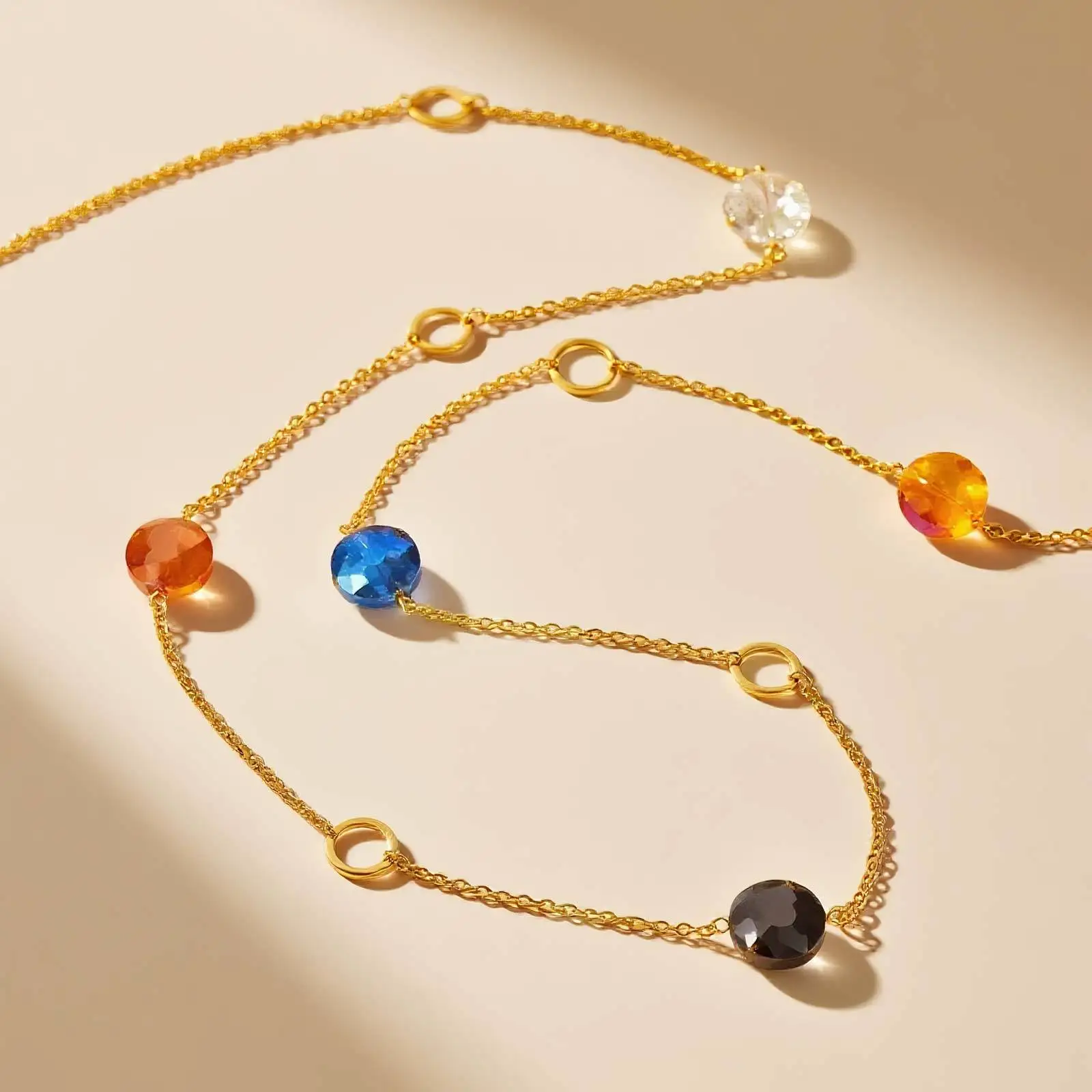 Stainless Steel Round Colorful Acrylic Pendant Necklaces Gold Plated Long Link Chain Stacked Necklace for Women