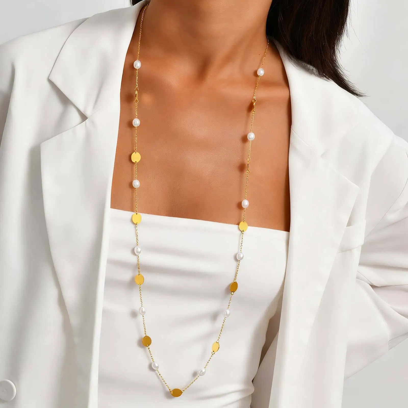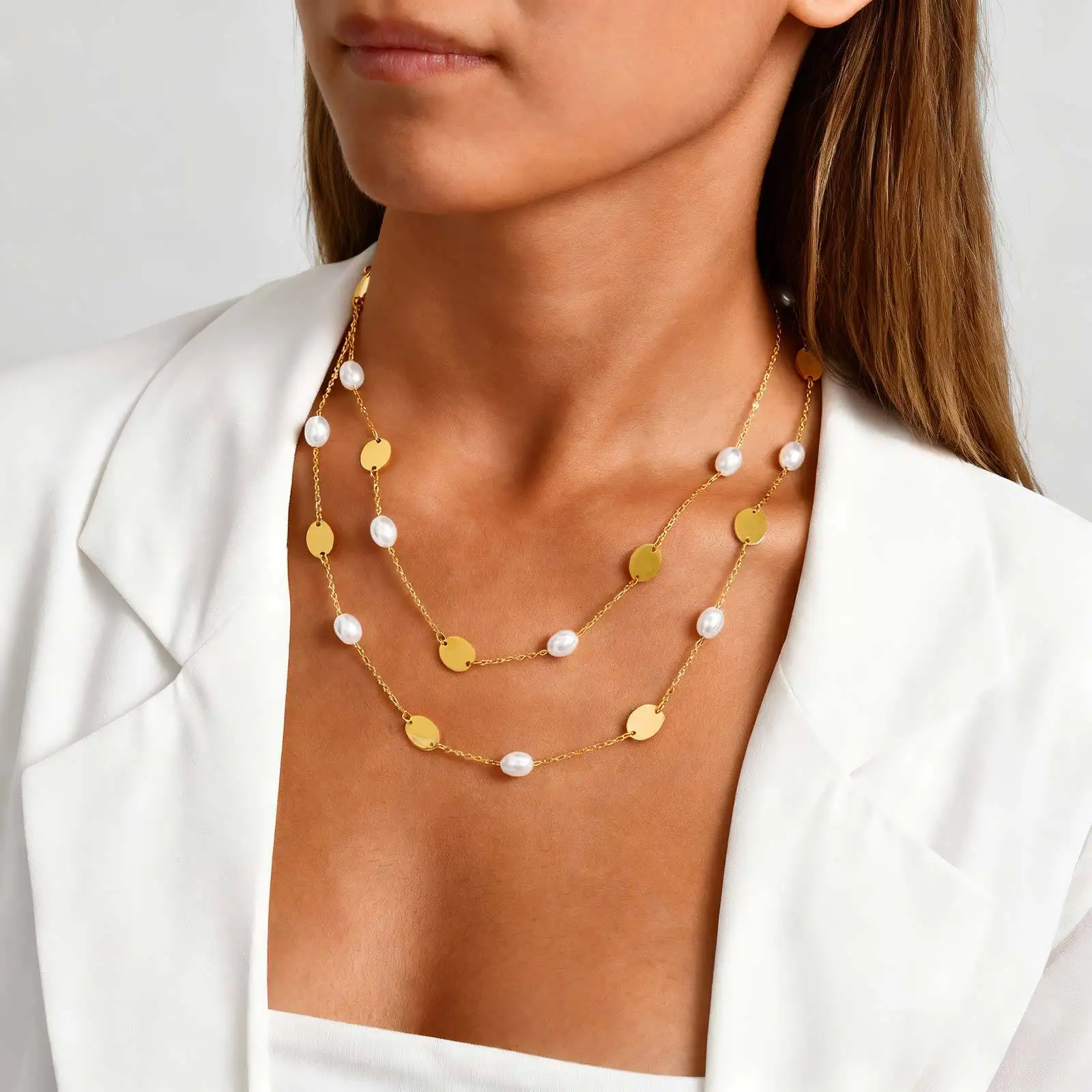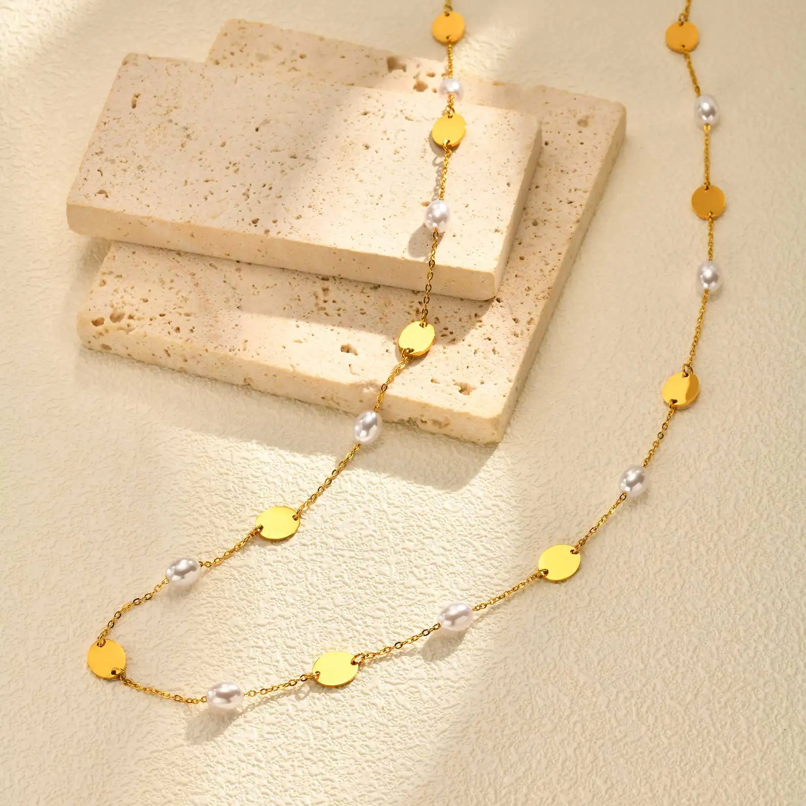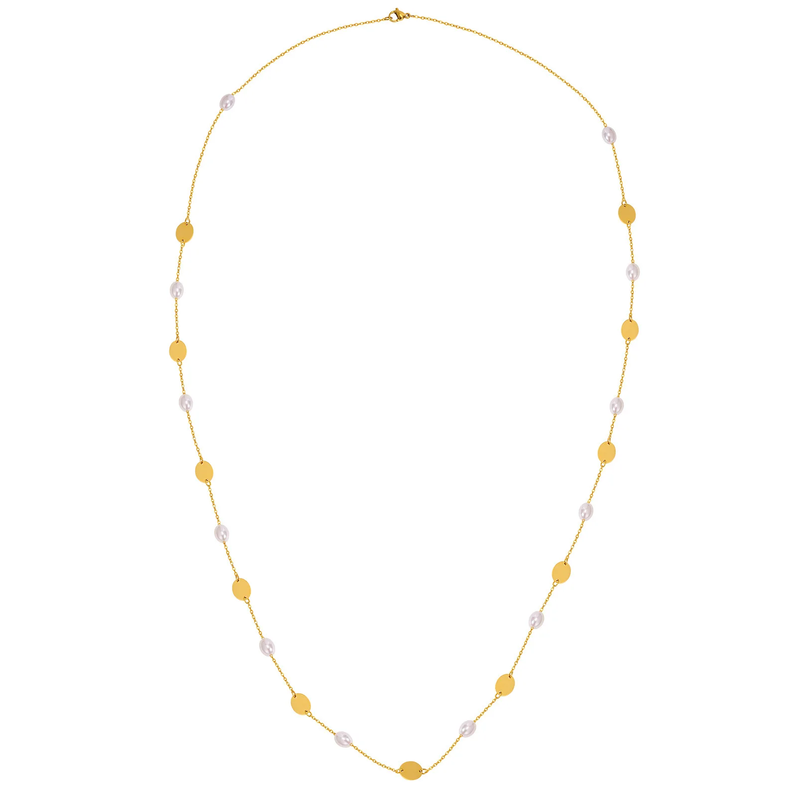 Wholesale Polished Oval Stainless Steel Pendant Necklace Jewelry Pearl Spacer Bead Necklaces