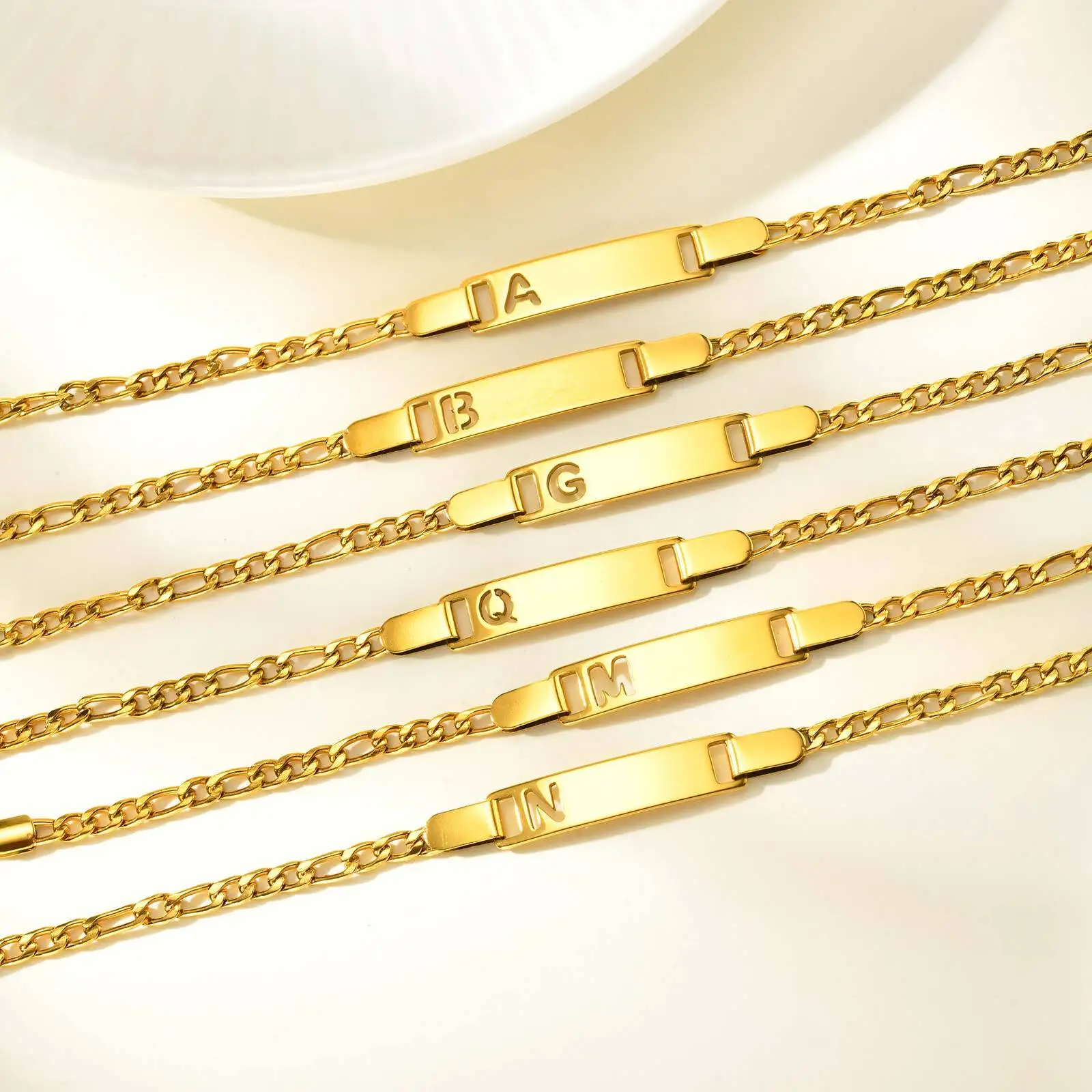 Custom Carving Names Stainless Steel Hollow-out 26 Letters Bracelet Gold Plated Bracelet for Valentine Days