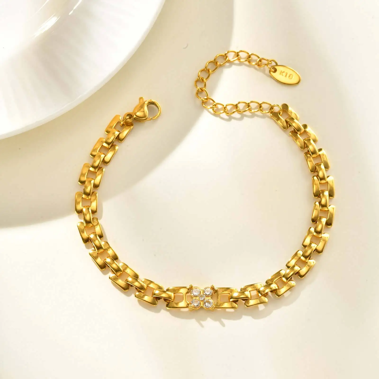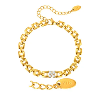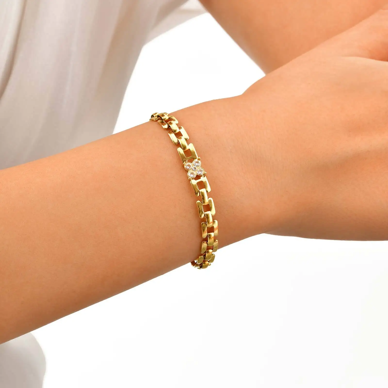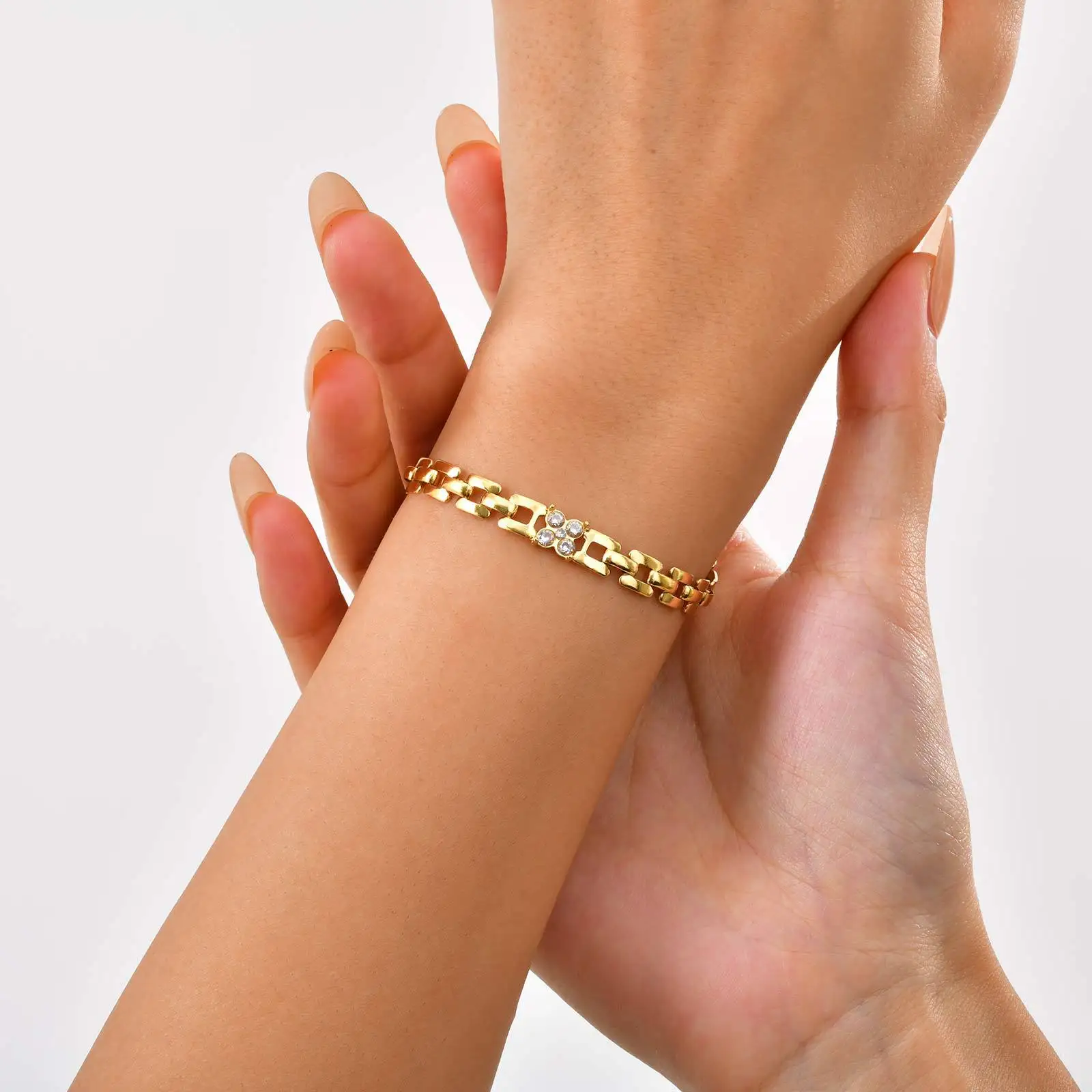 Popular Mini Flower Decor Women Chunky Chain Jewelry Bracelets Cubic Zirconia Watchband Bracelet
