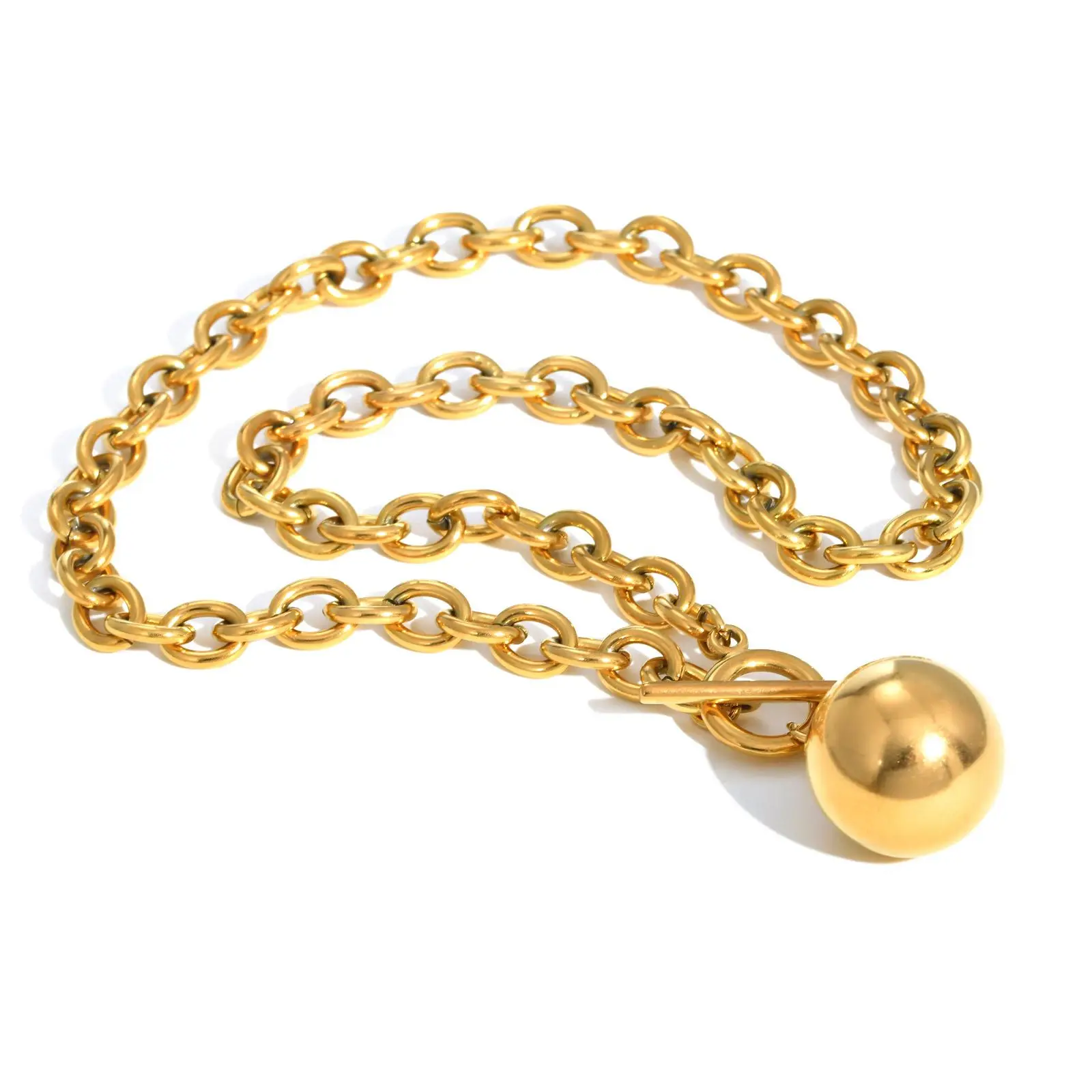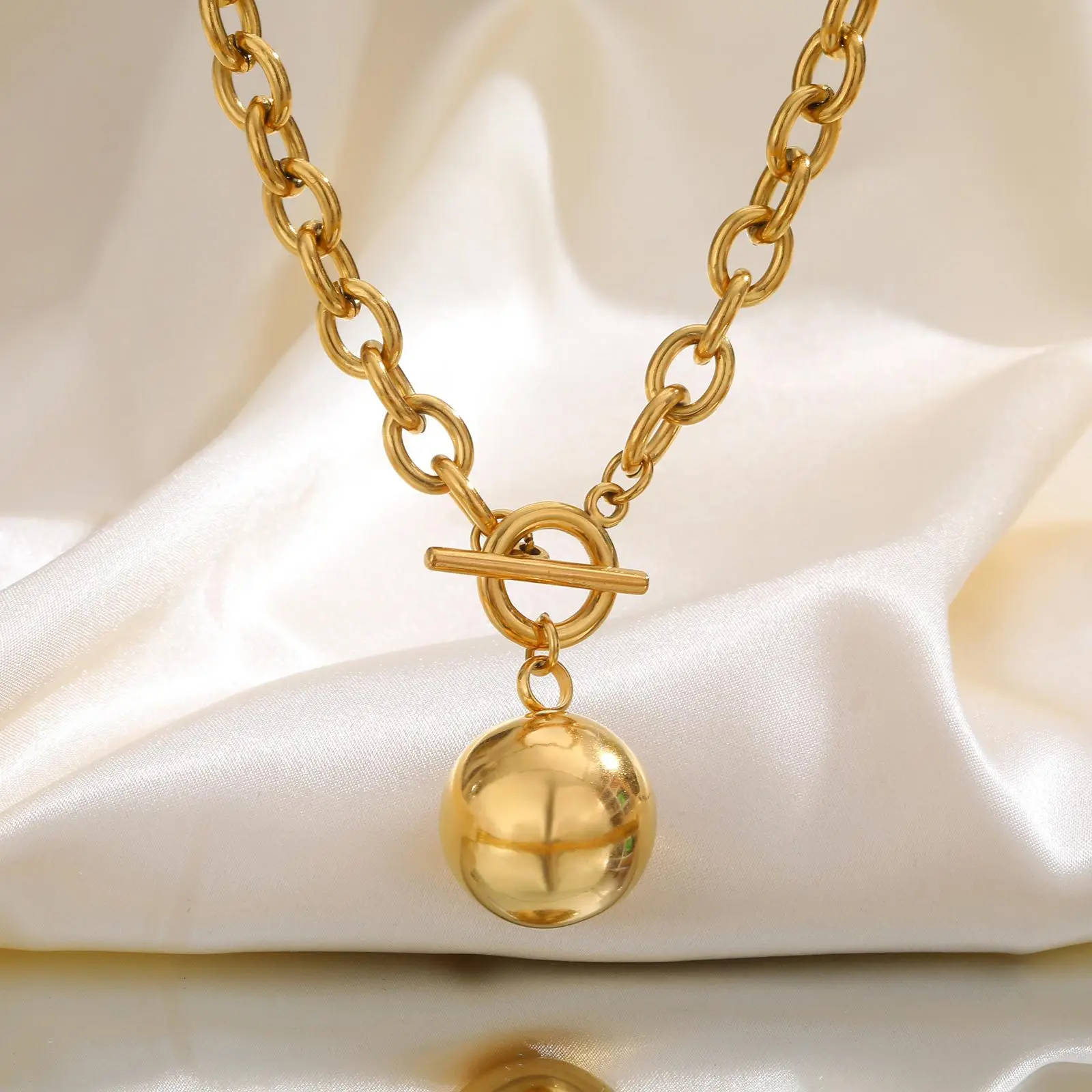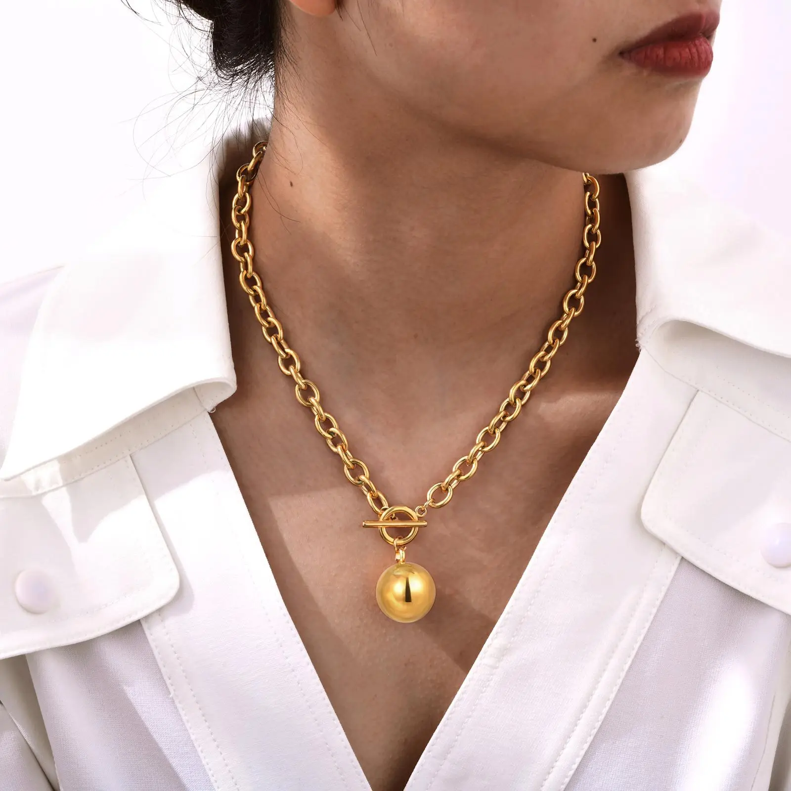 Fashion Jewelry Link Chain Round Ball Pendant Necklaces Stainless Steel Gold Plated OT Buckle Party Necklace With Pendant