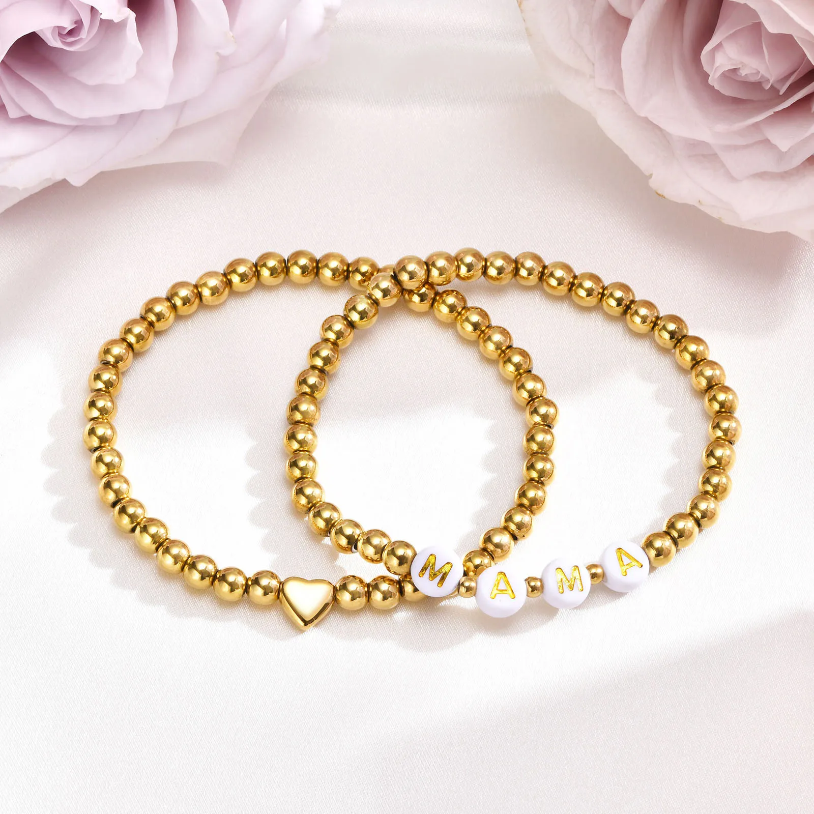 Trendy Jewelry Beaded Bracelets Gold Plated Acrylic Beads Bracelet for Moms Gift for Mom Mothers Day Gift