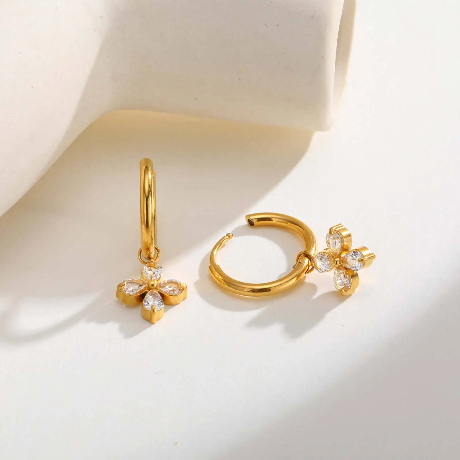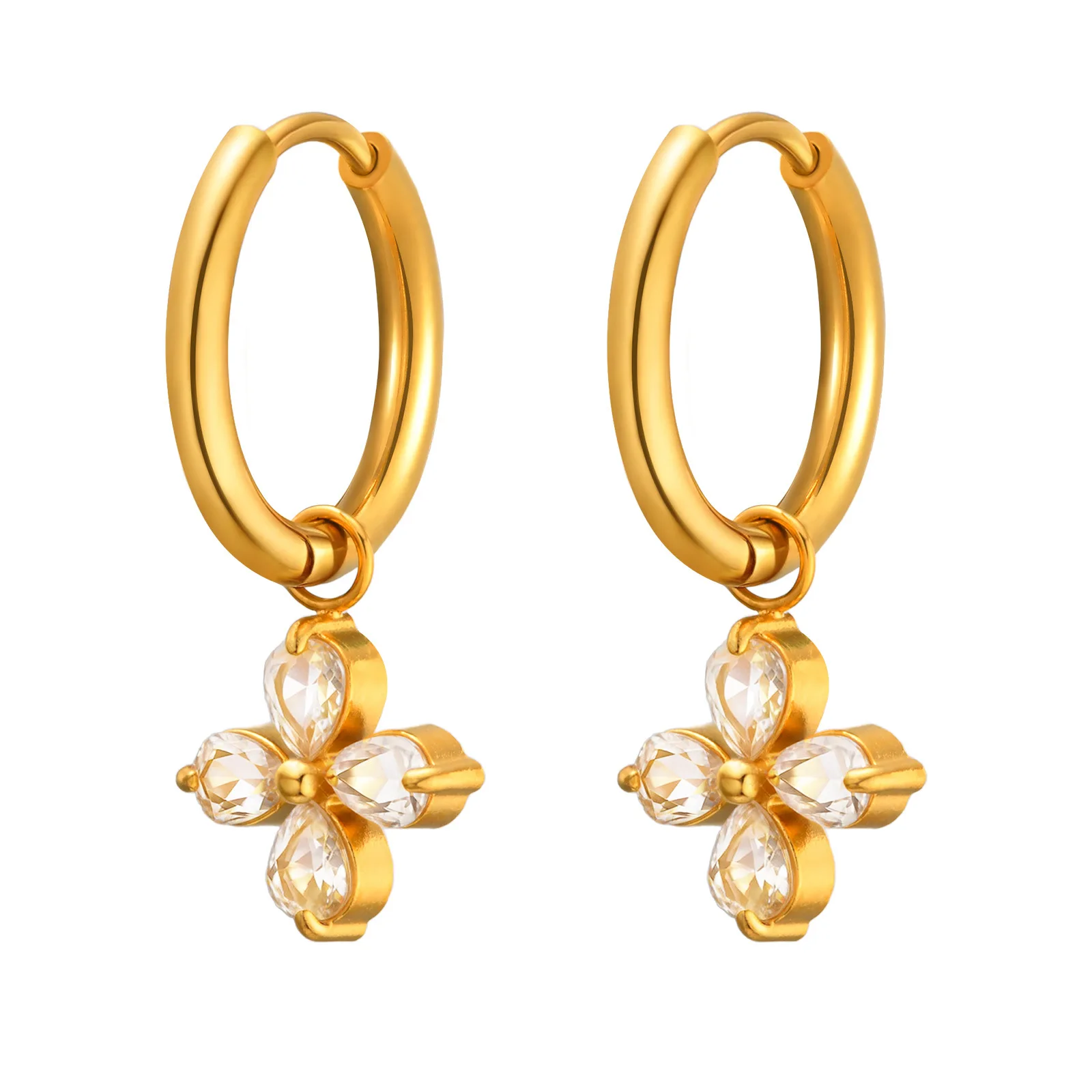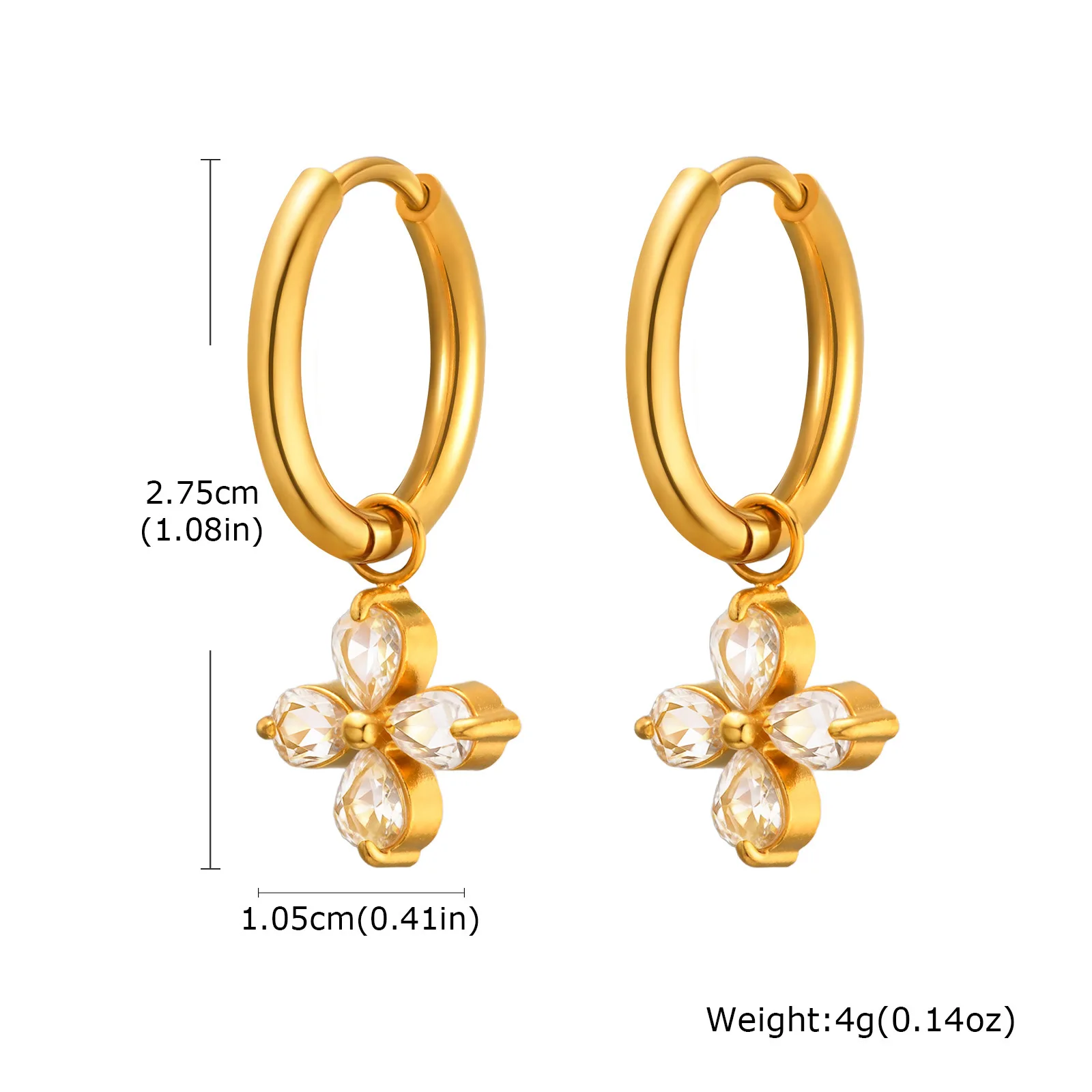 Summer Fine Jewelry Stainless Steel Gold Plated Earrings Women Girls Zircon Four-leaf Flower Drop Earring