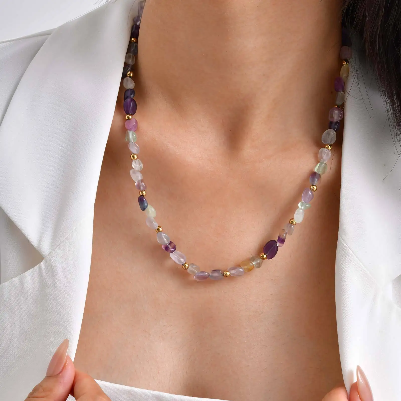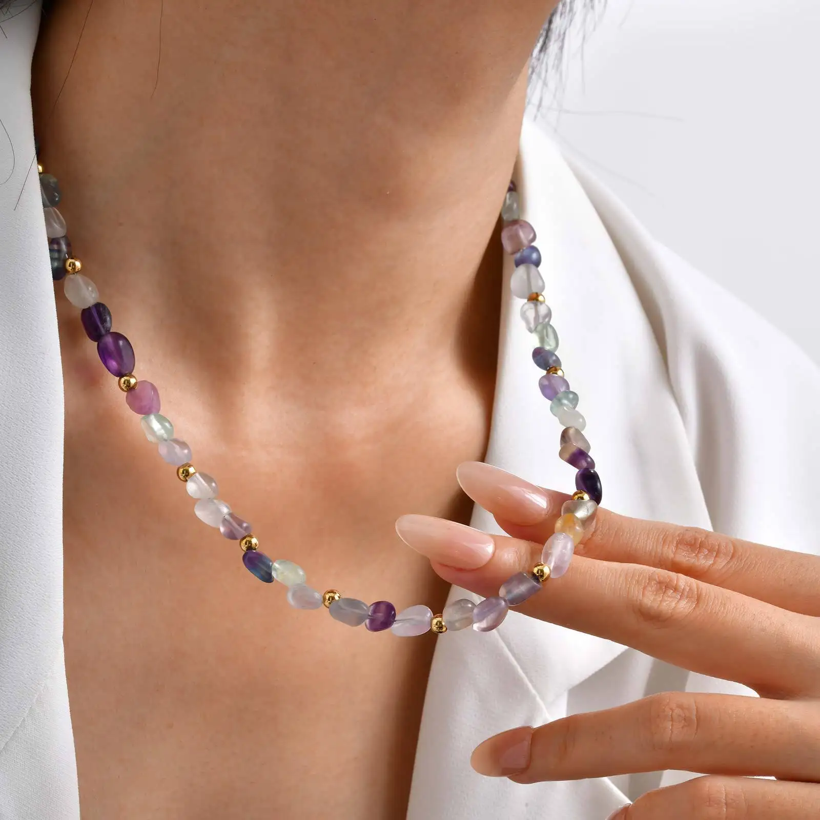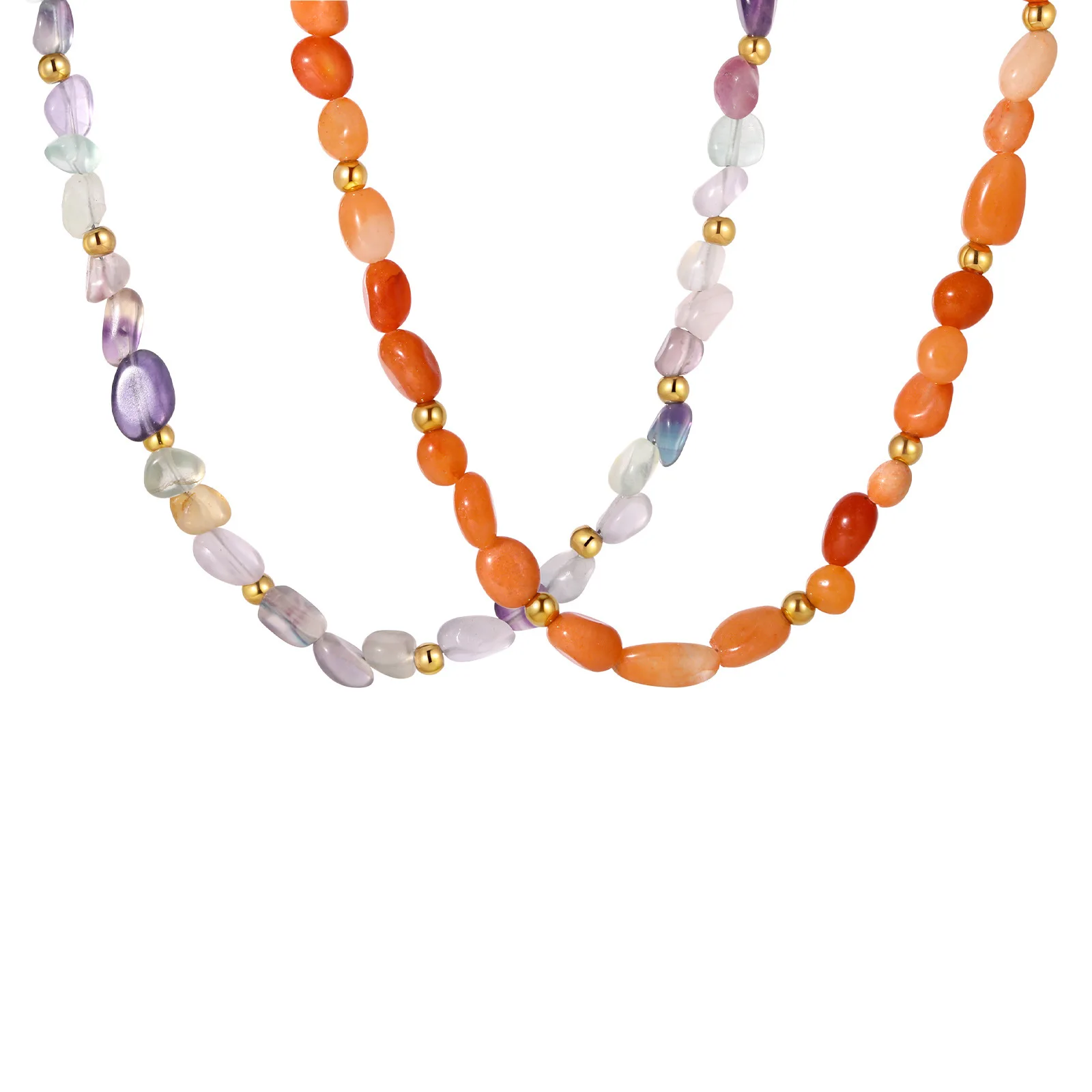 Bohemian Style Irregular Natural Stone Jewelry Beads Necklace Minimalist Chunky Colorful Beaded Necklace
