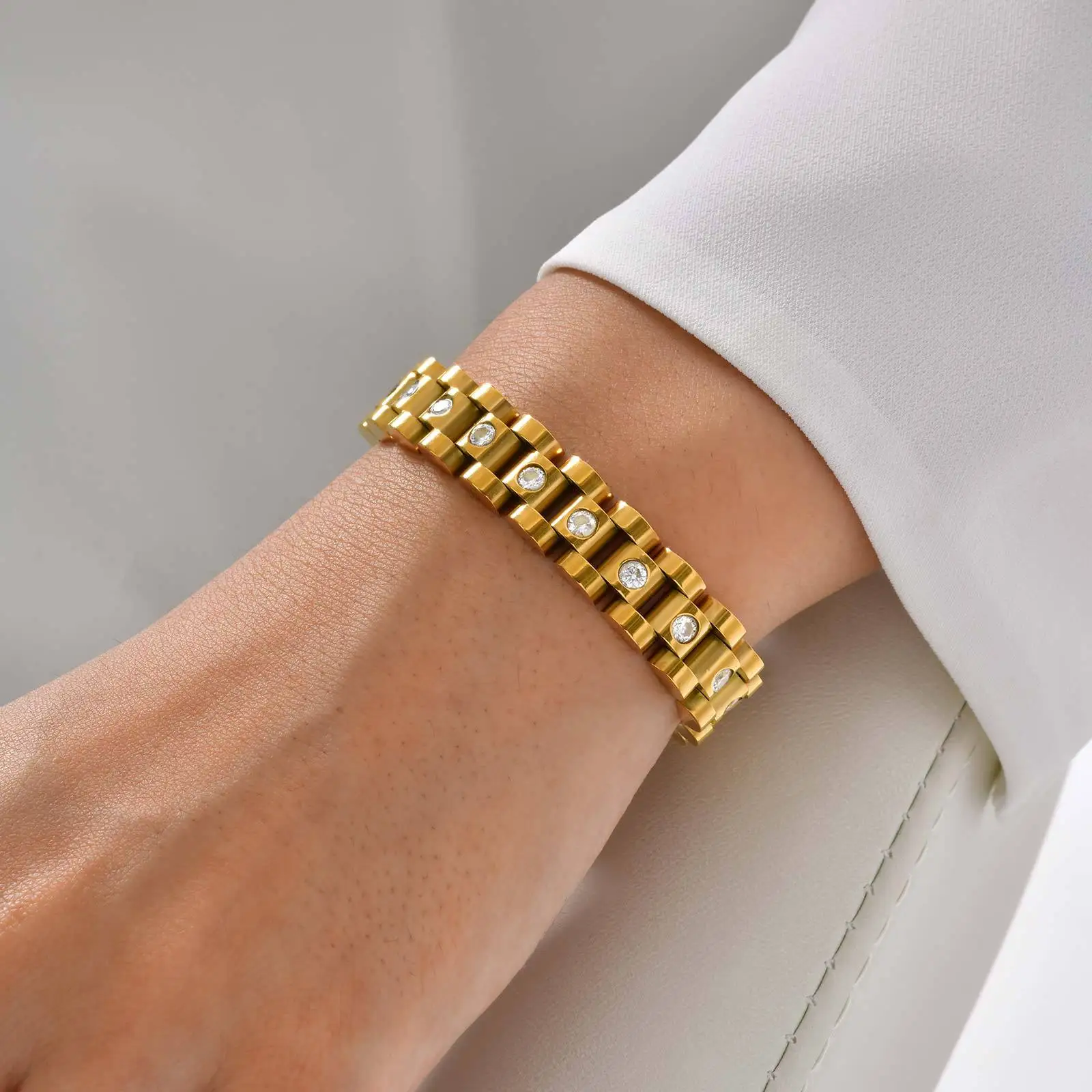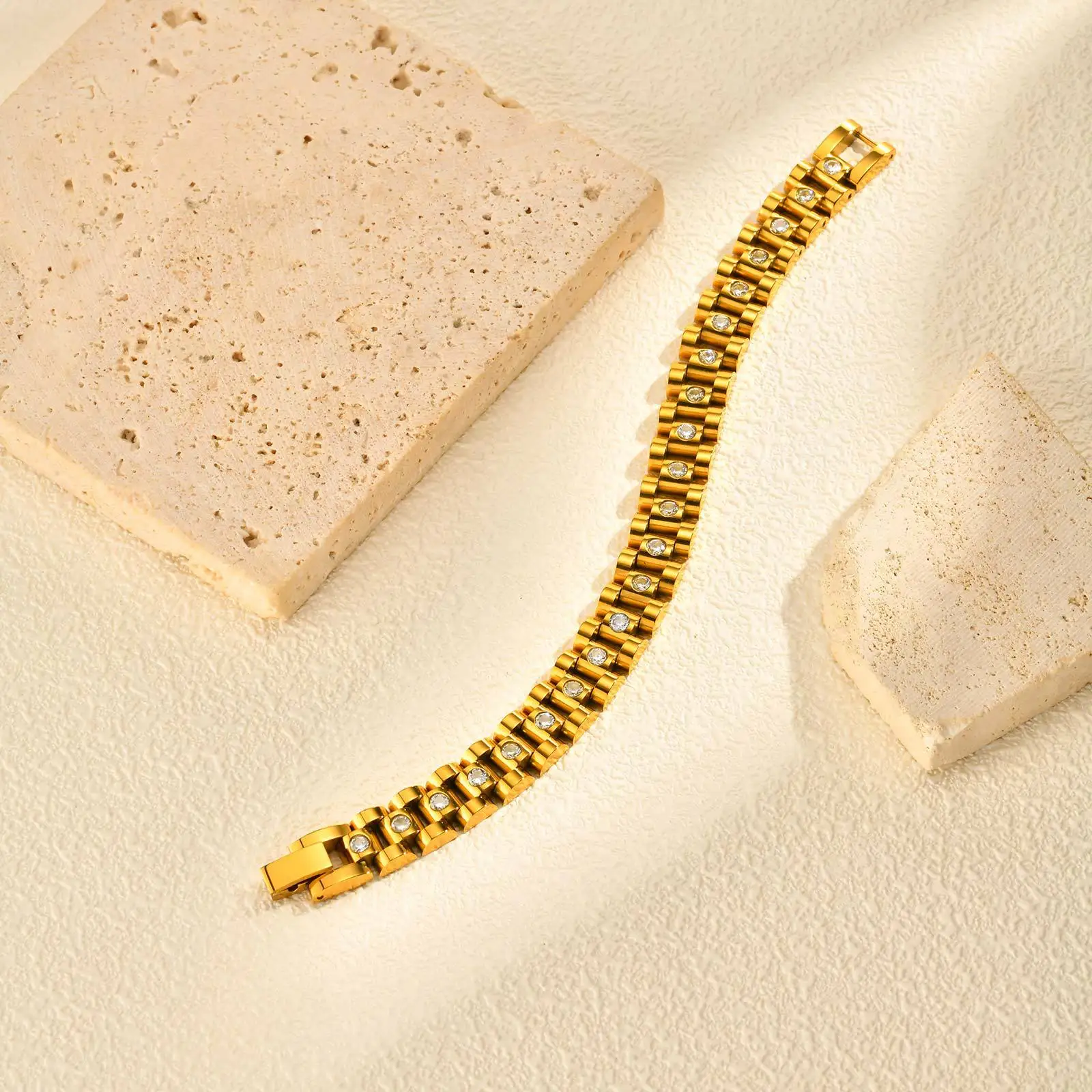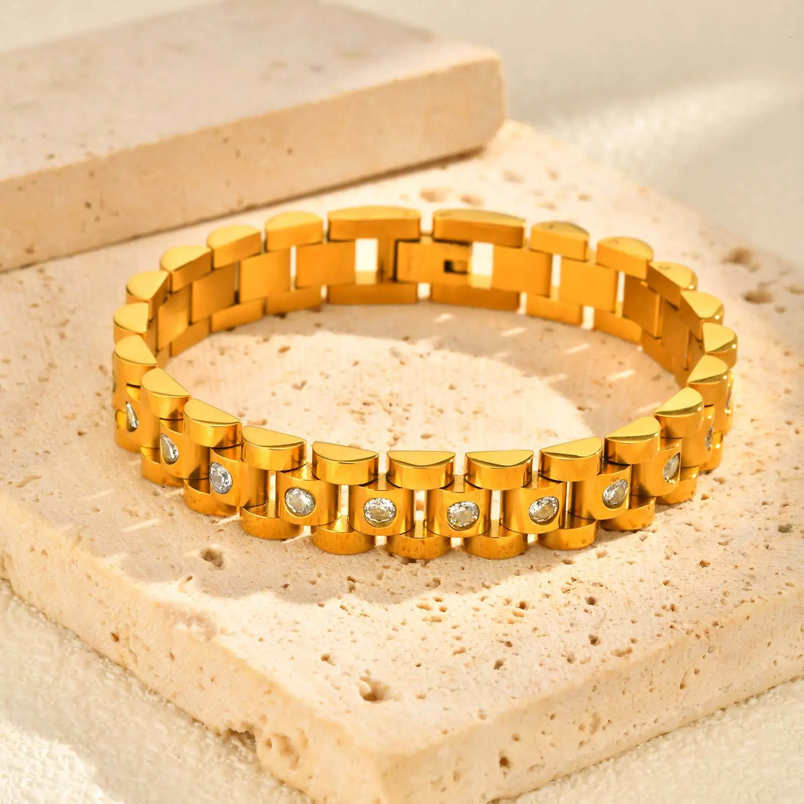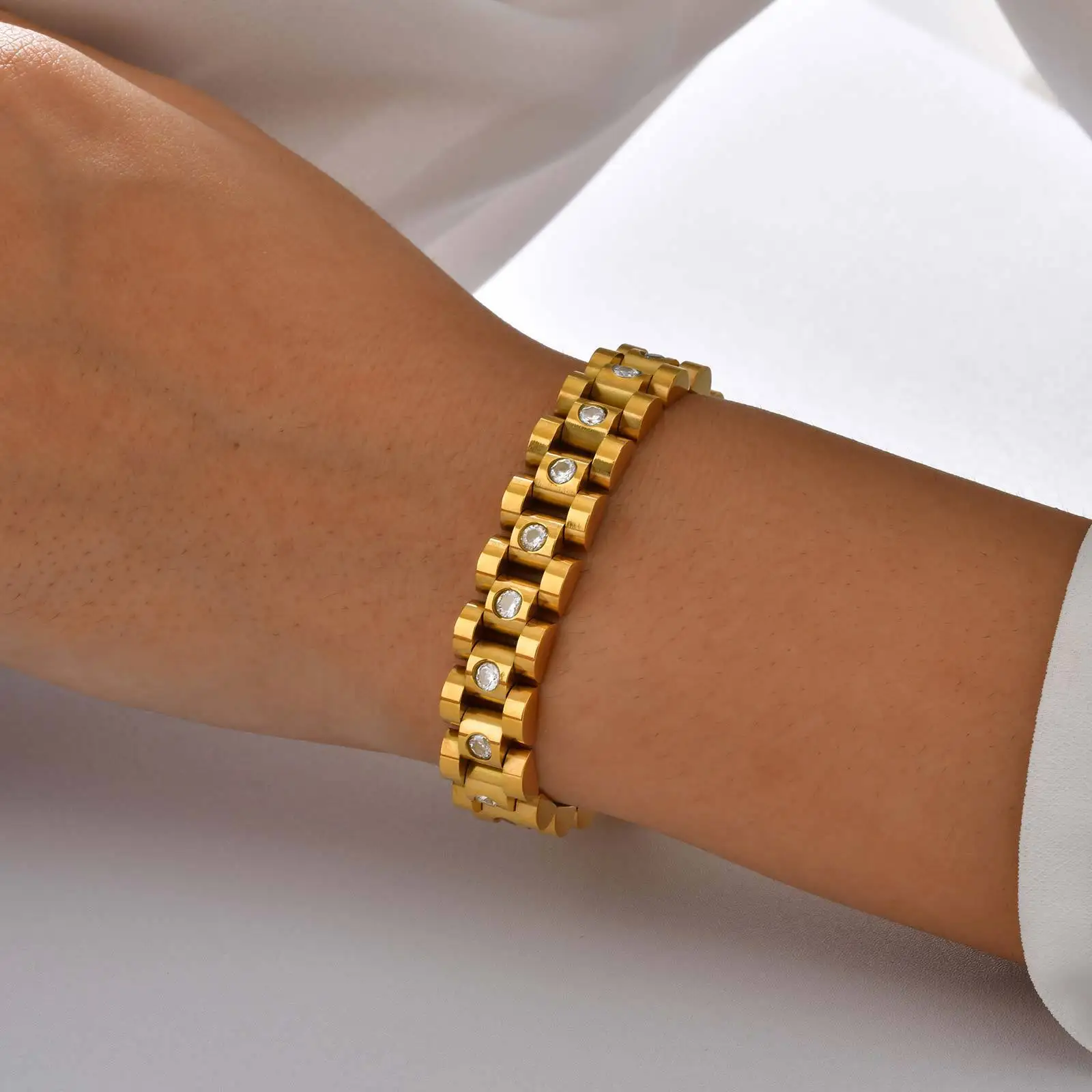 New Trendy Popular Chunky Watch Chain Adjustable Bracelet Men's and Women's Stainless Steel Strap Jewelry Zircon Belt Bracelets