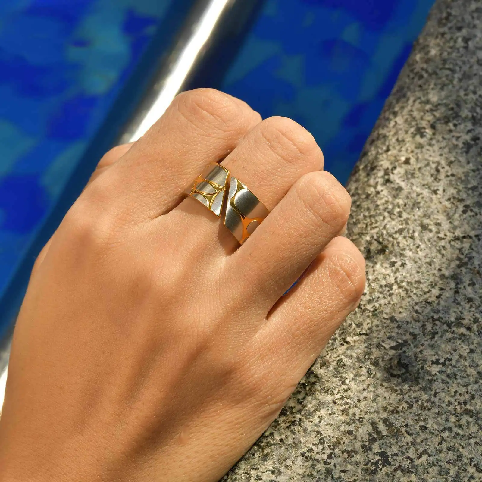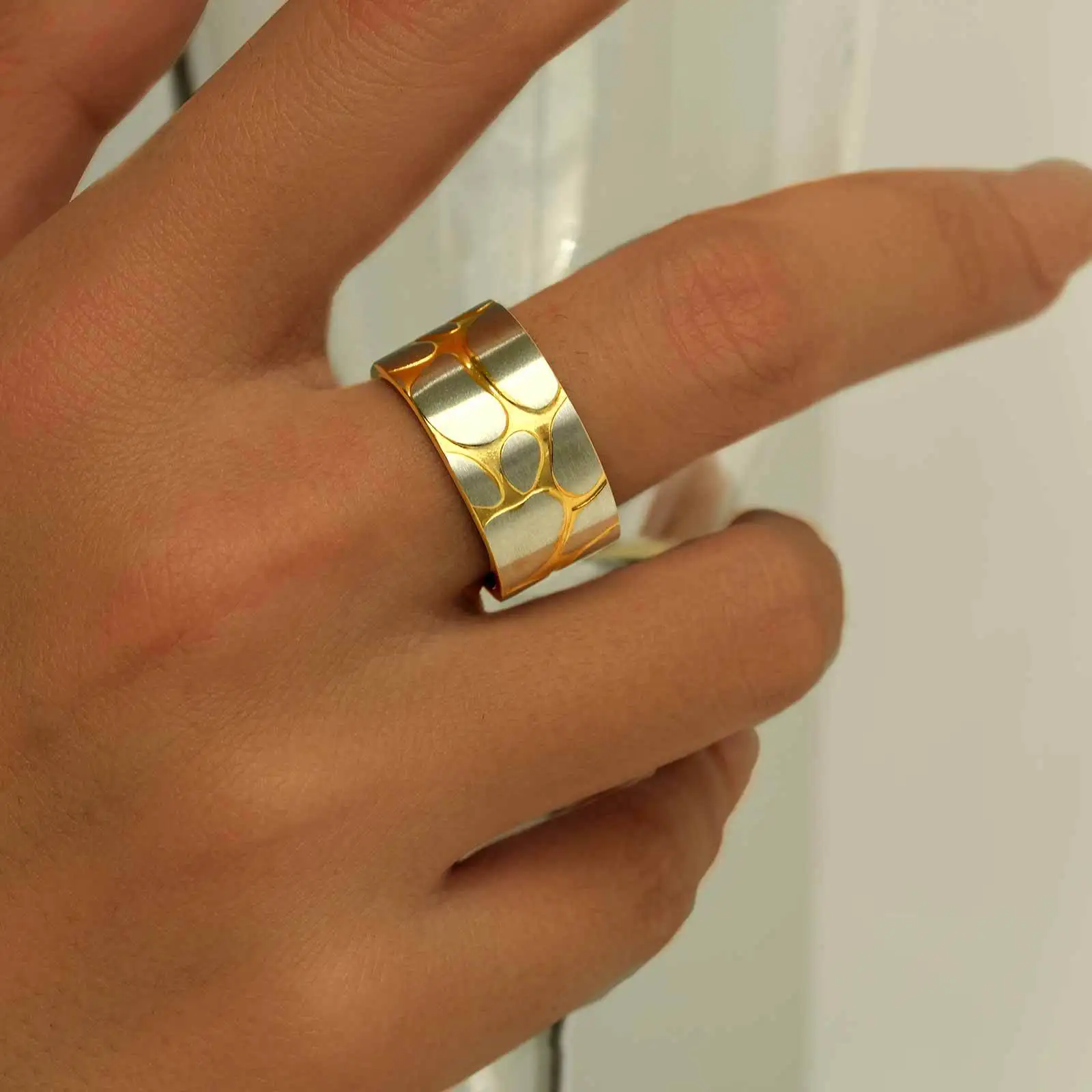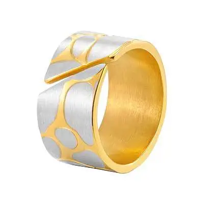 Light Luxury Minimalist Patterned Jewelry Rings Two Tone Stainless Steel Gold Plated Irregular Open Rings