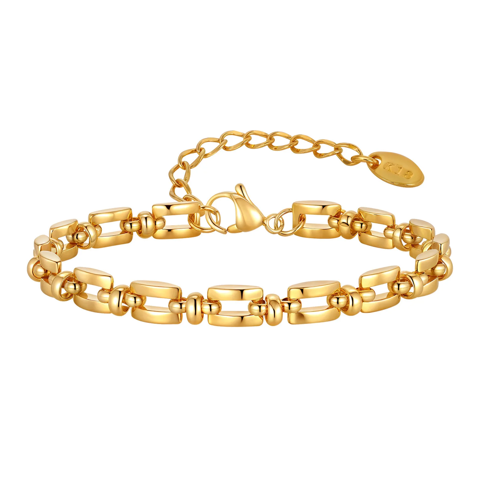 New Trendy Women Jewelry Wide Geometric Pattern Bracelet Stainless Steel Thick Cuban Chain Bracelets for Girls