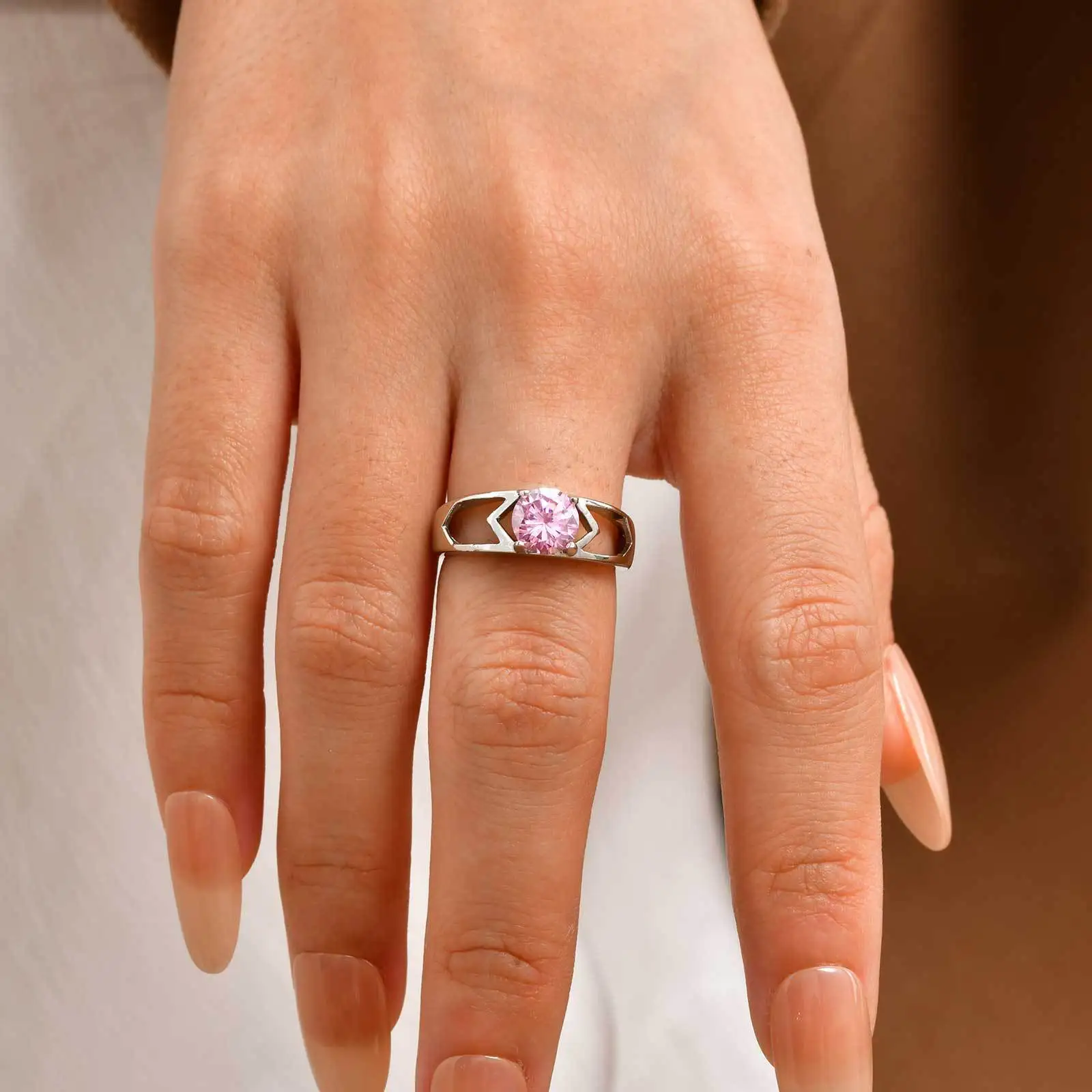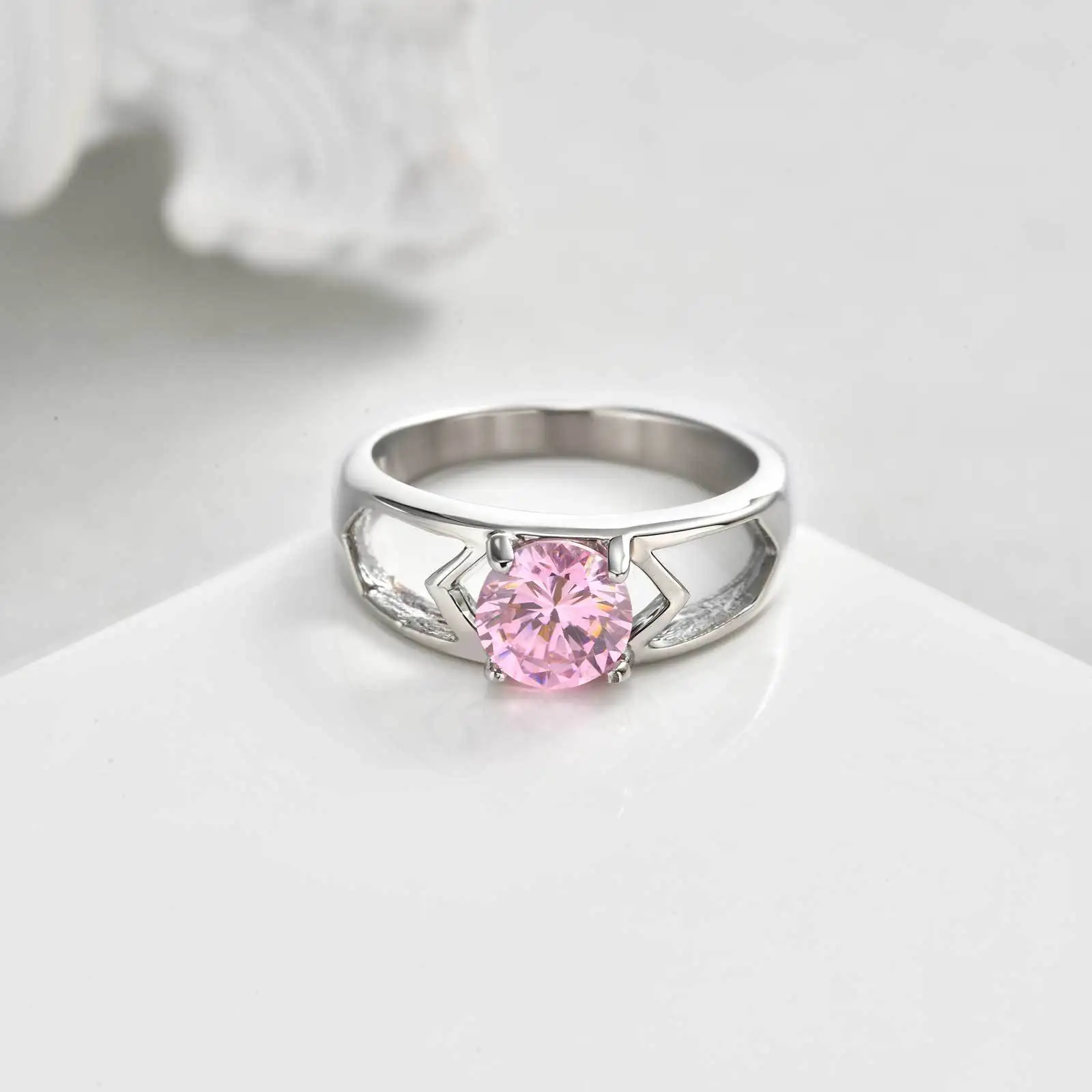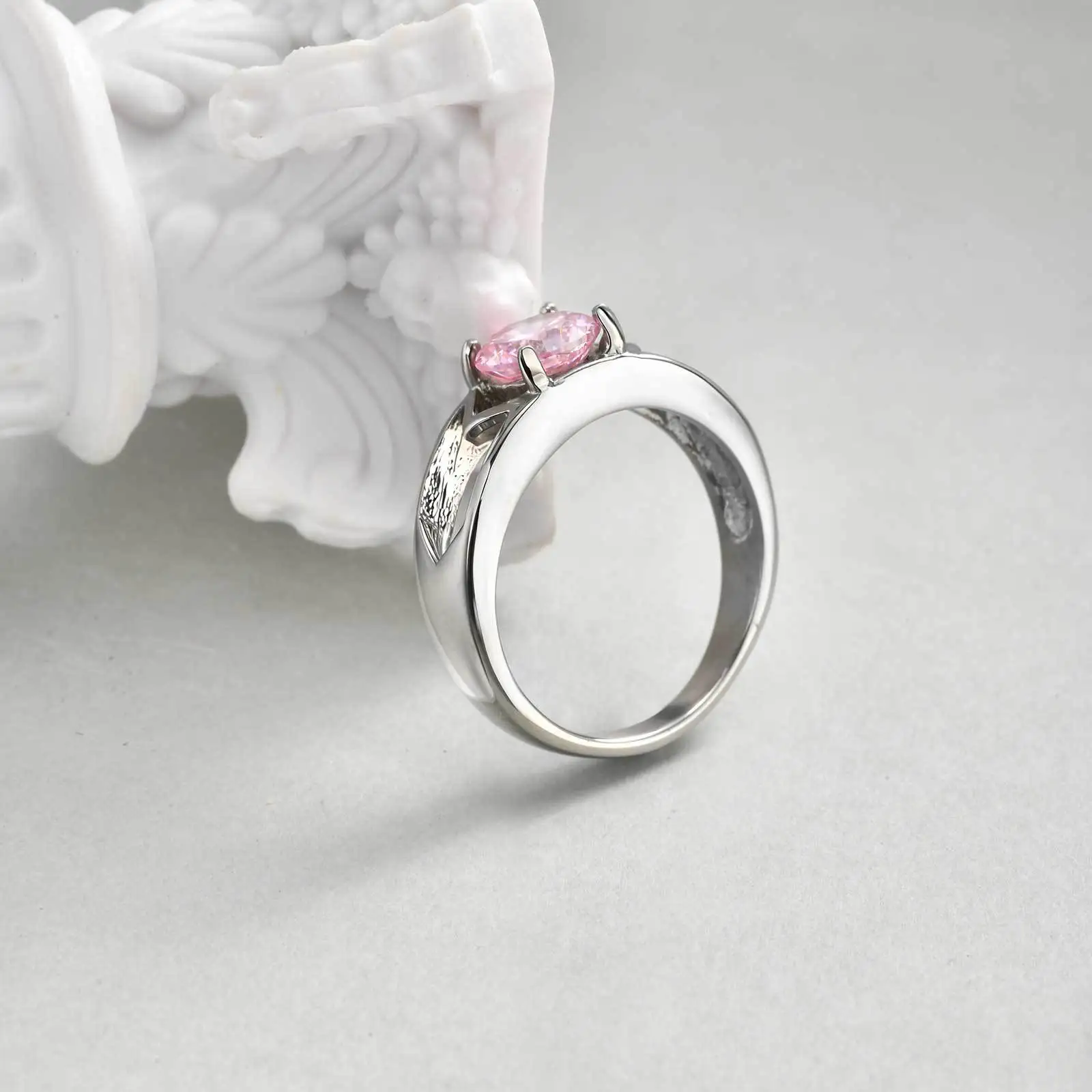Fashion Jewelry Minimalist Design Size 6/7/8 Pink Zircon Ring Single Stone Designs Ring for Women