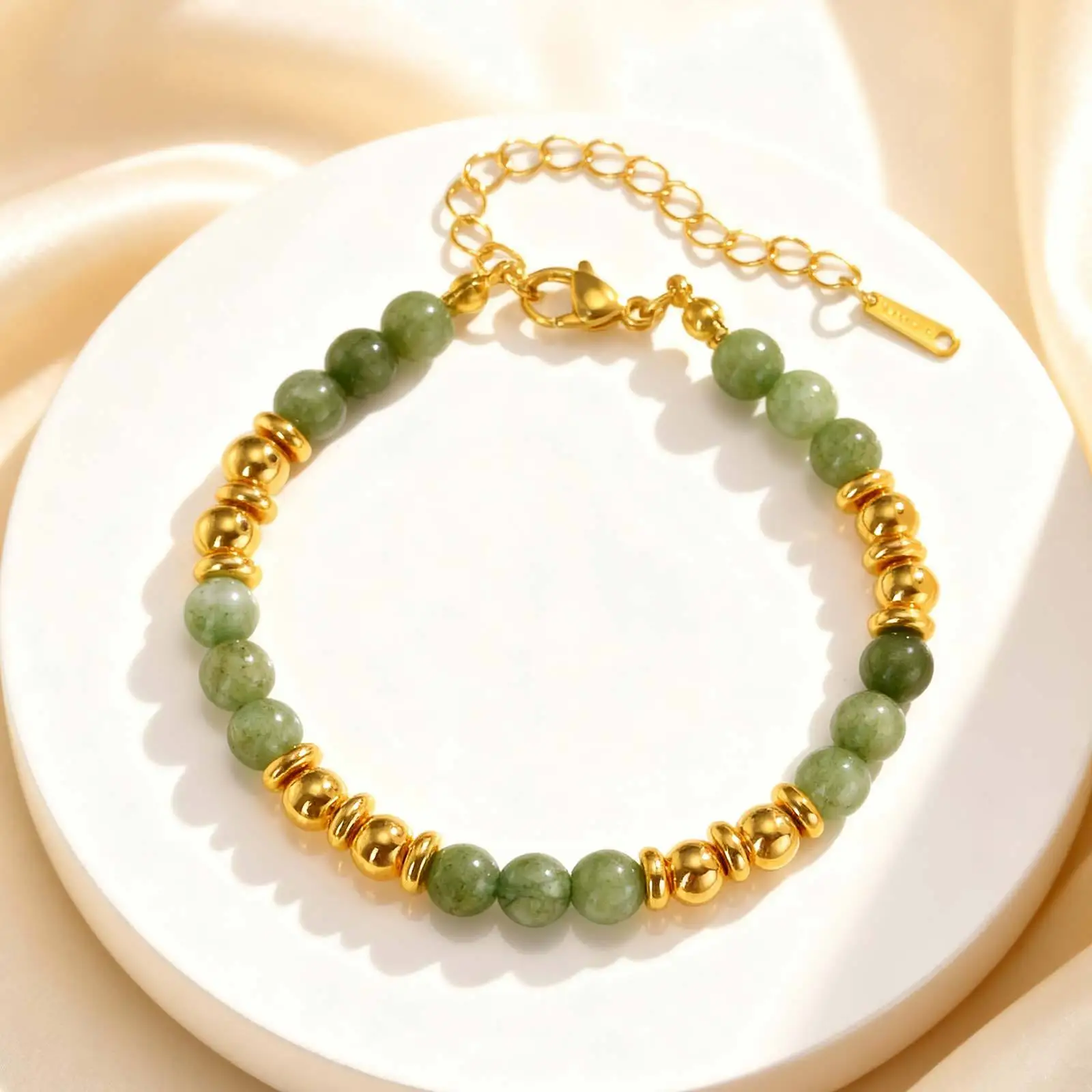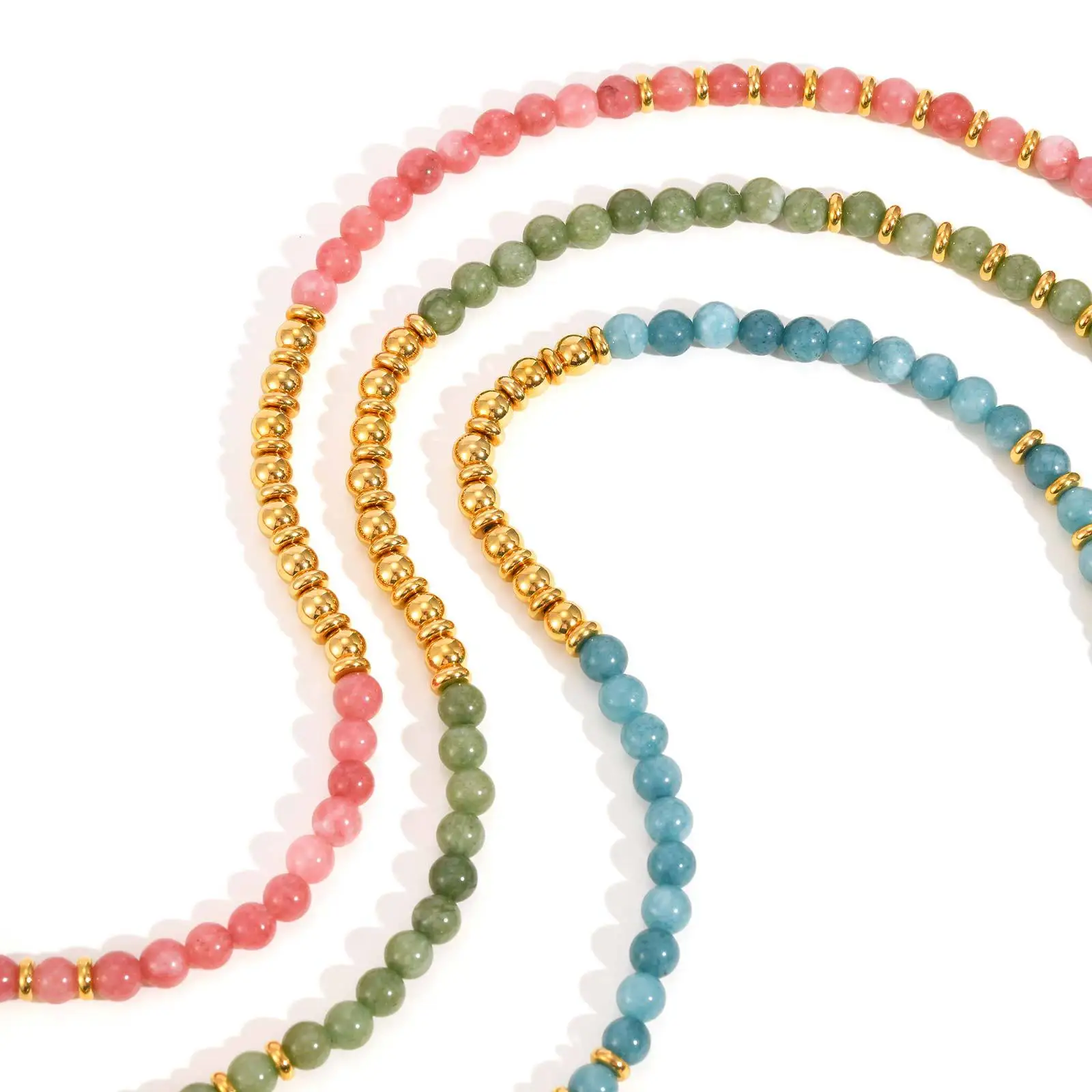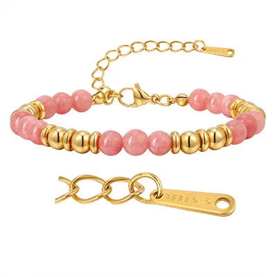 New Arrival Colorful Stone Bead Bracelet Stainless Steel Gold Plated Beads Bracelets for Women Girls