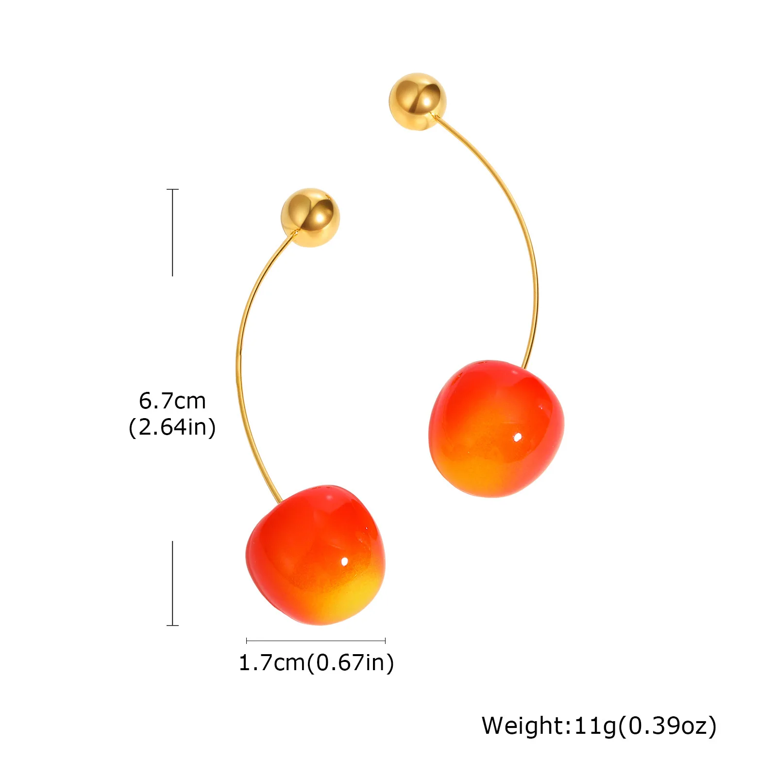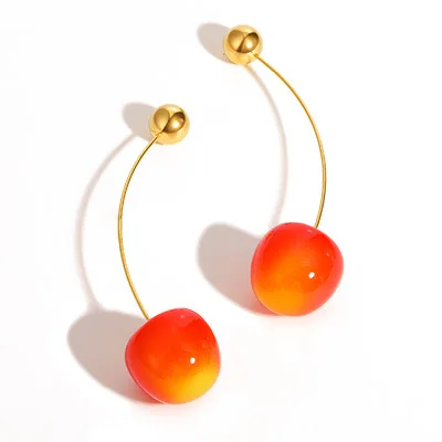 Fashion Red Acrylic Cherry Design Drop Earrings Stainless Steel Earring Fruit Jewelry Accessories for Women