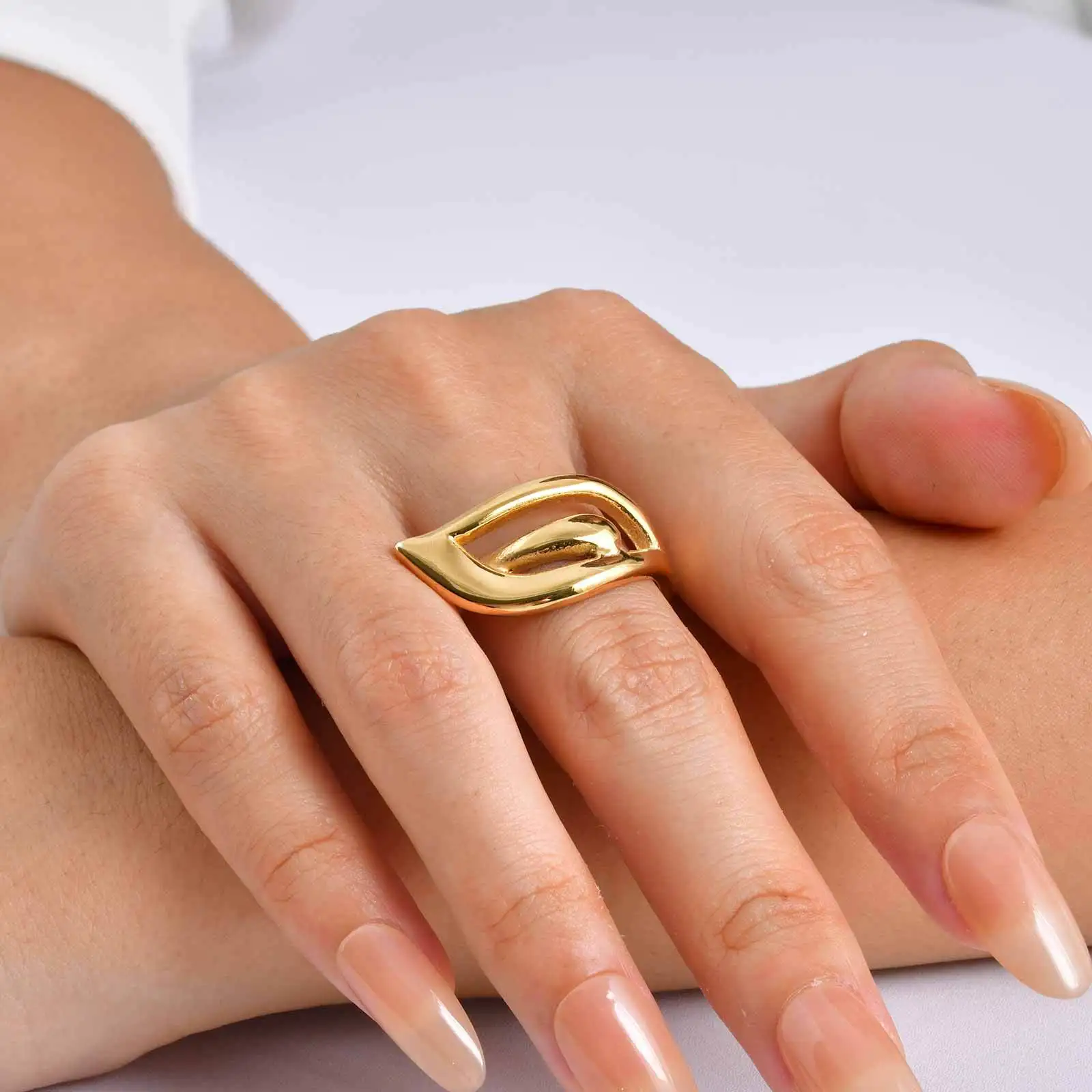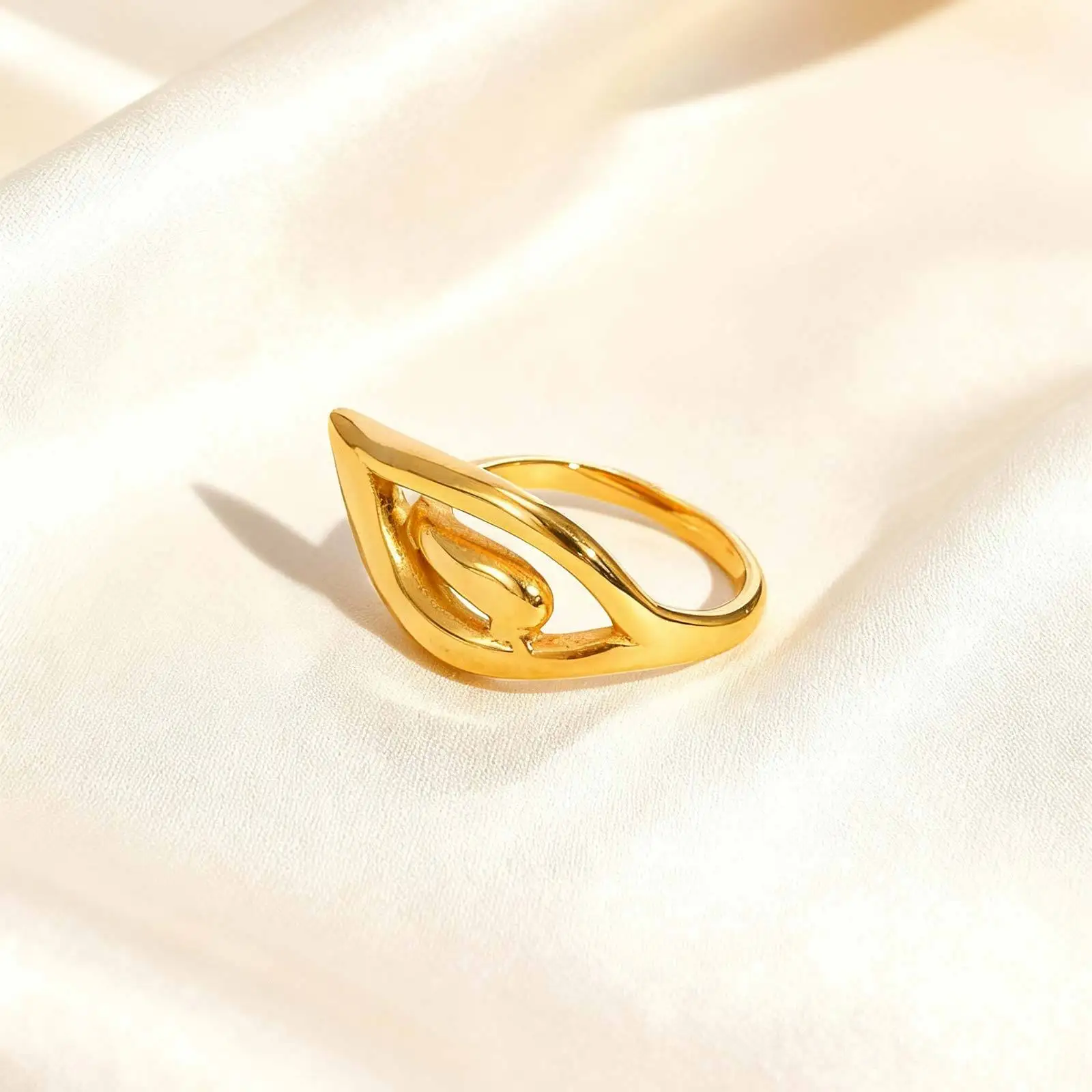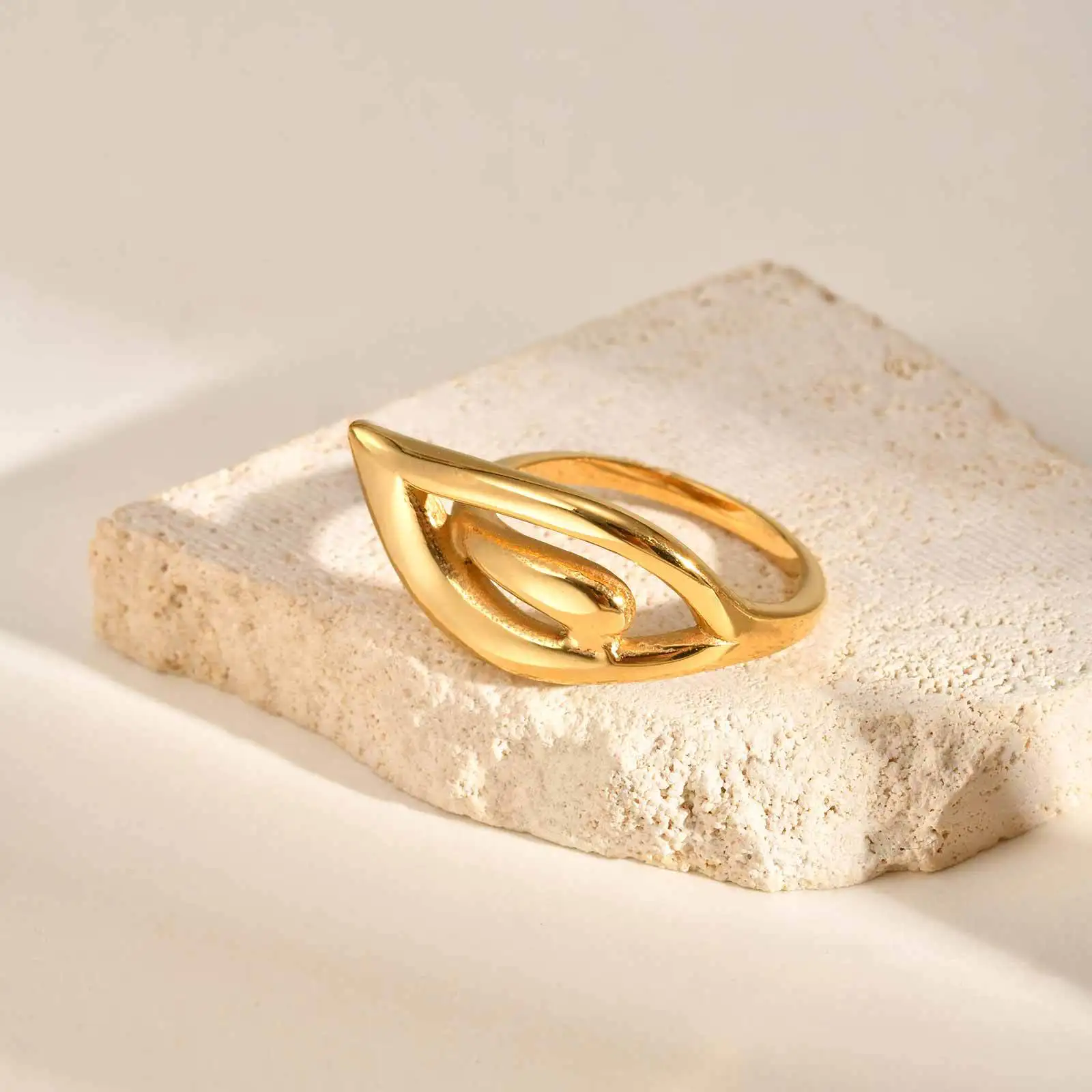 New Arrival Jewelry 18k Gold Plated Chunky Wing Ring Leaf Shape Finger Ring for Girls Women