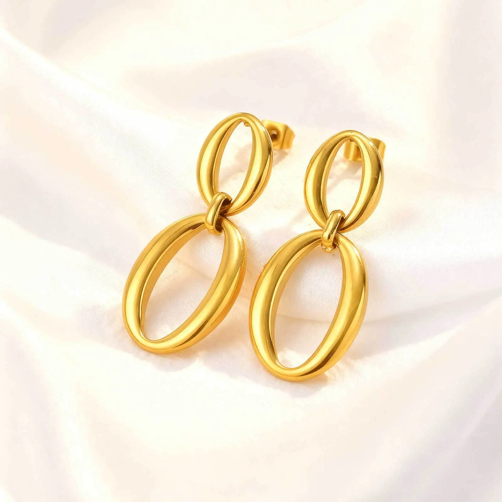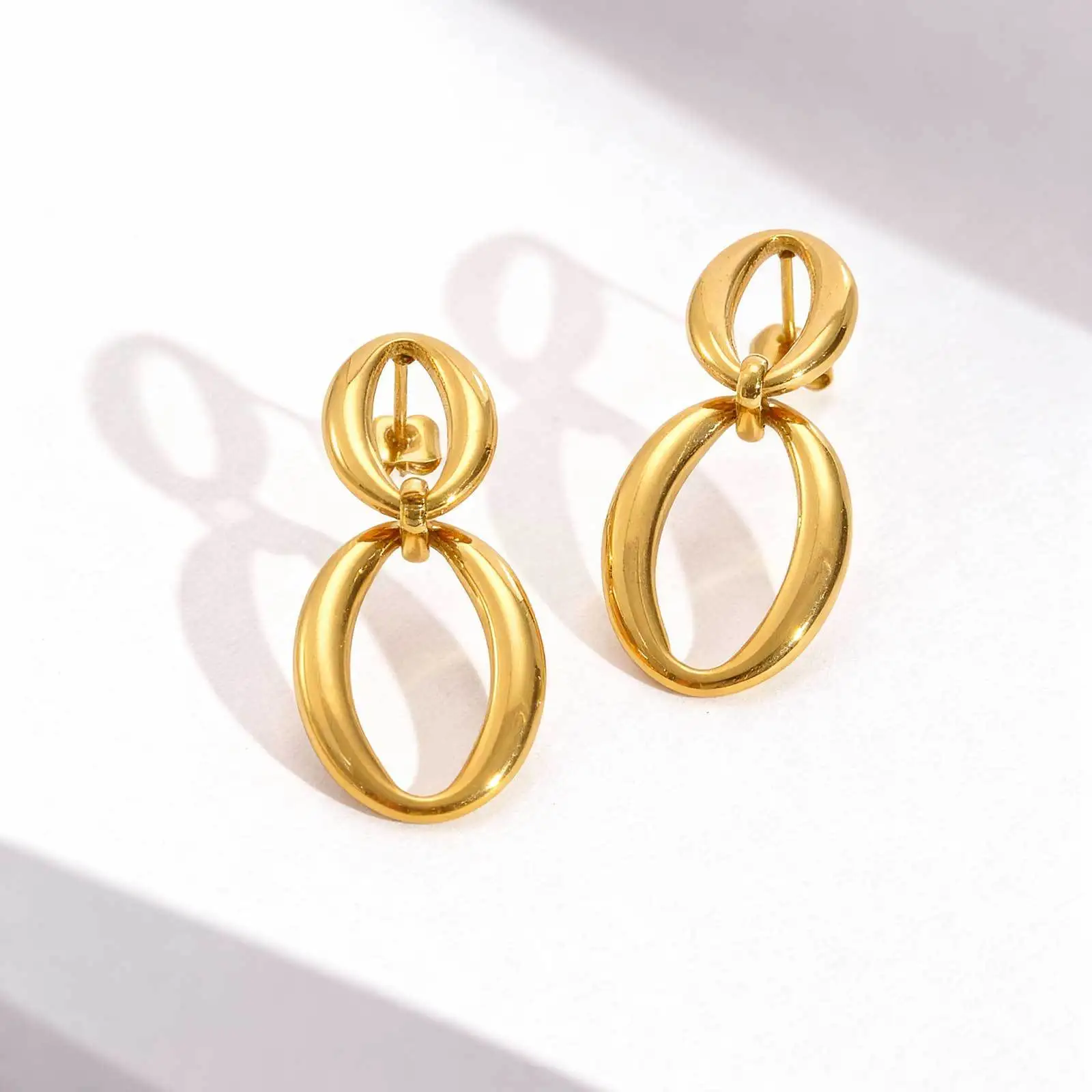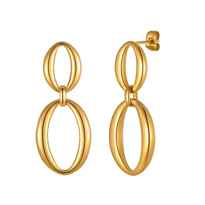 Minimalist Design Women's Oval Shaped Pendant Charm Earrings Stainless Steel Gold Plated Jewelry Pendant Earrings