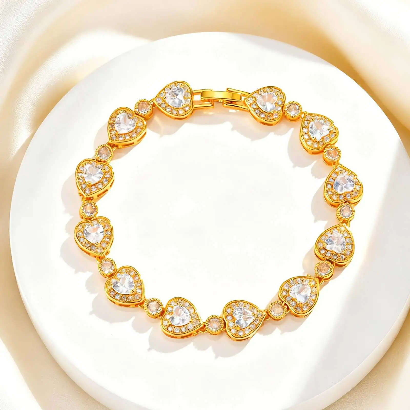 Luxury Women's Heart Flower Geometric Pattern Bracelet Stainless Steel Cz Zircon Chain Bracelets