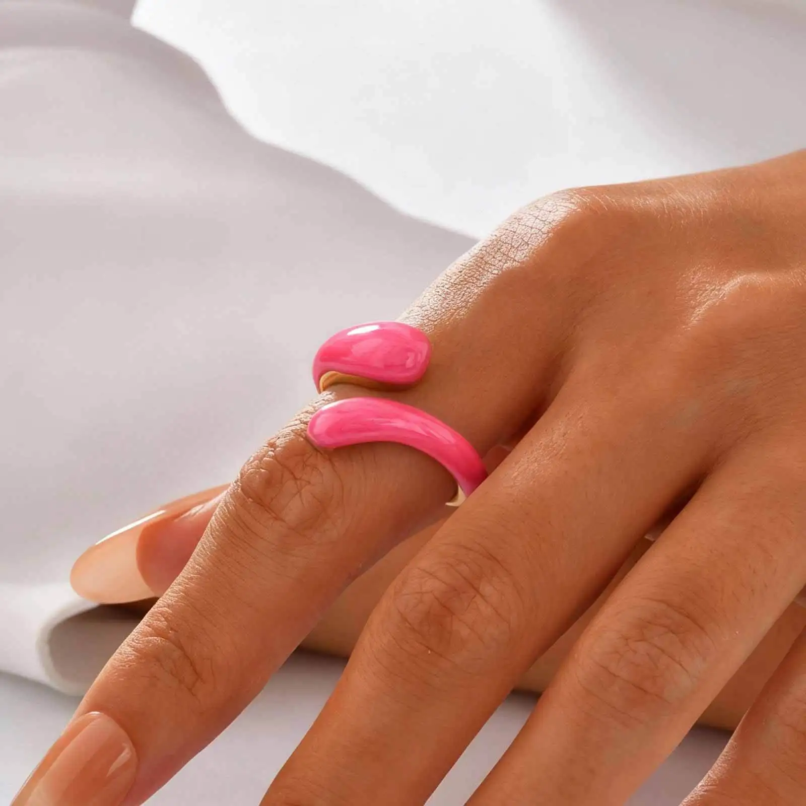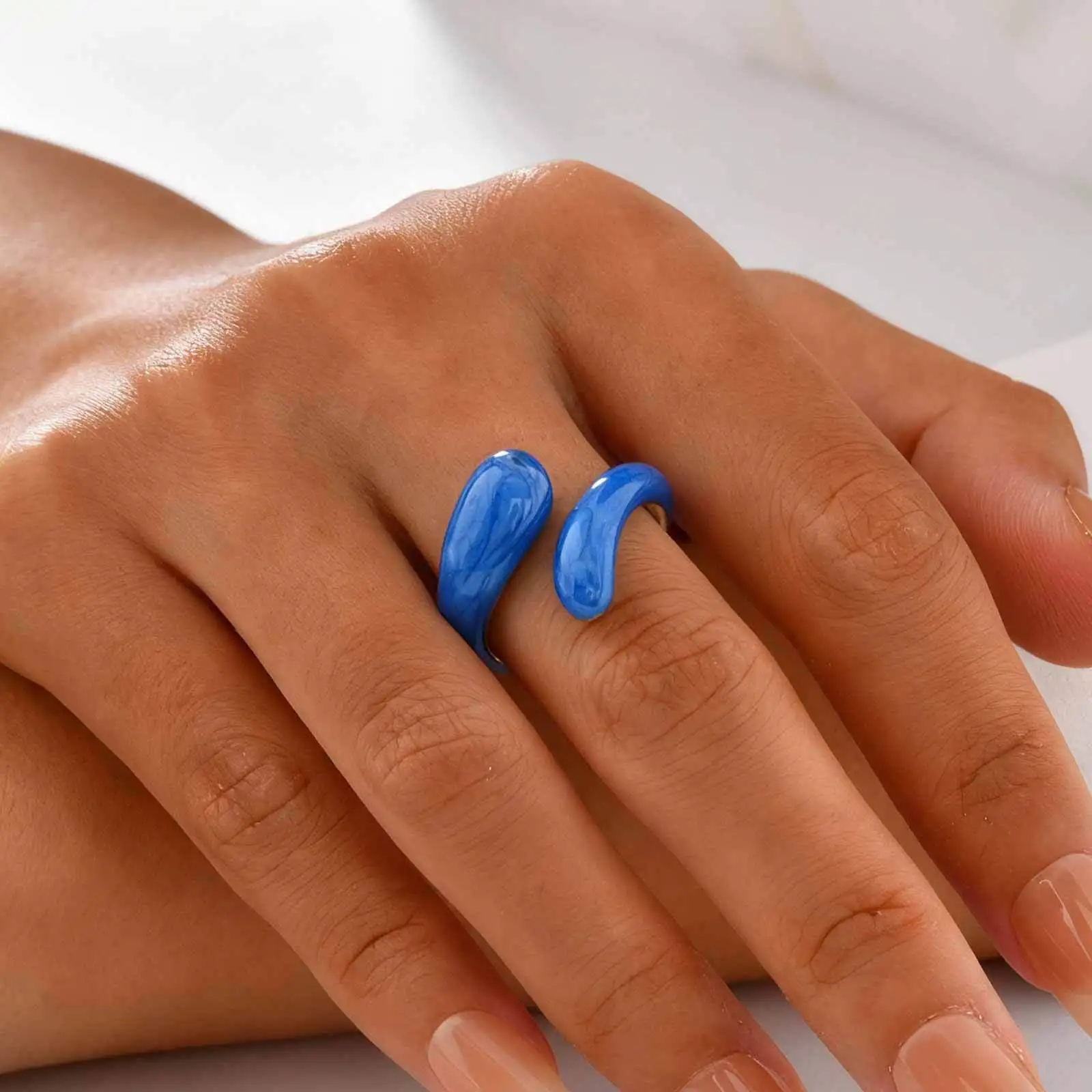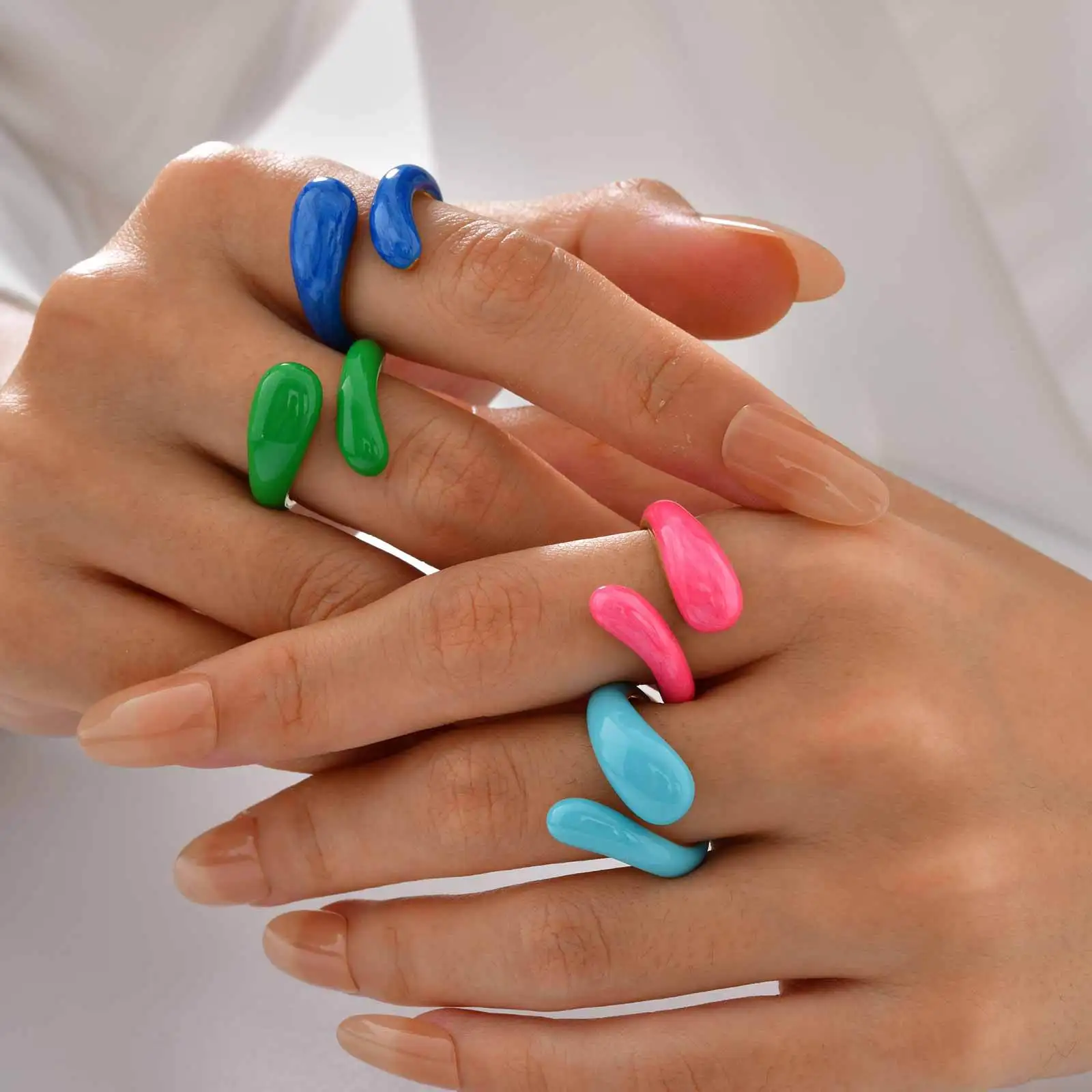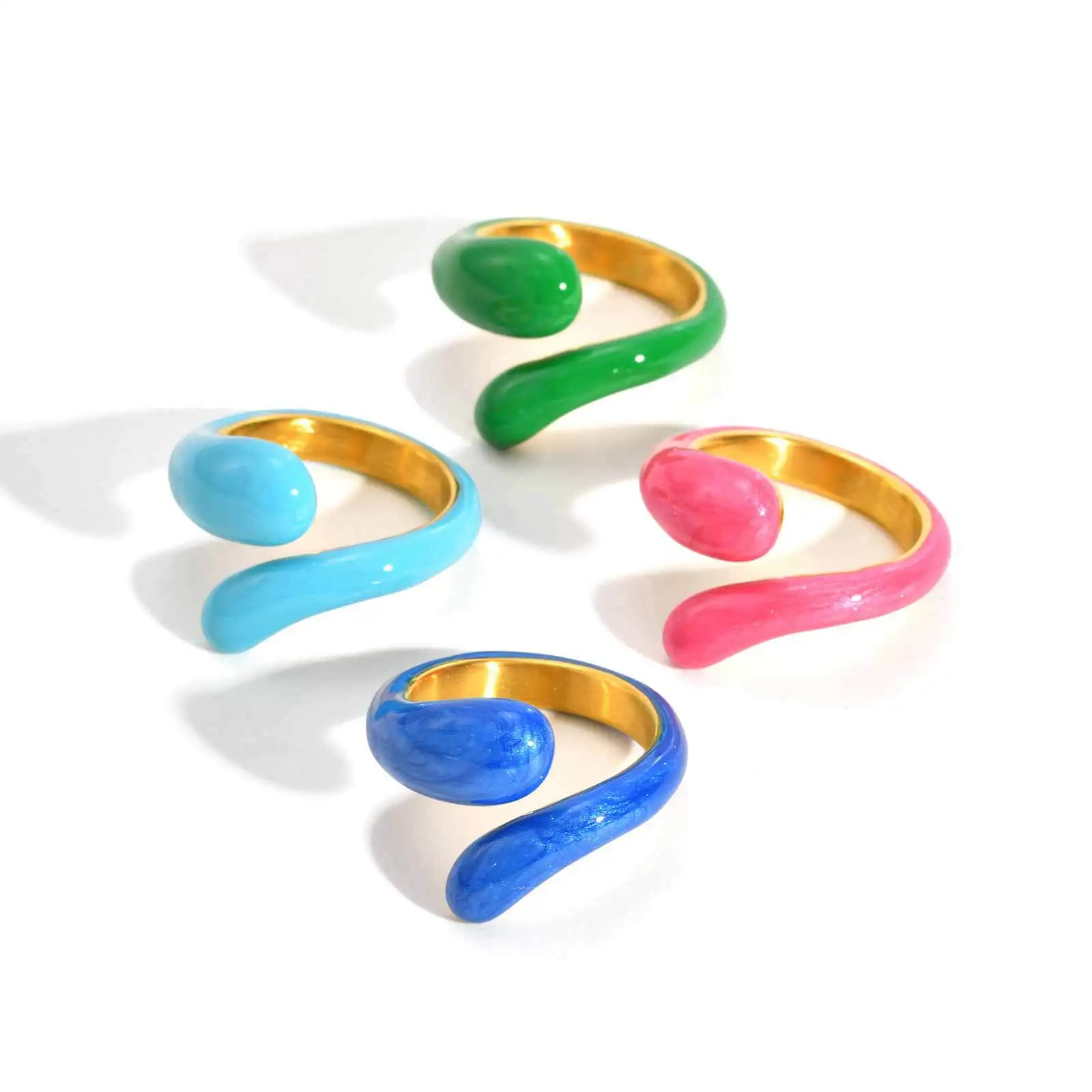 Delicate Multi-Color Stainless Steel Enamel Drip Rings Gold Plated Opening Adjustable Jewelry Ring