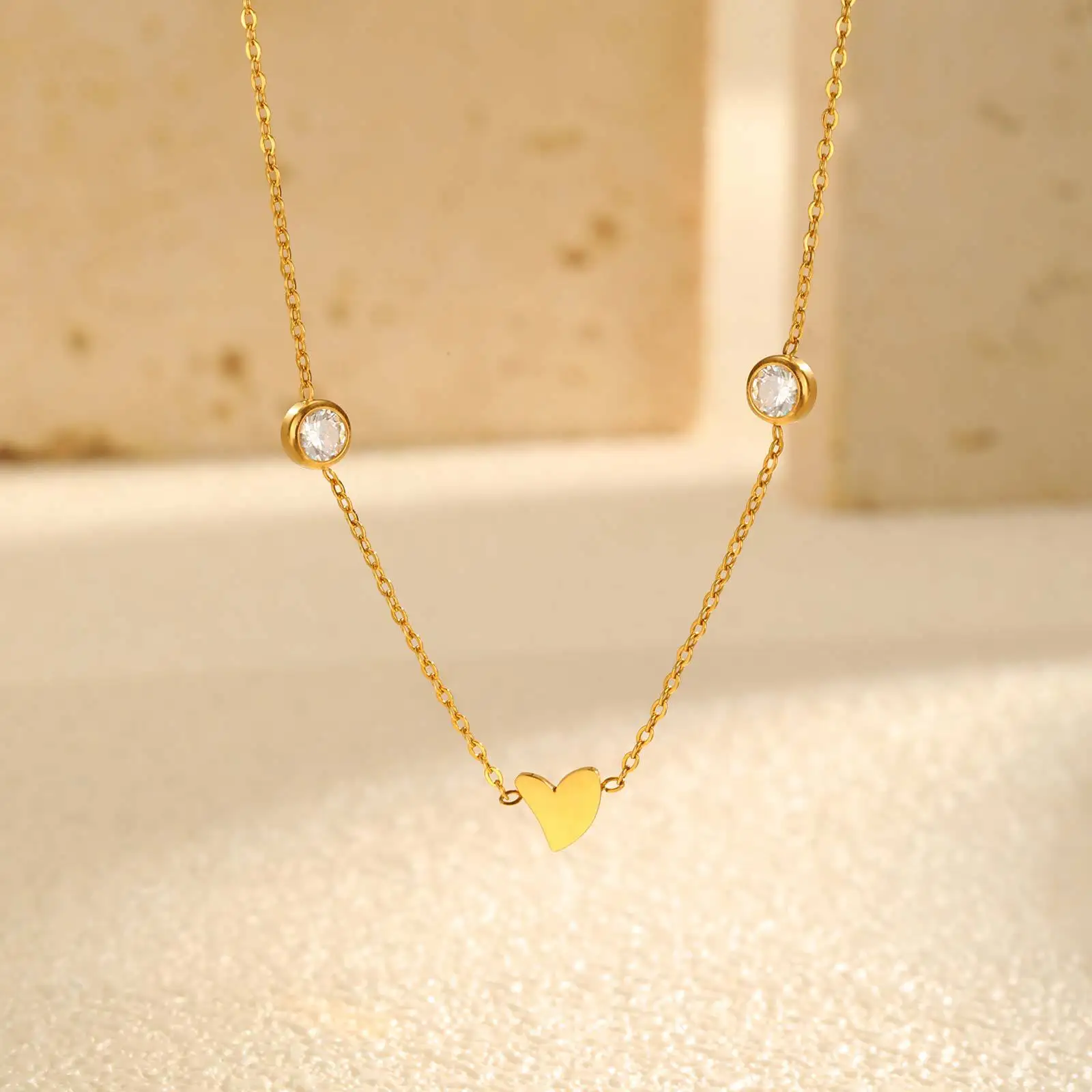 Mini Heart Zircon Clavicle Chain Necklace for Women Delicate Sweet Style Fashion Jewelry Gift