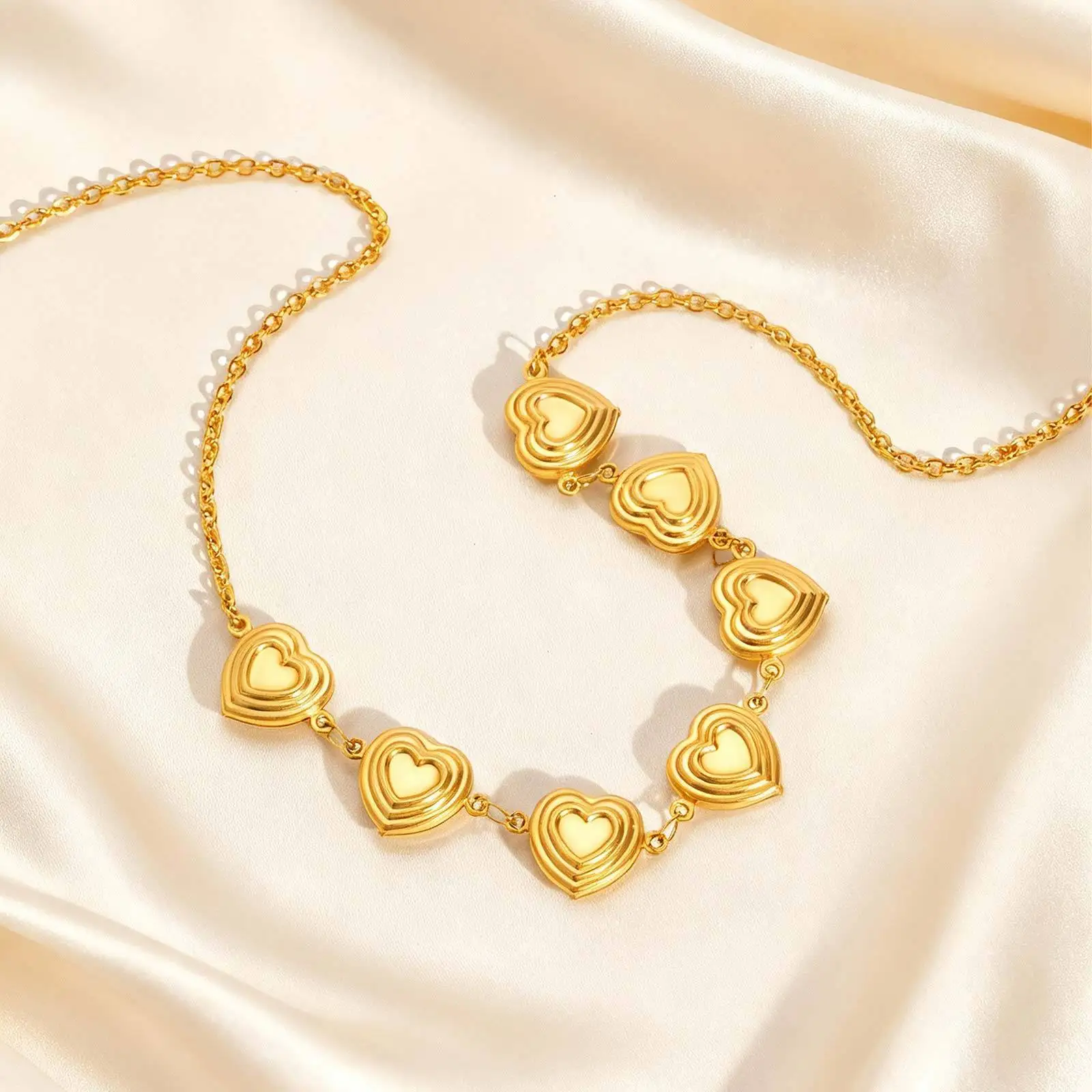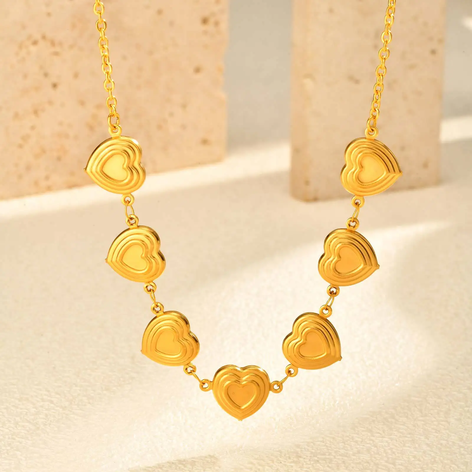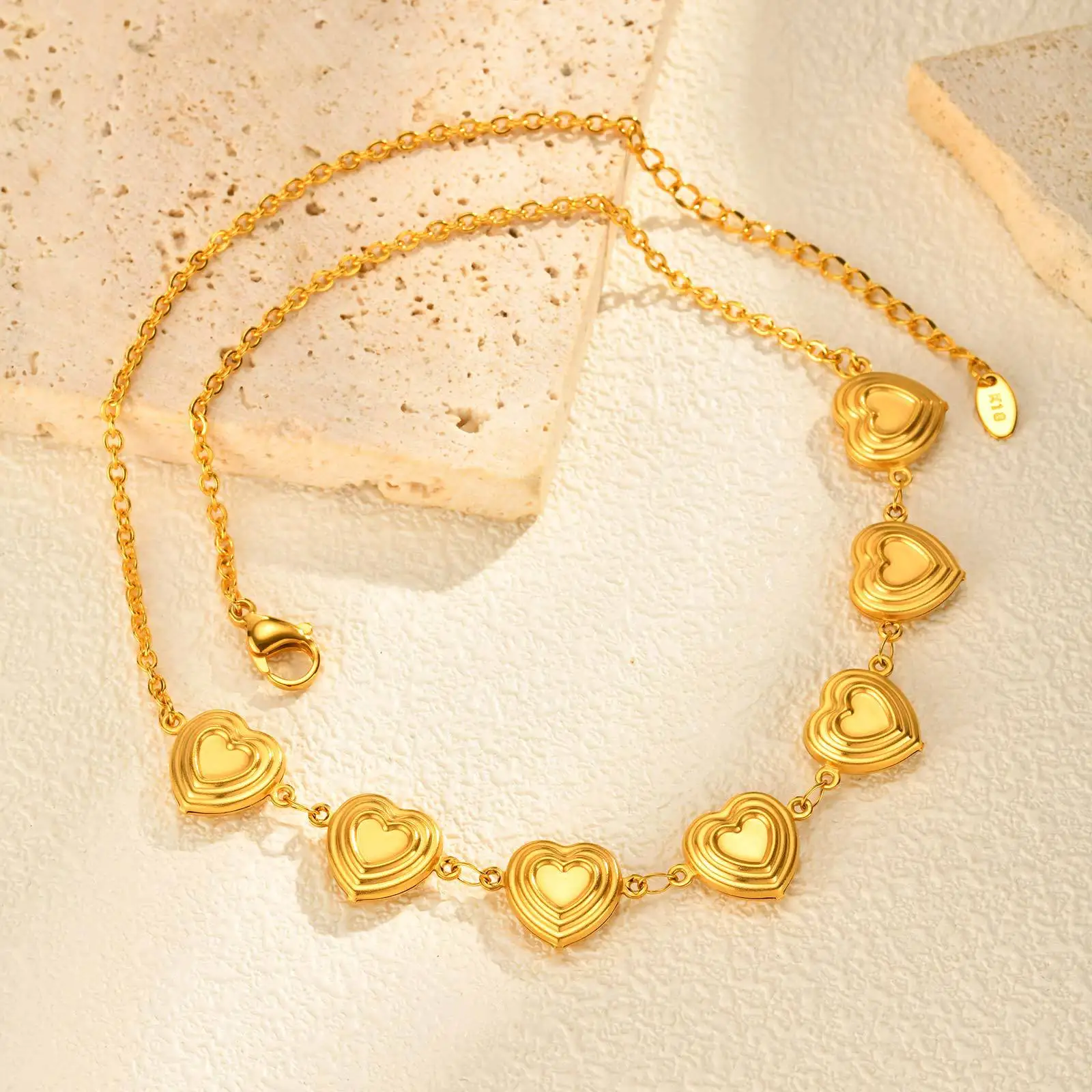 New Fashion Stainless Steel Heart Choker Necklace Women Gold Retro Chain Collar Jewelry Gift